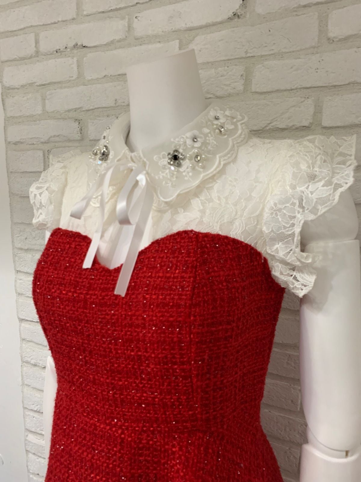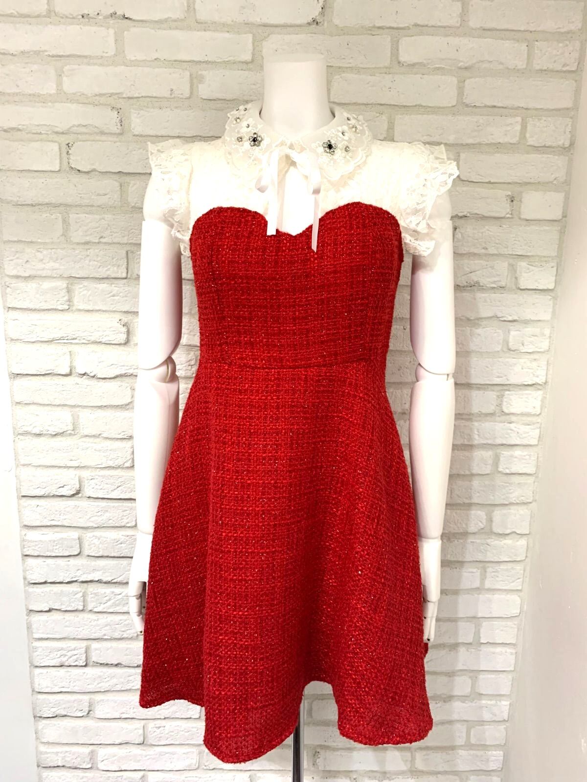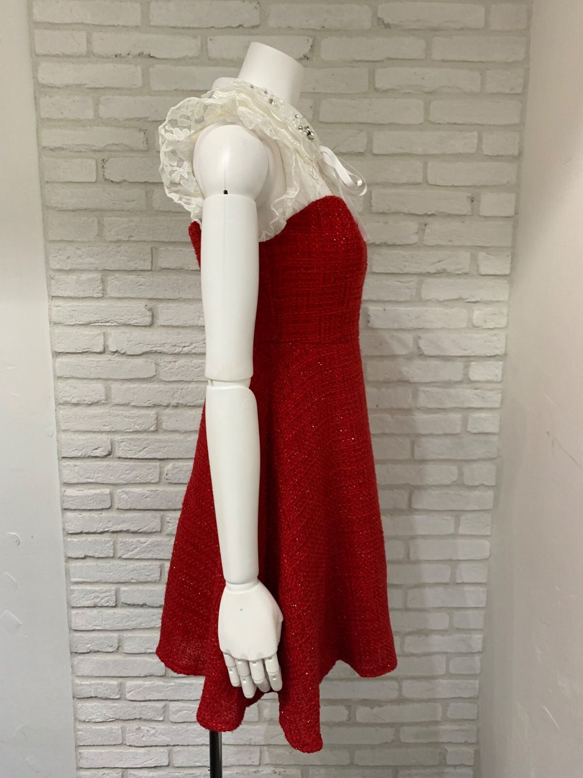 526 BayBClub ベイビークラブ キャバクラ ドレス ミニ ツイードラメ レース ビジュー パール フレア ナイトドレス キャバドレス M