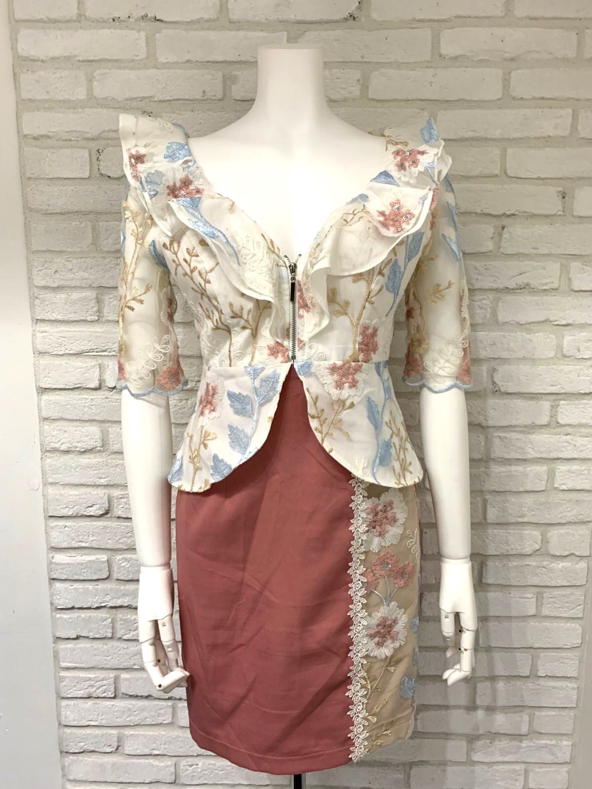 522 dazzy store デイジーストア キャバクラ ドレス ミニ 刺繍 レース フリル フラワー ラメ ジップ キャバドレス S