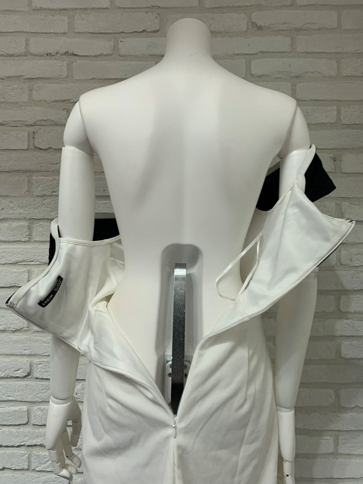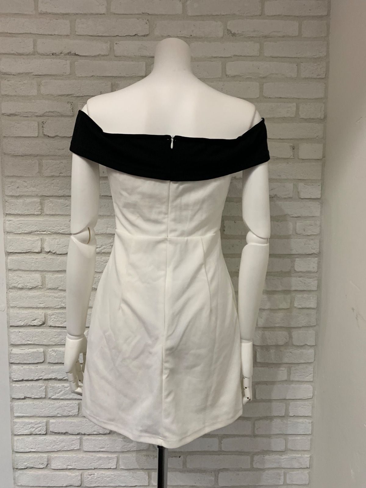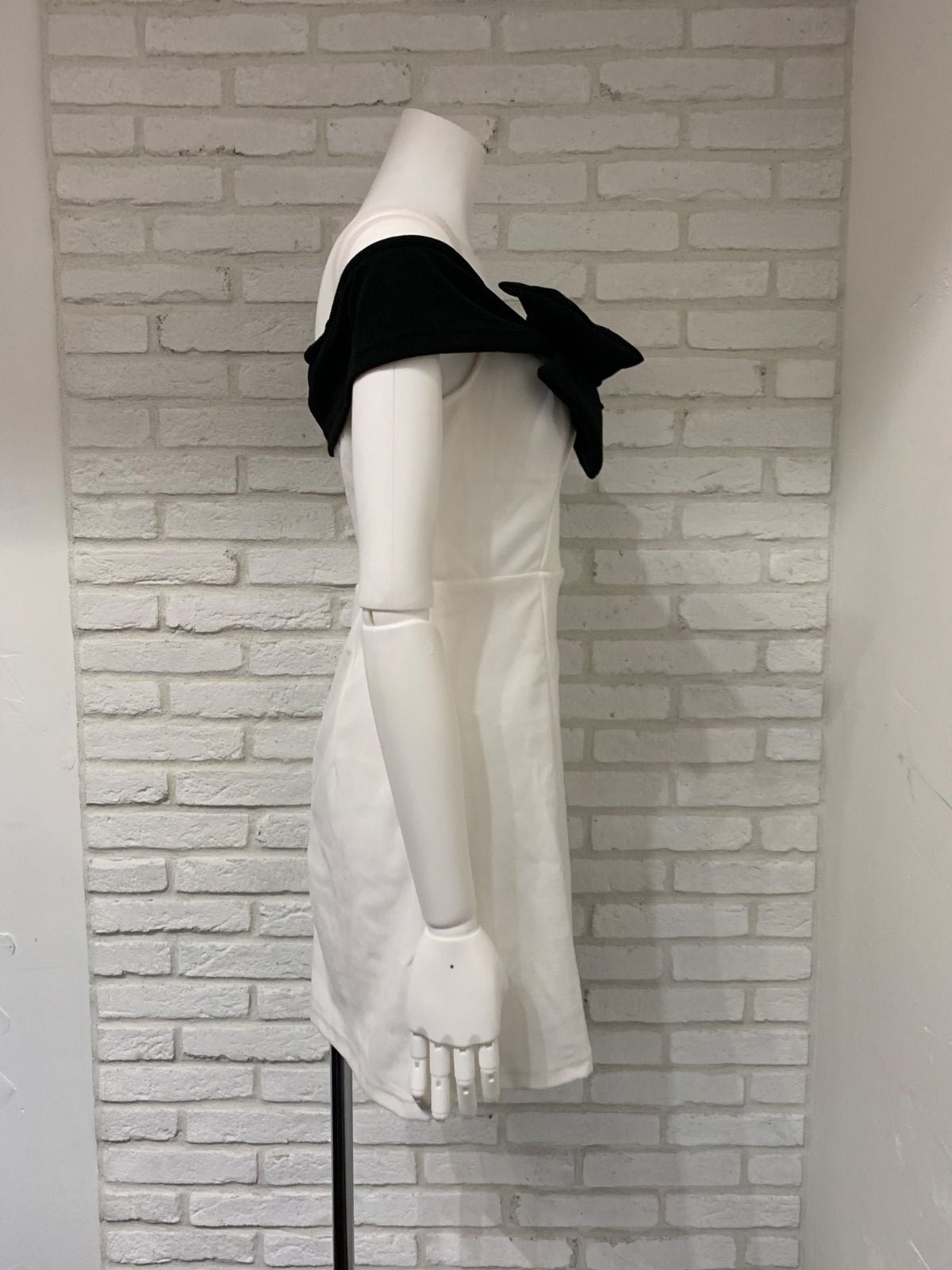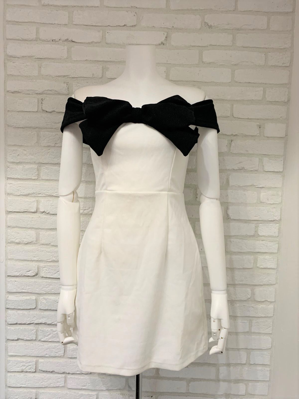 506 キャバクラ ドレス キャバドレス オフショル リボン バイカラー フレア ミニ S