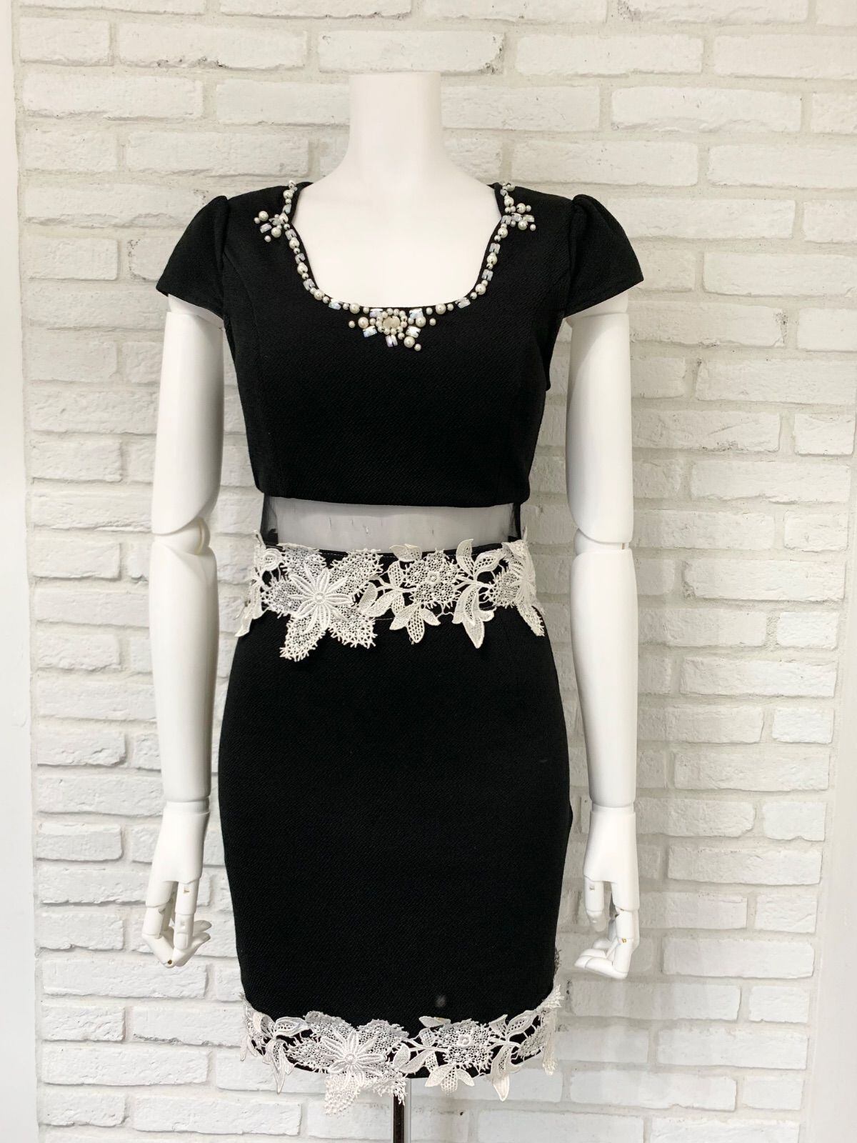 396 dazzy queen デイジークイーン キャバドレス パール ストーン タイト ウエストシースルー