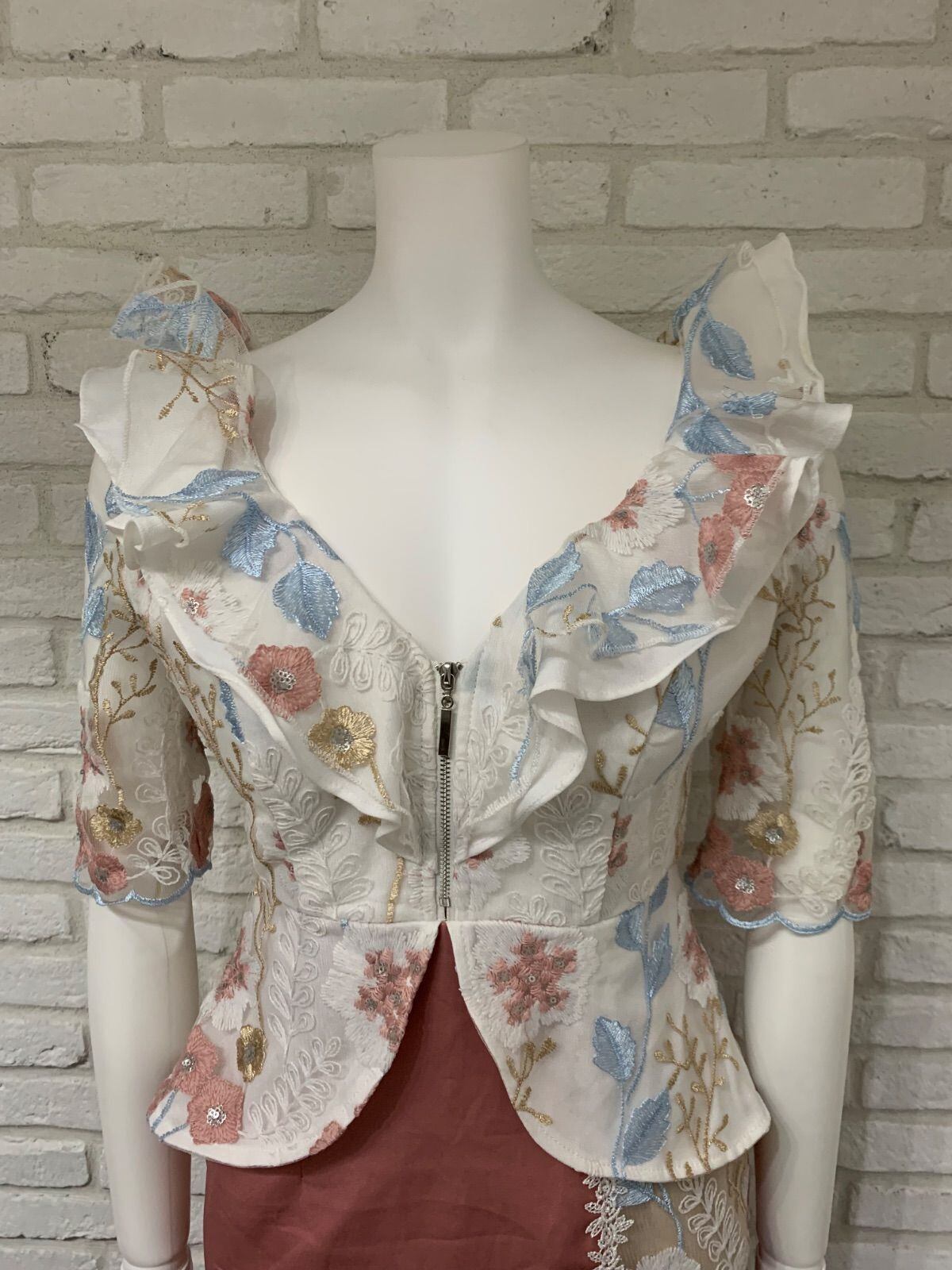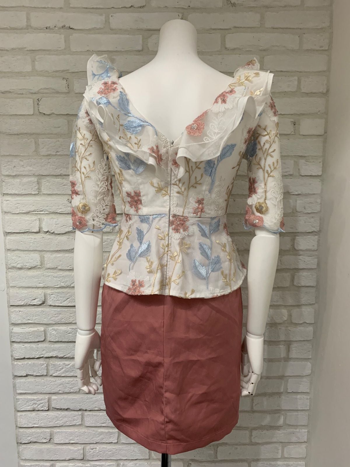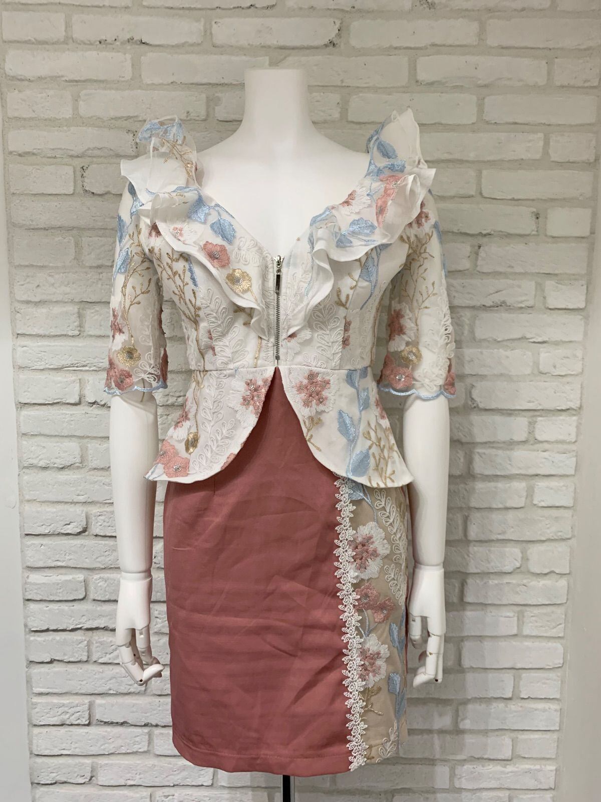 529 dazzy store デイジーストア キャバクラ ドレス ミニ フラワー刺繍 シアー ジップ キャバドレス S