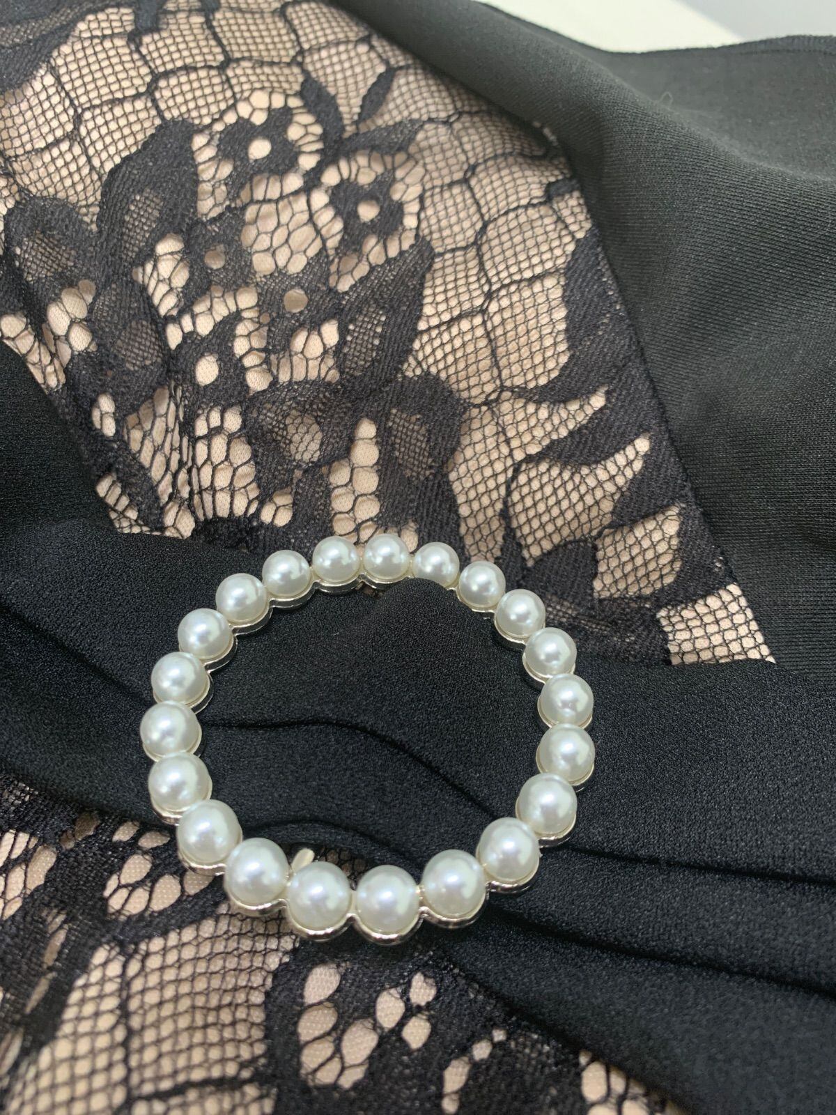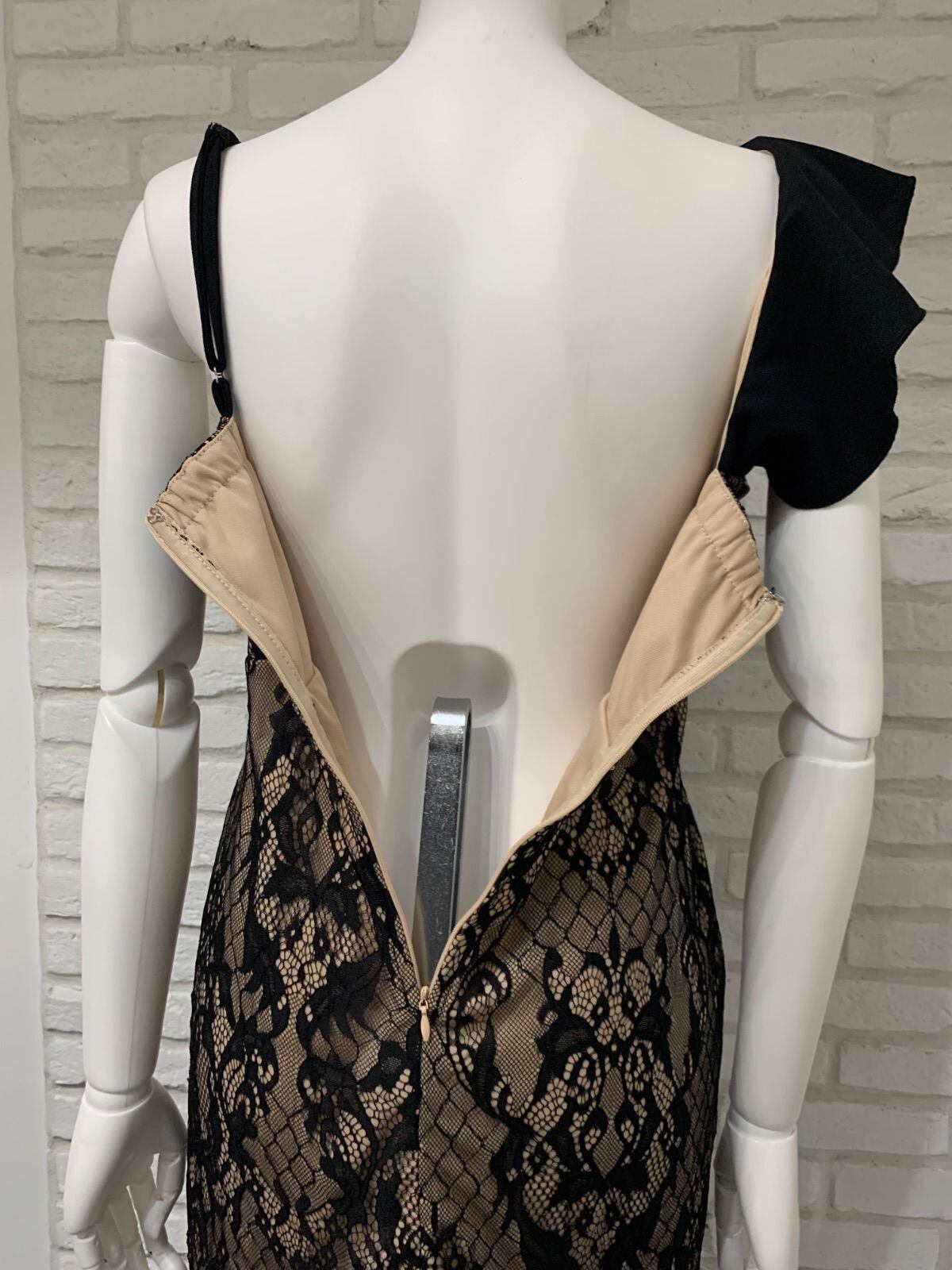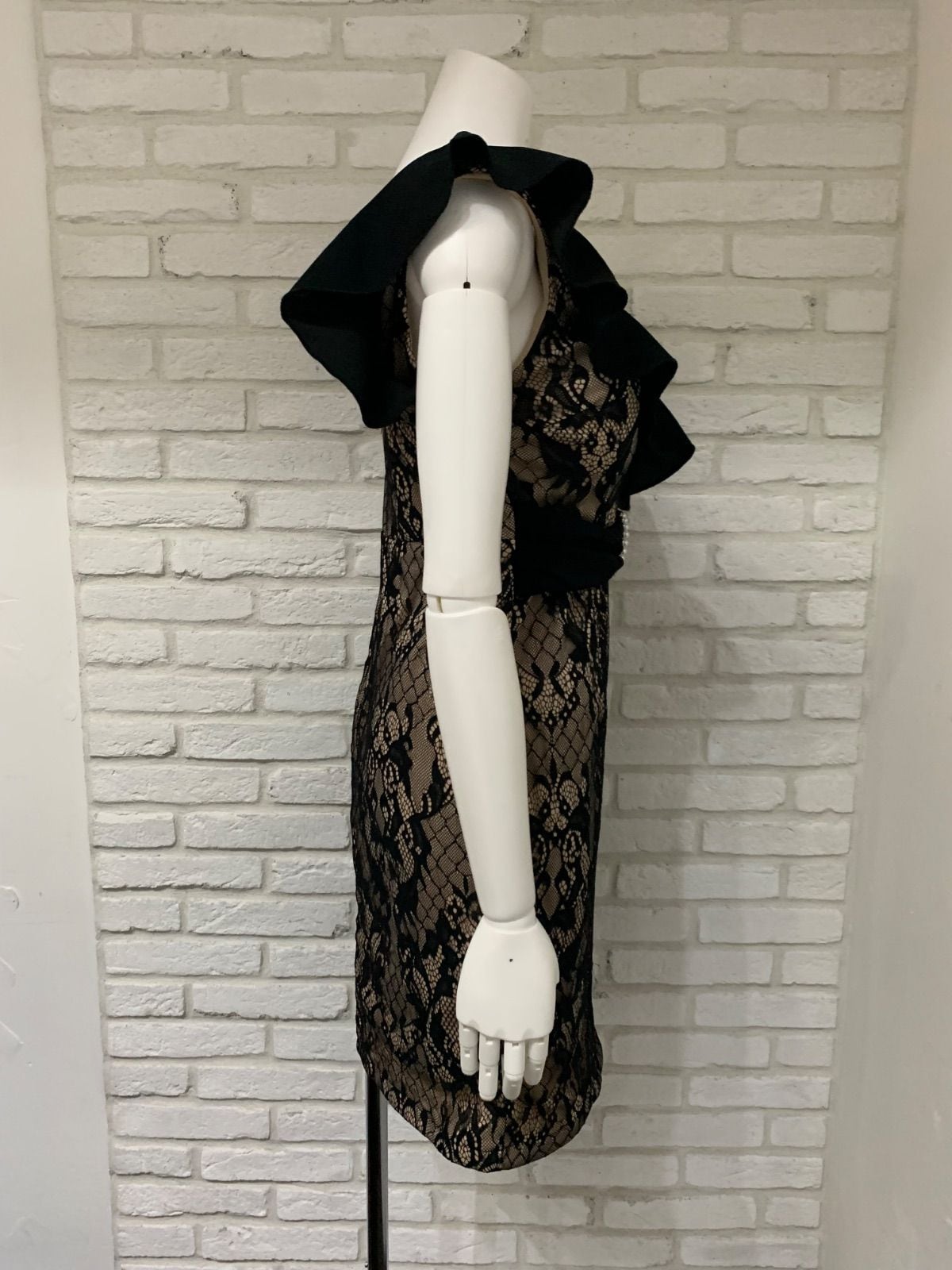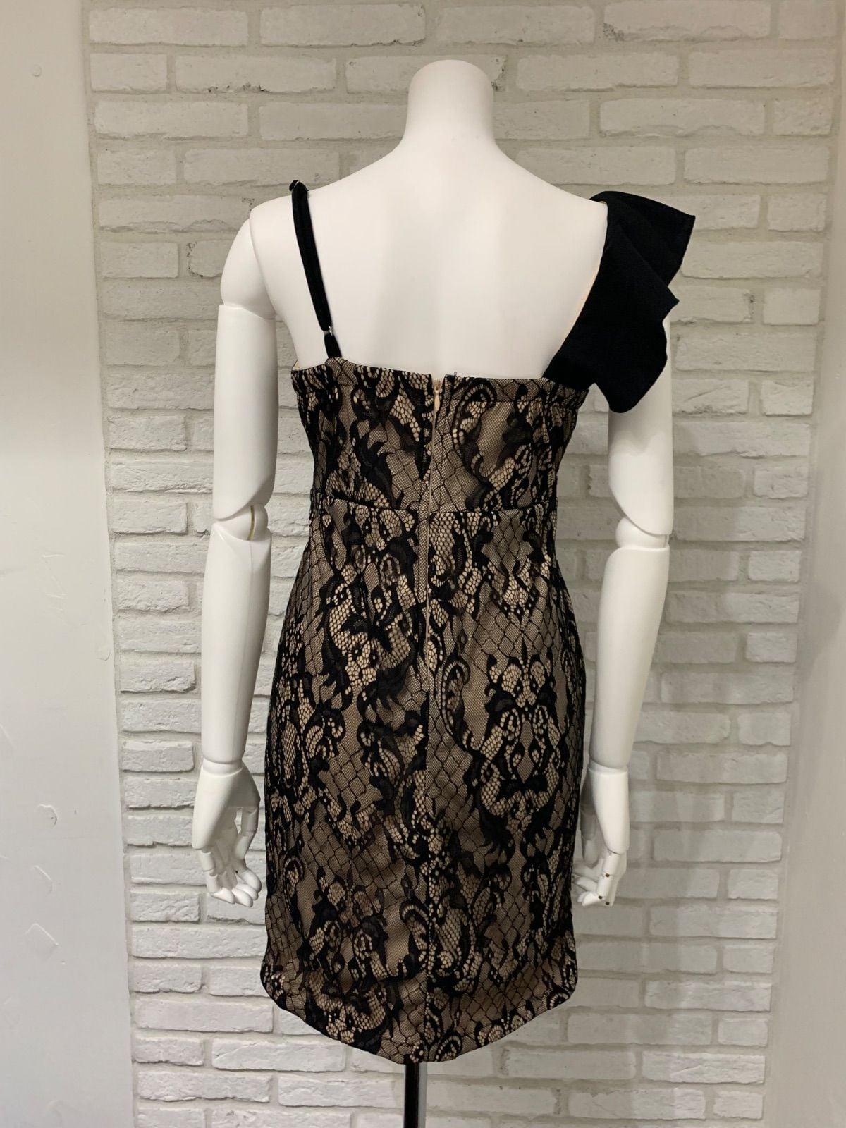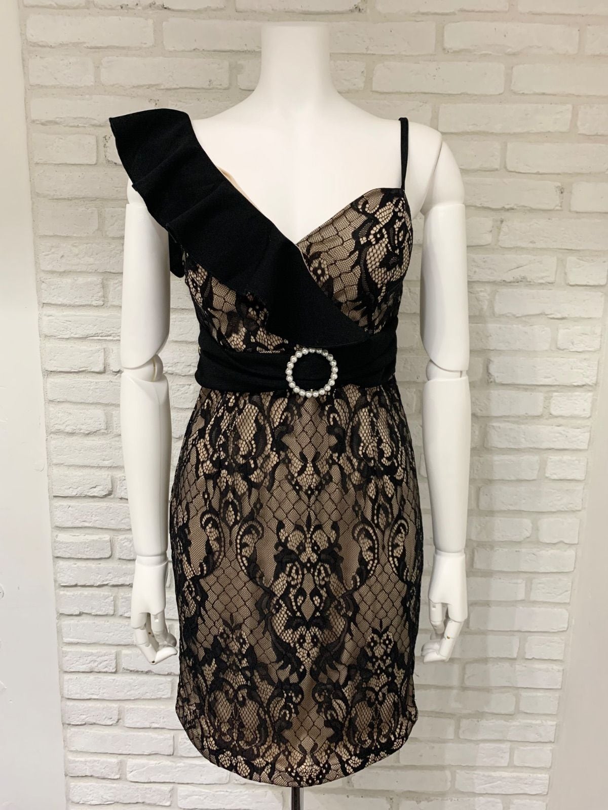536 DAZZY デイジー キャバクラ ドレス ミニ 総レース ワンショルダー パール タイト キャバドレス L