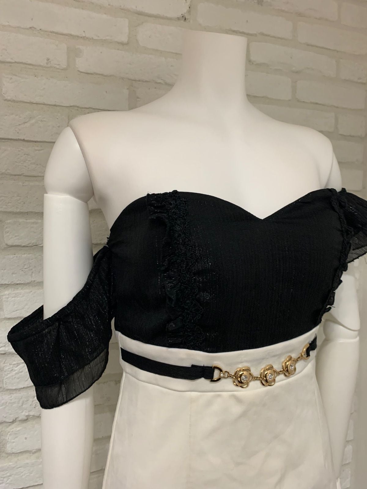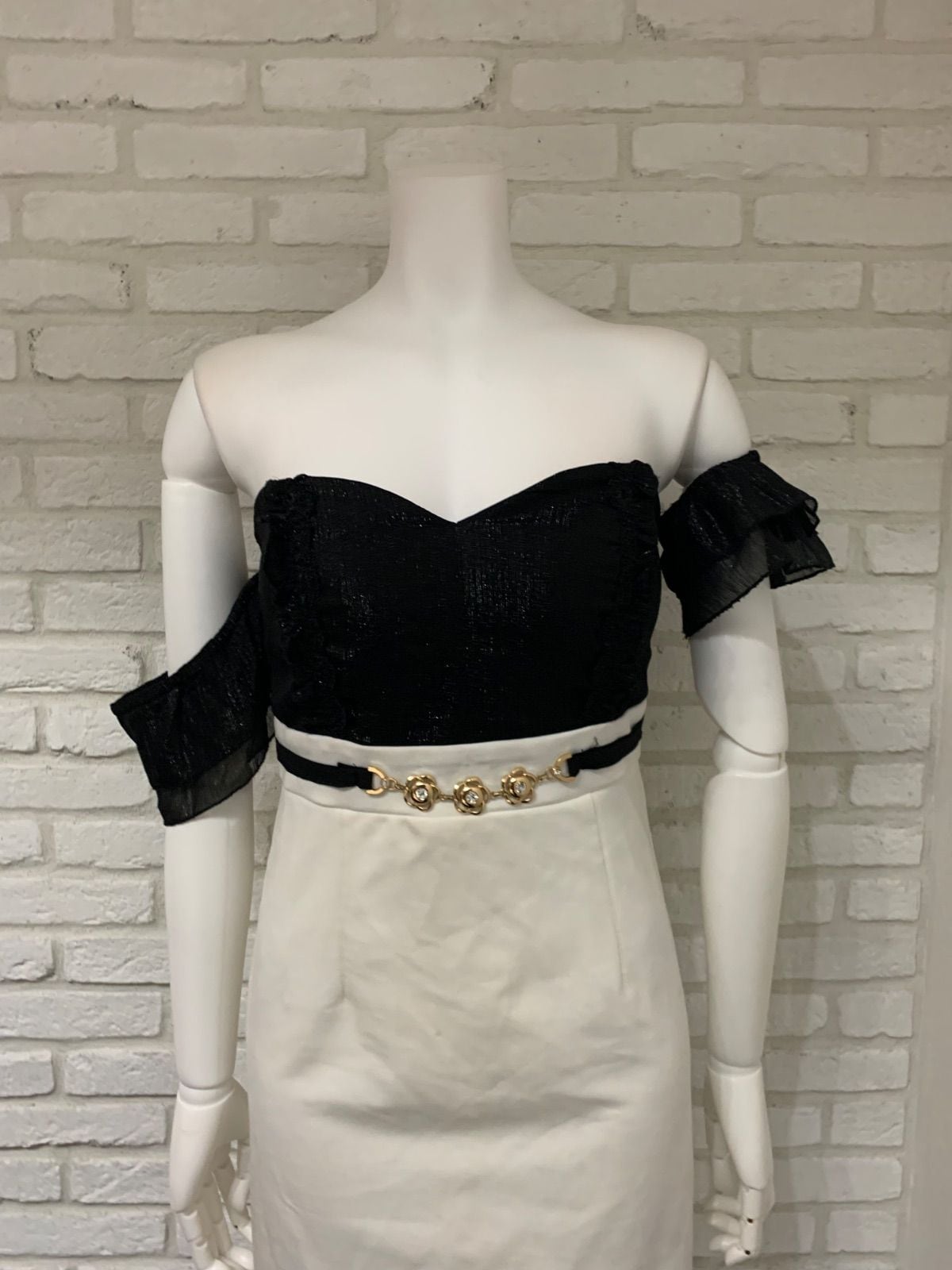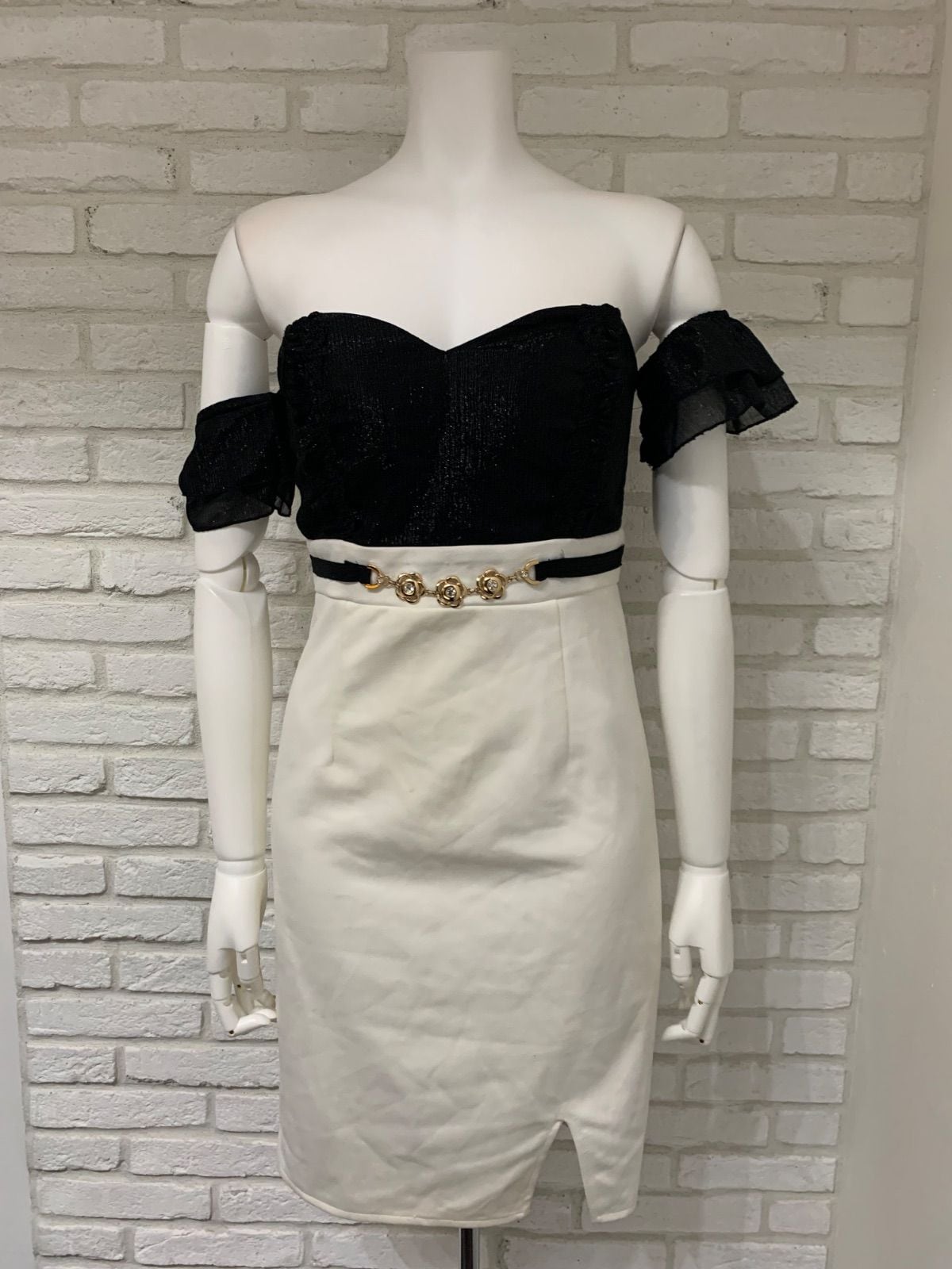 540 dazzy store デイジーストア キャバドレス オフショル タイト ビジュー レースラメ フリル L
