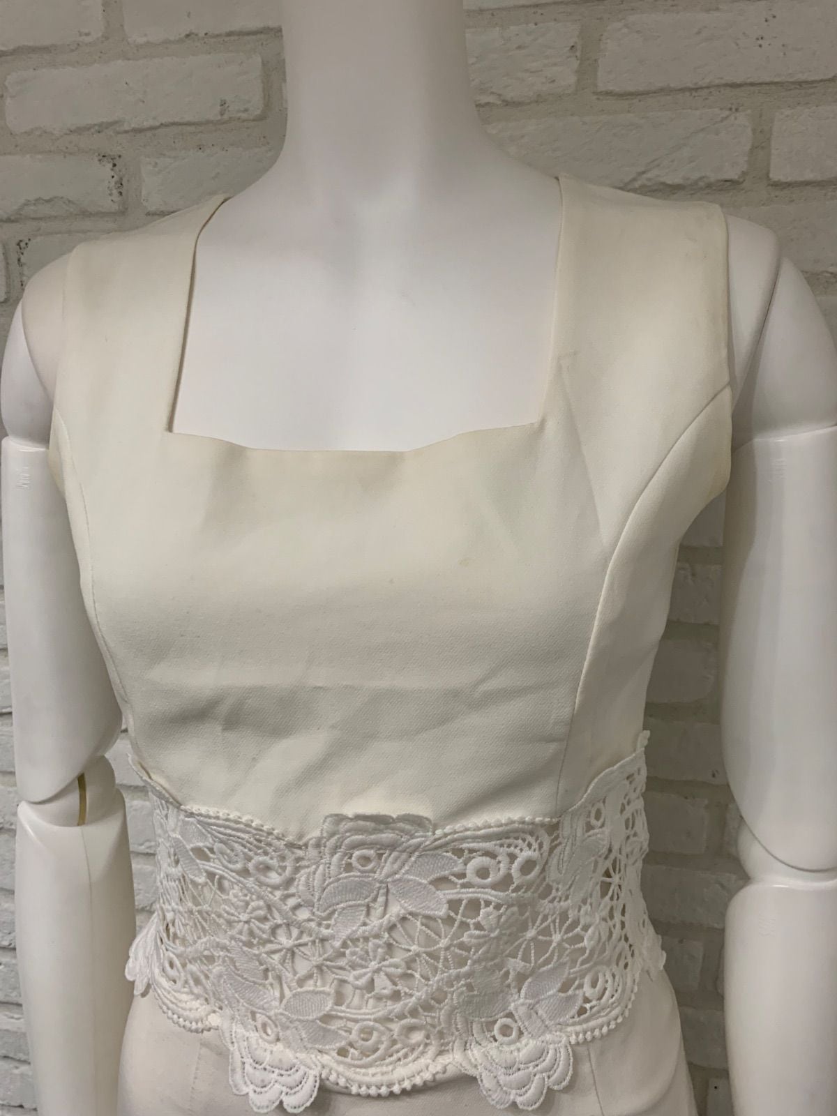 541 YIYISHISHANG キャバドレス ウエストクロシェレース 透け ノースリーブ タイト M