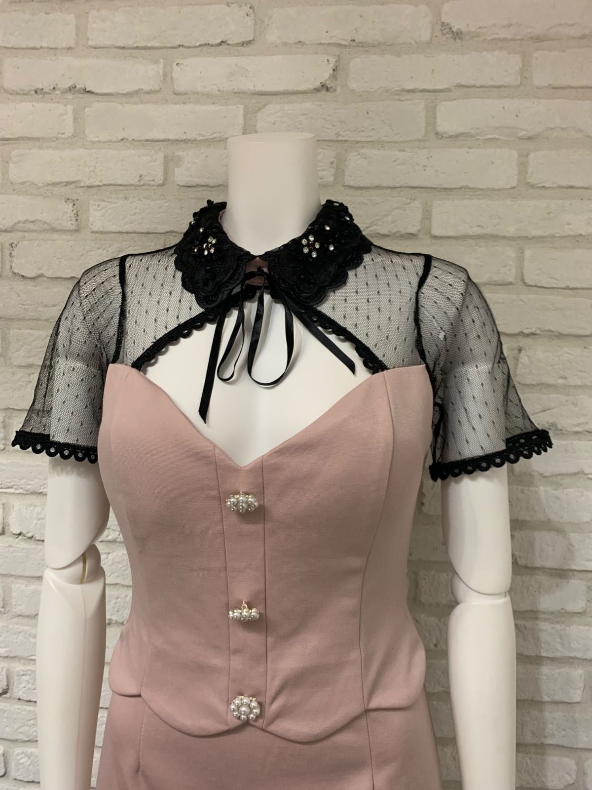 550 DAZZY デイジー キャバクラ ドレス ミニ レース ドット パール キャバドレス S