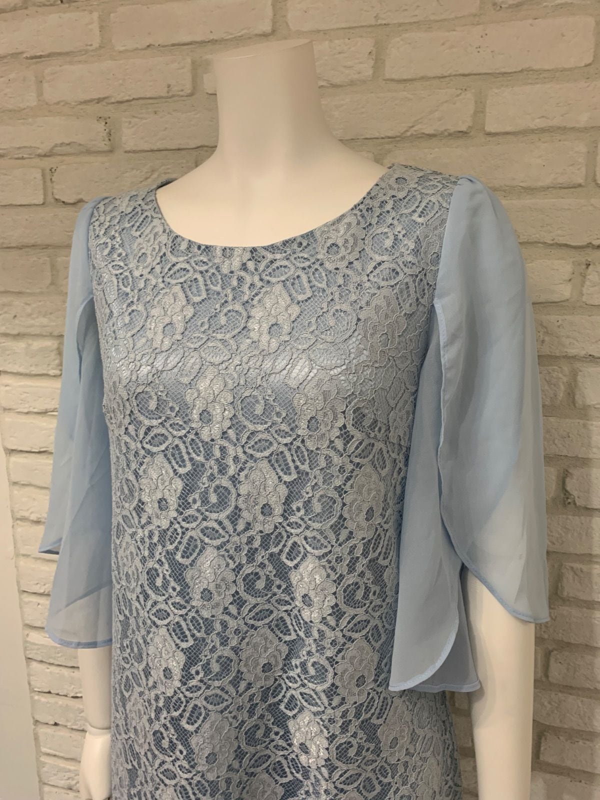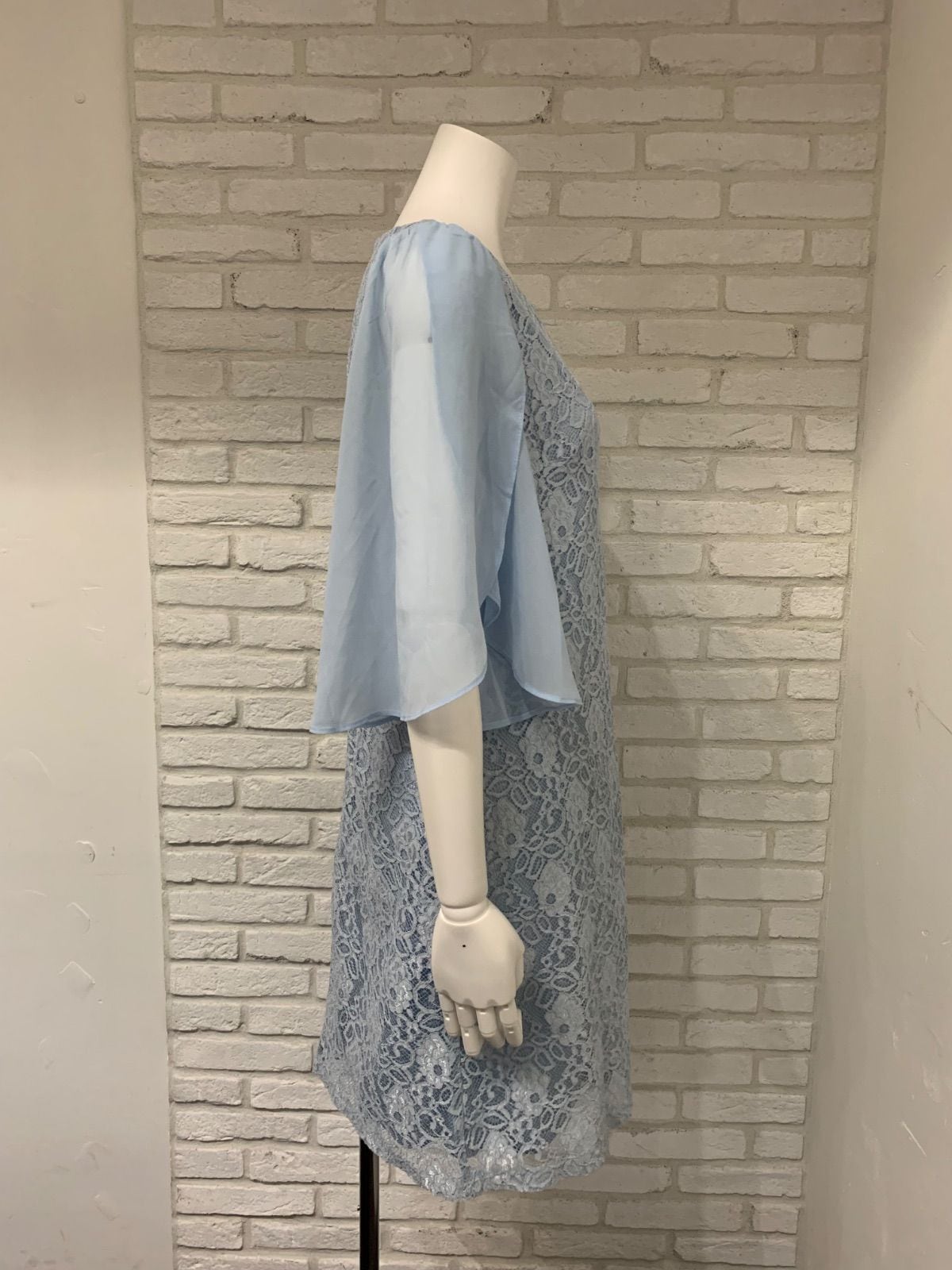 561 キャバクラ ドレス ミディ 総レースドレス 袖シフォン 二次会 お呼ばれ キャバドレス L