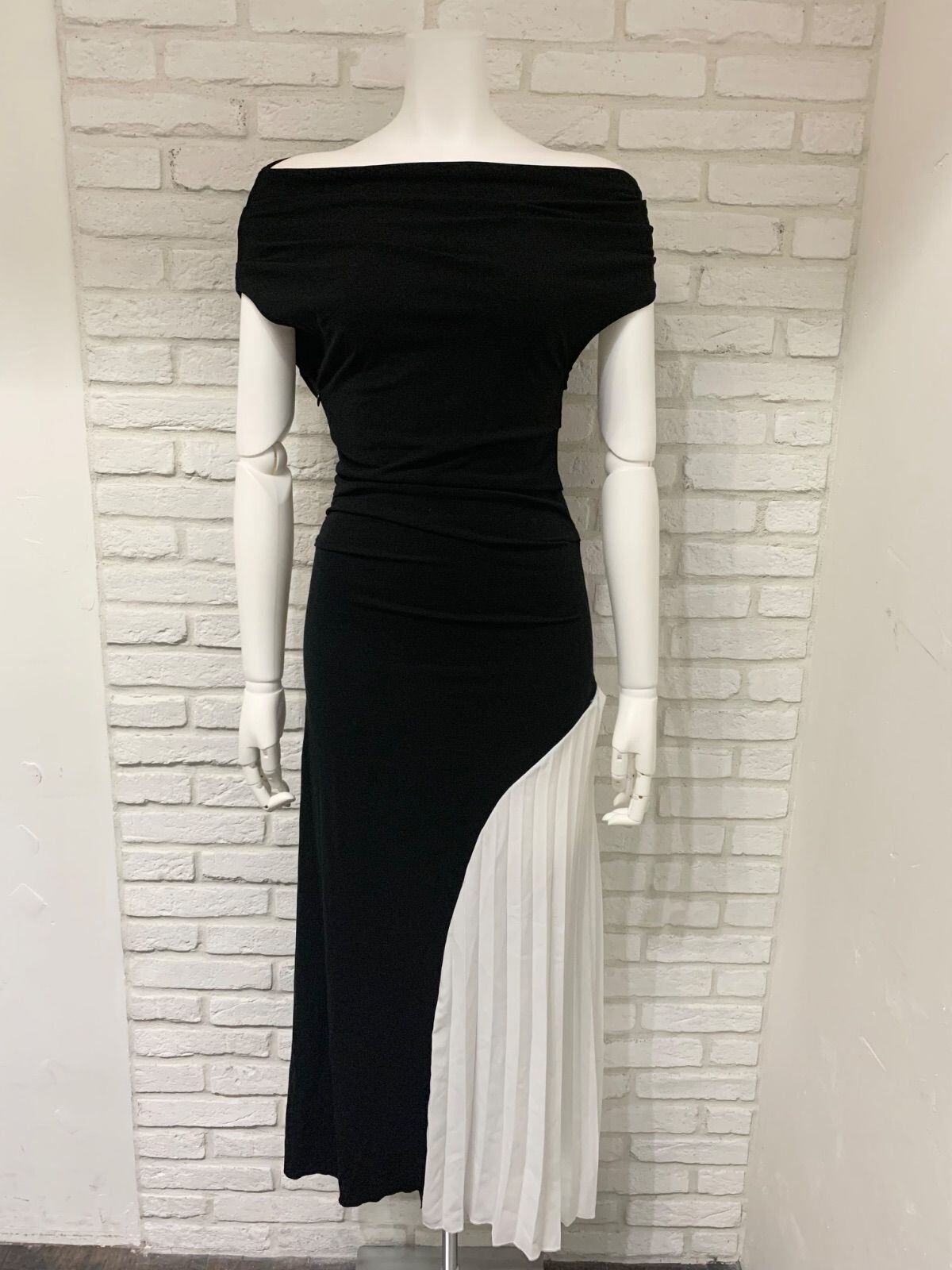 566 キャバクラ ドレス ロングドレス オフショルダー ワンピース シフォン切り替え 無地 伸縮性 キャバドレス L