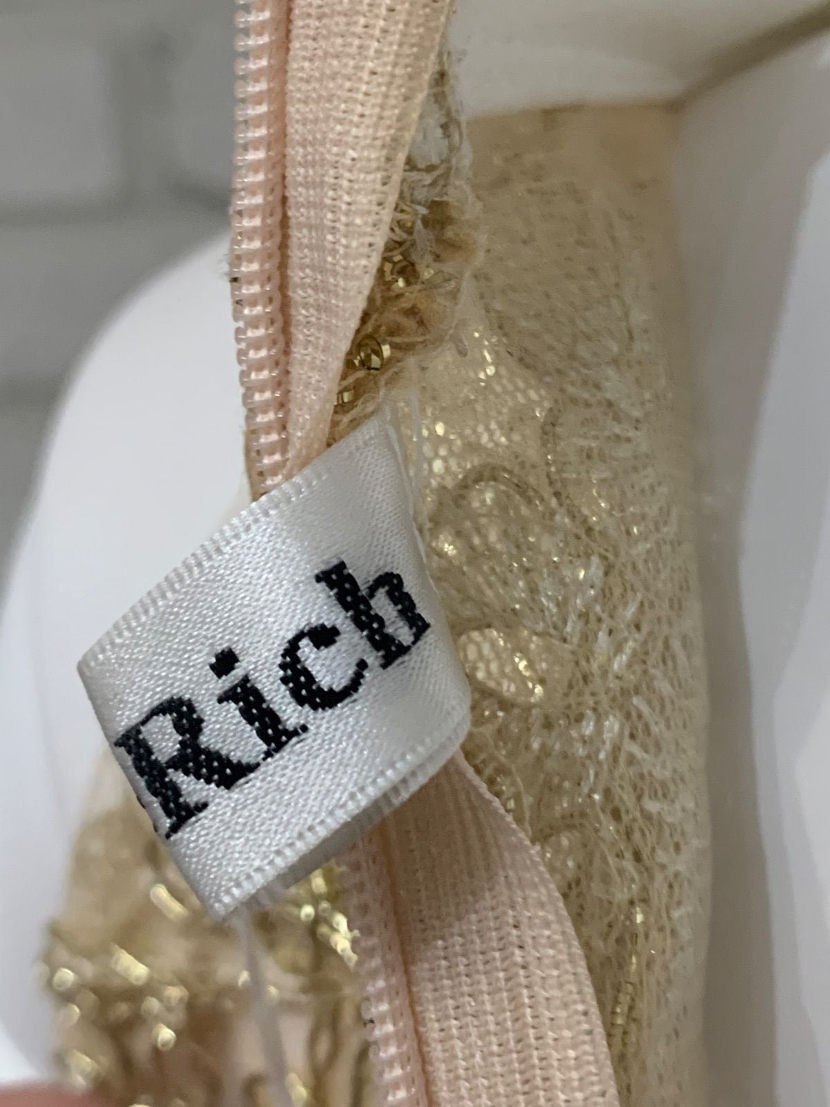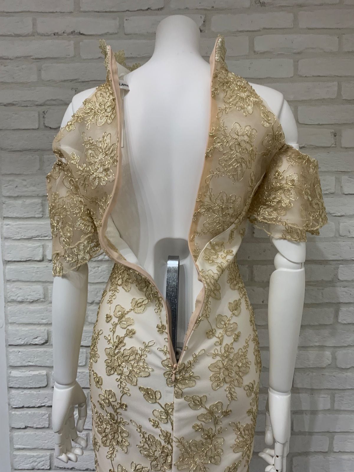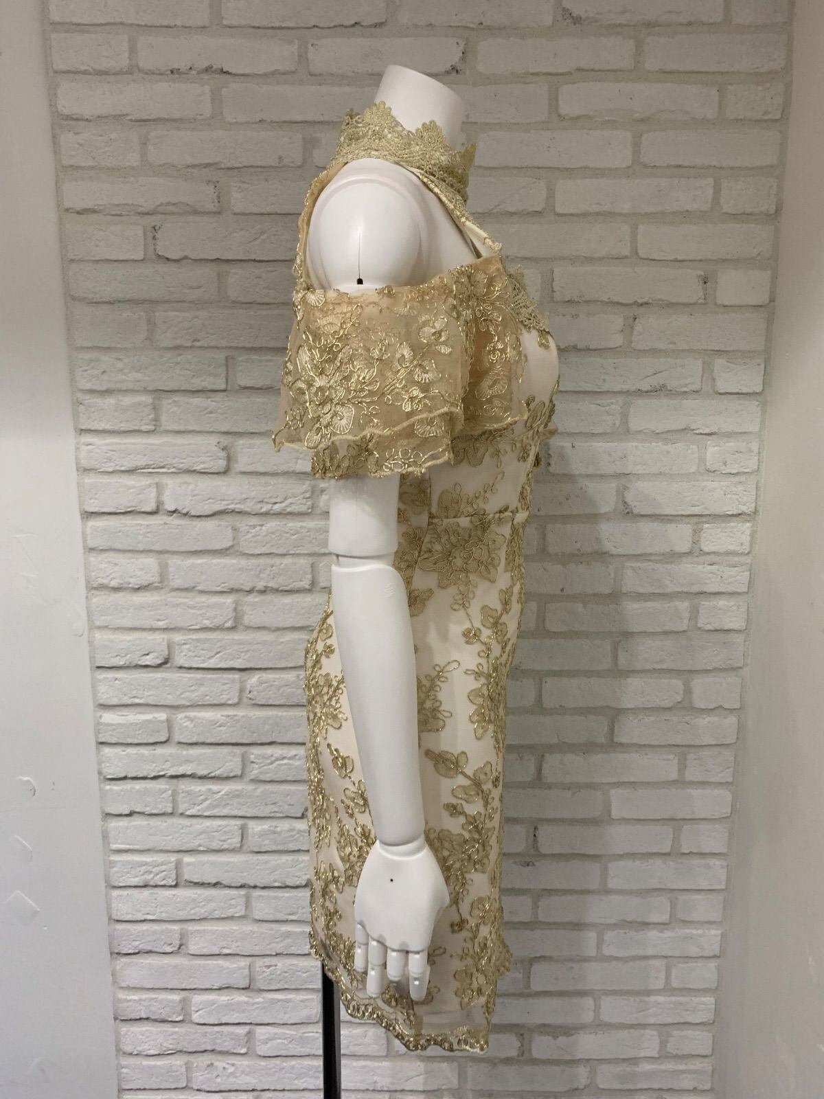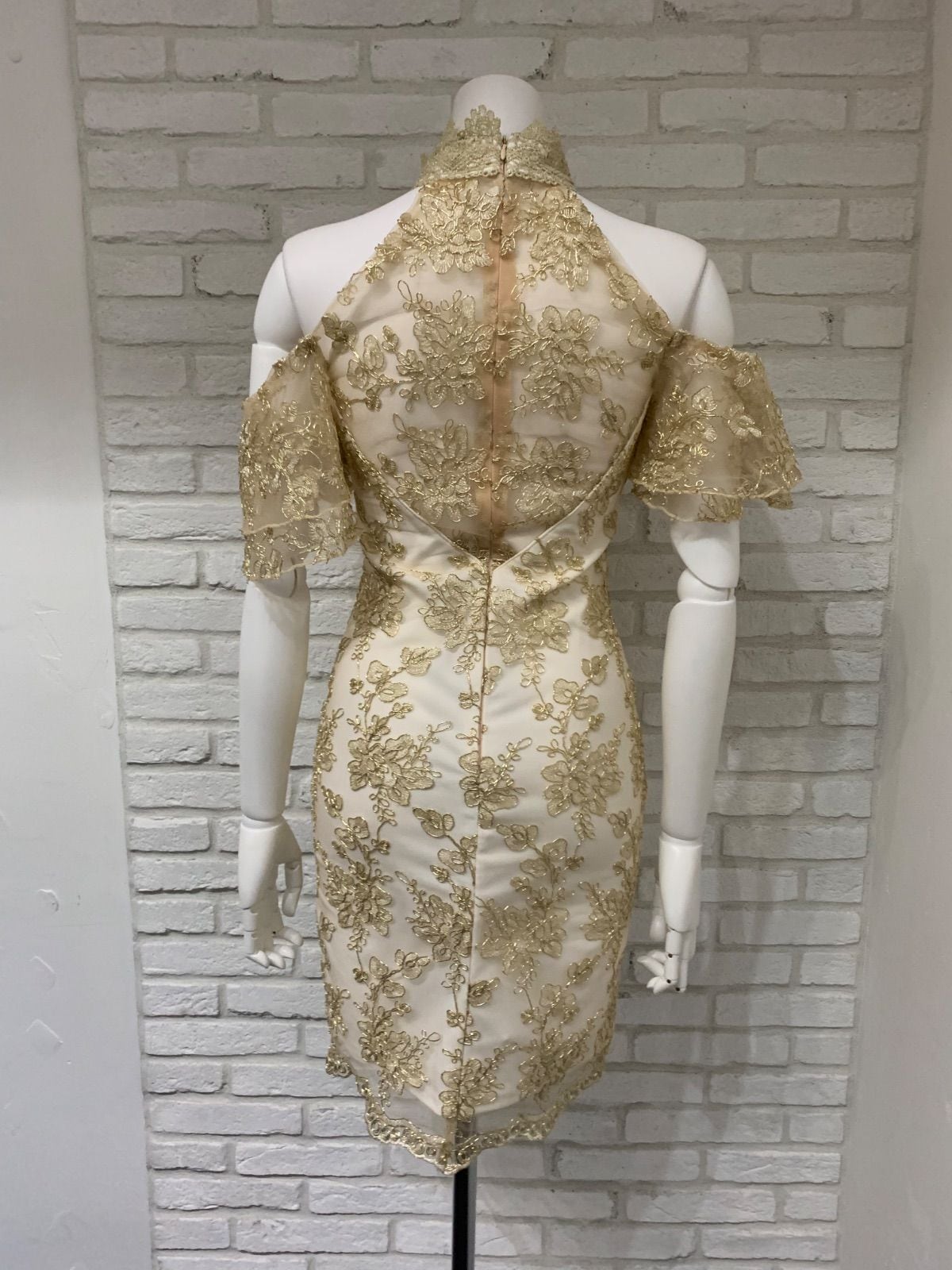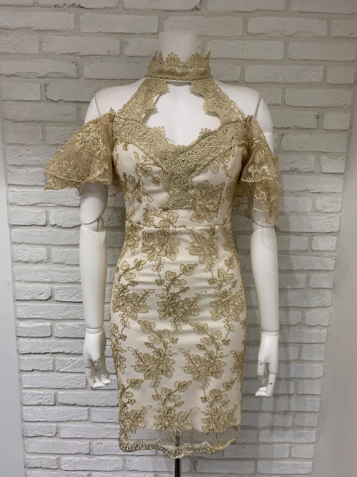 577 Love Rich ラブリッチ キャバクラ ドレス ミニ ゴールド刺繍 花柄 レース ホルターネック タイト キャバドレス F