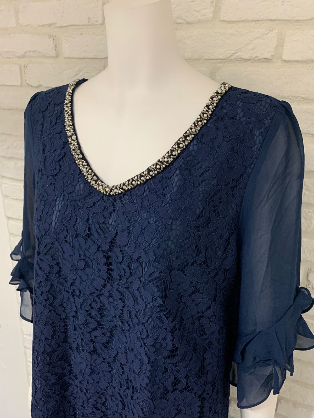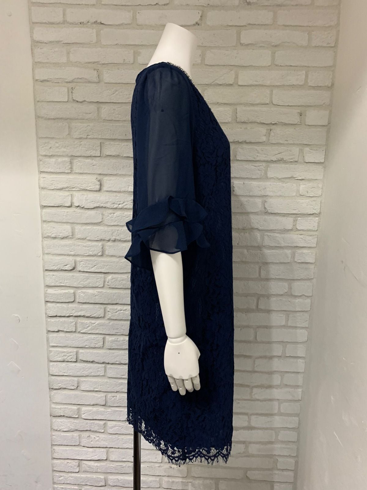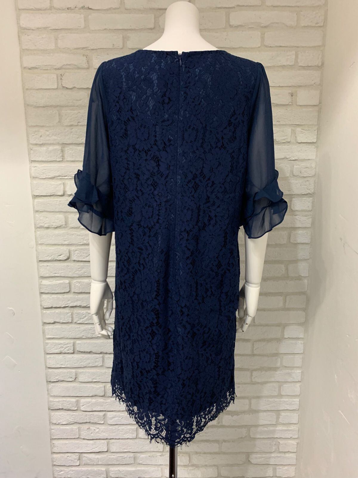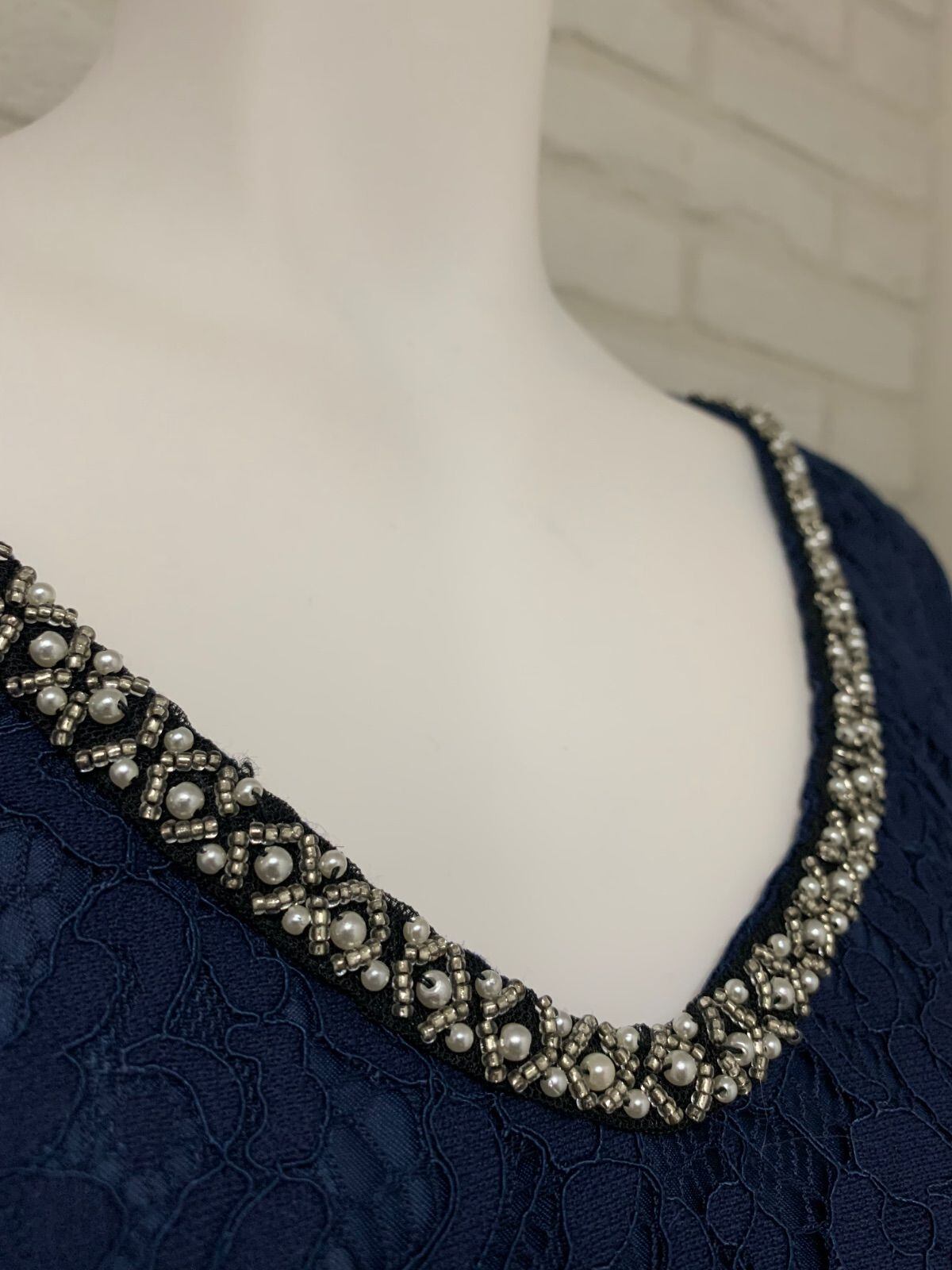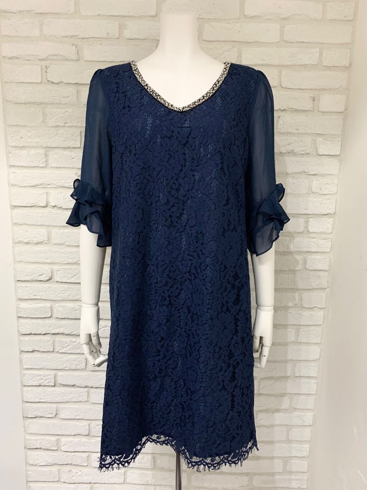 585 PourVous プールヴー キャバクラ ドレス ミディ 大きいサイズ 総レースワンピース フリル シアー パール ビジュー 結婚式 二次会 イベント キャバドレス XL