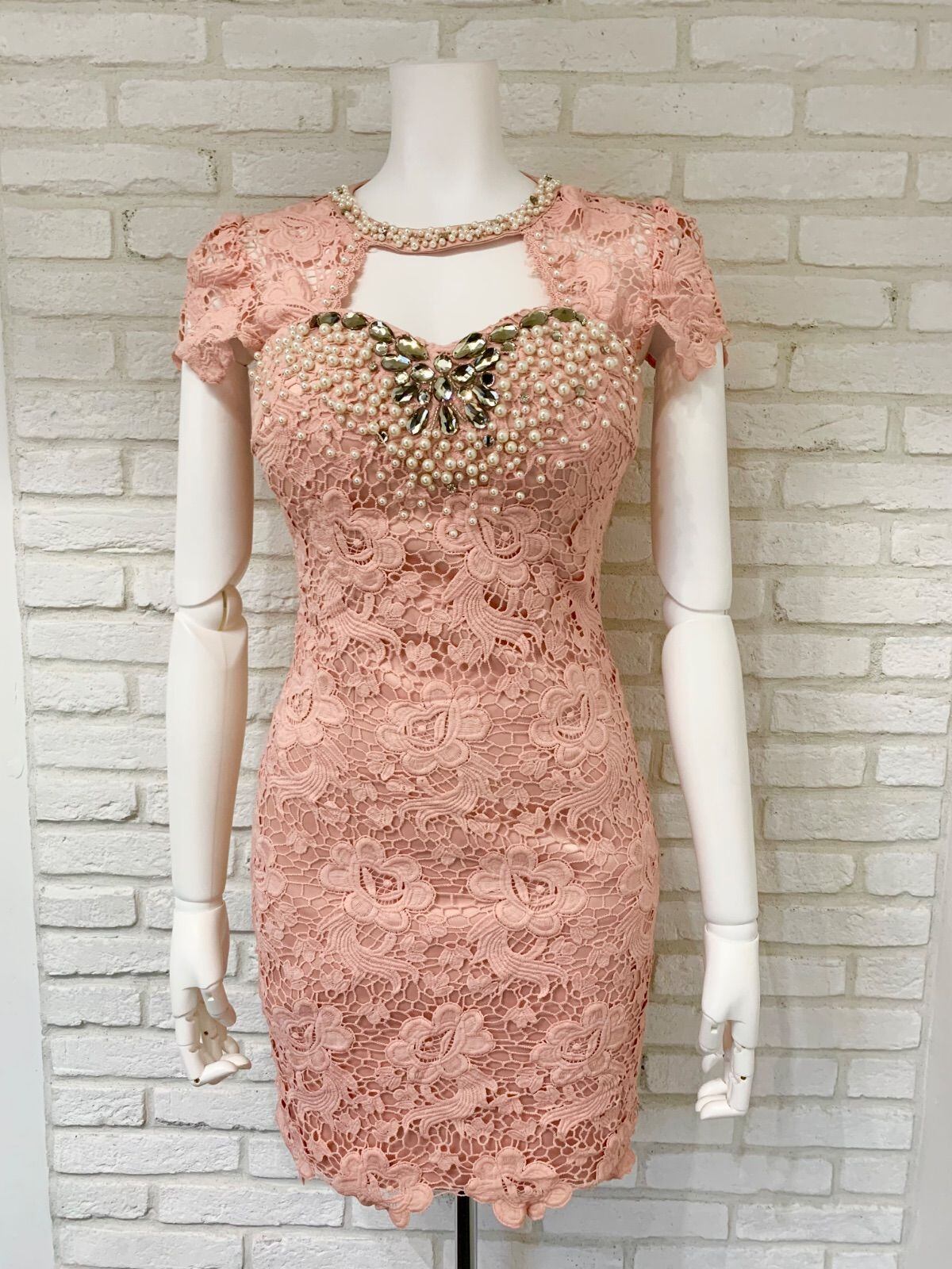 597 dazzy queen デイジークイーン キャバクラ ドレス ミニ 総クロシェレース ストーン ビジュー タイト ナイトドレス キャバドレス S