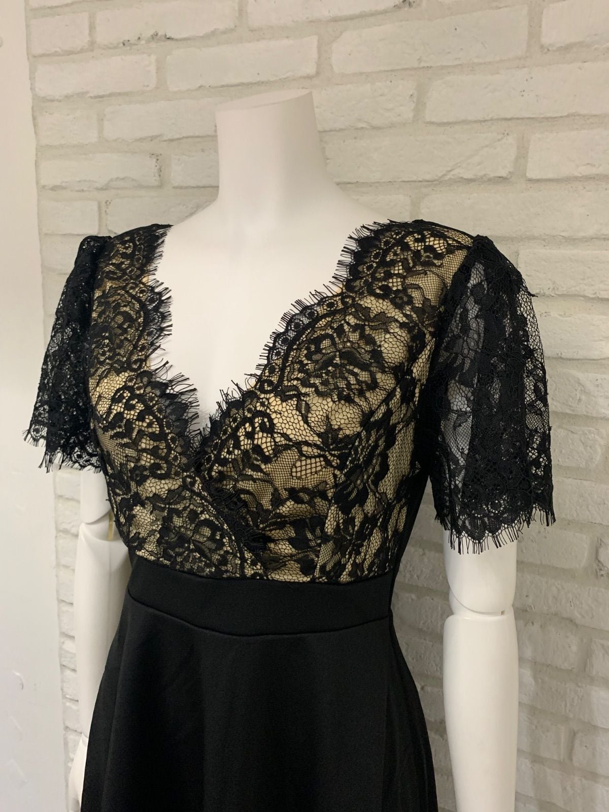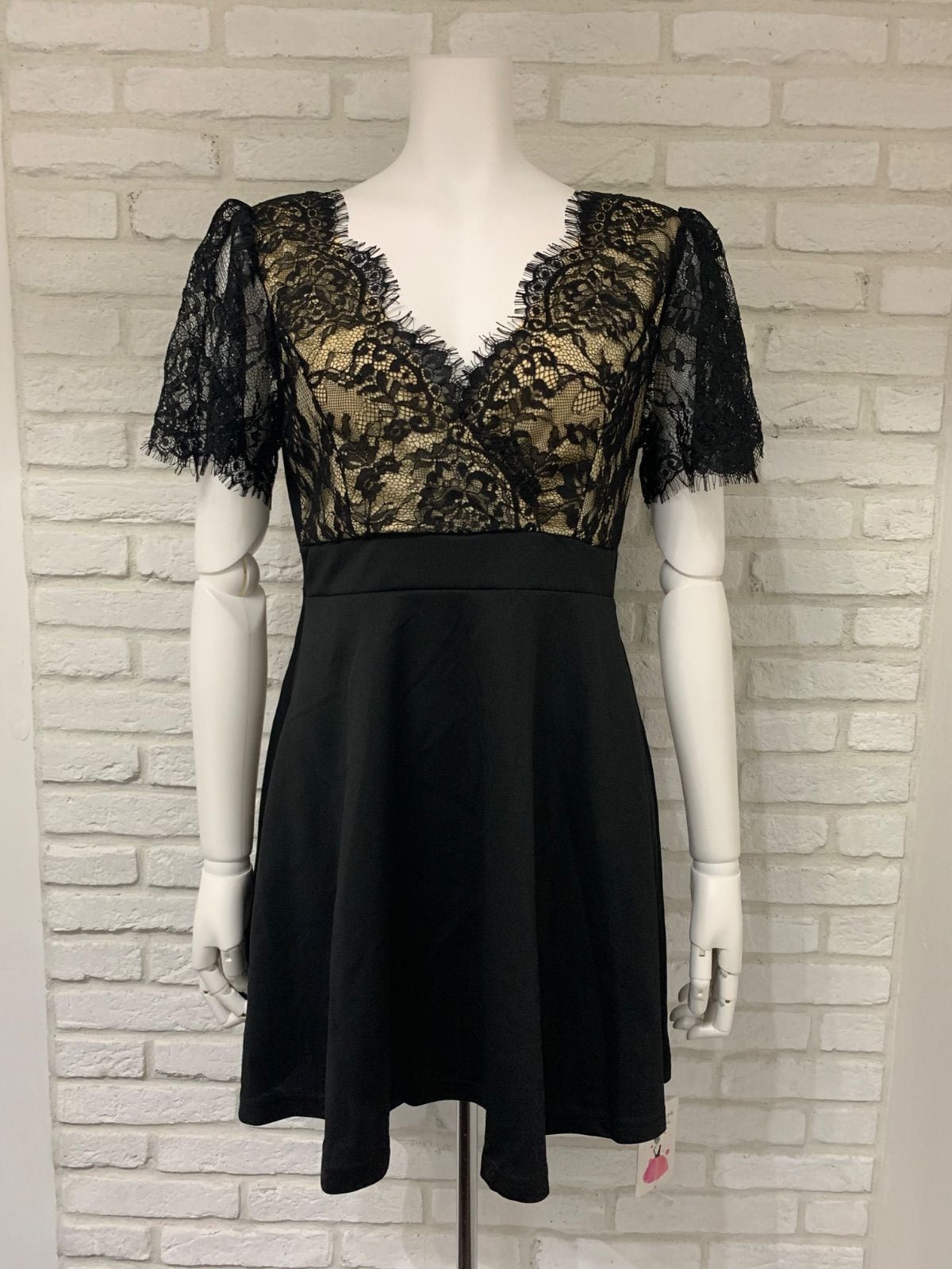 608 キャバクラ ドレス ミニ 新品タグ付き レース切り替えドレス フレア ストレッチ ナイトドレス キャバドレス XL