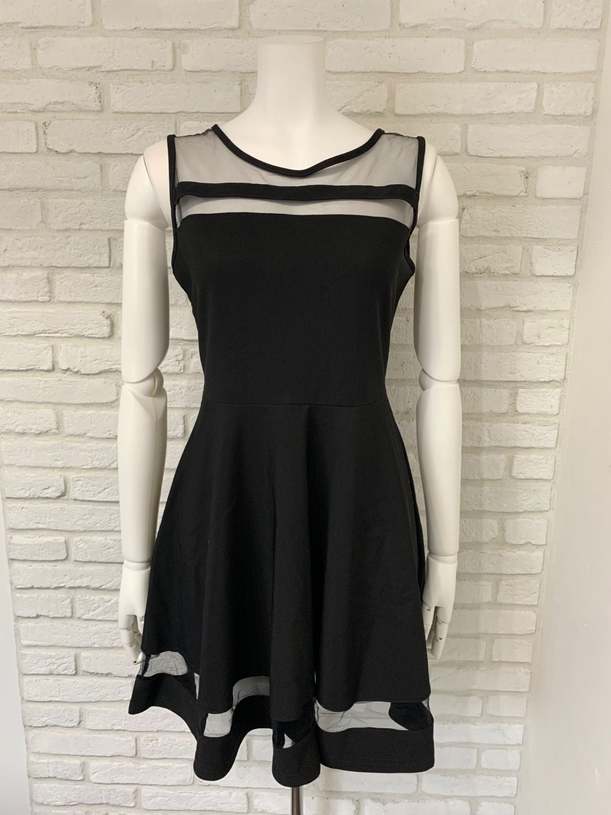 612 DAZZY デイジー キャバクラ ドレス ミニ シースルー フレア ノースリーブ キャバドレス F