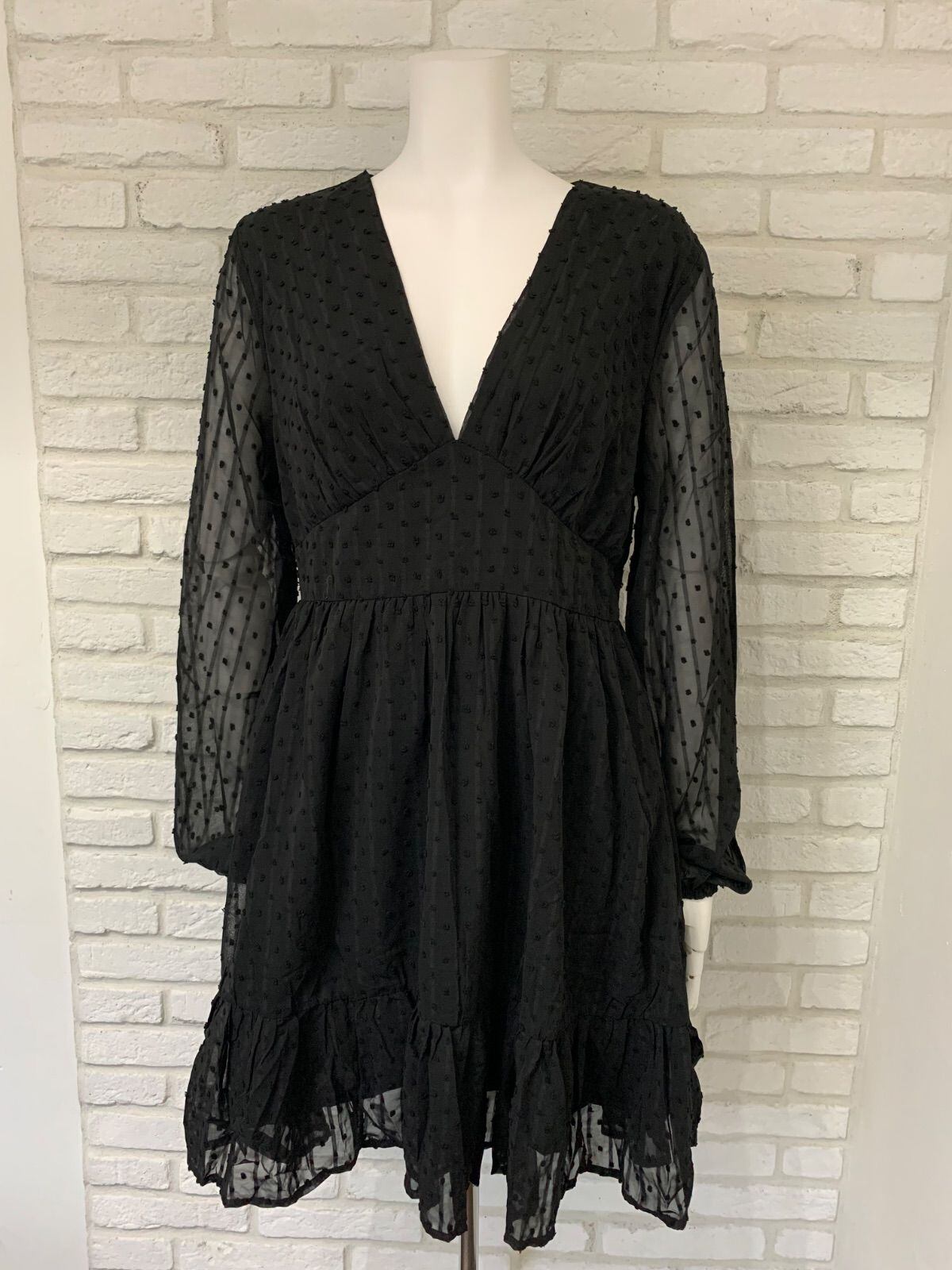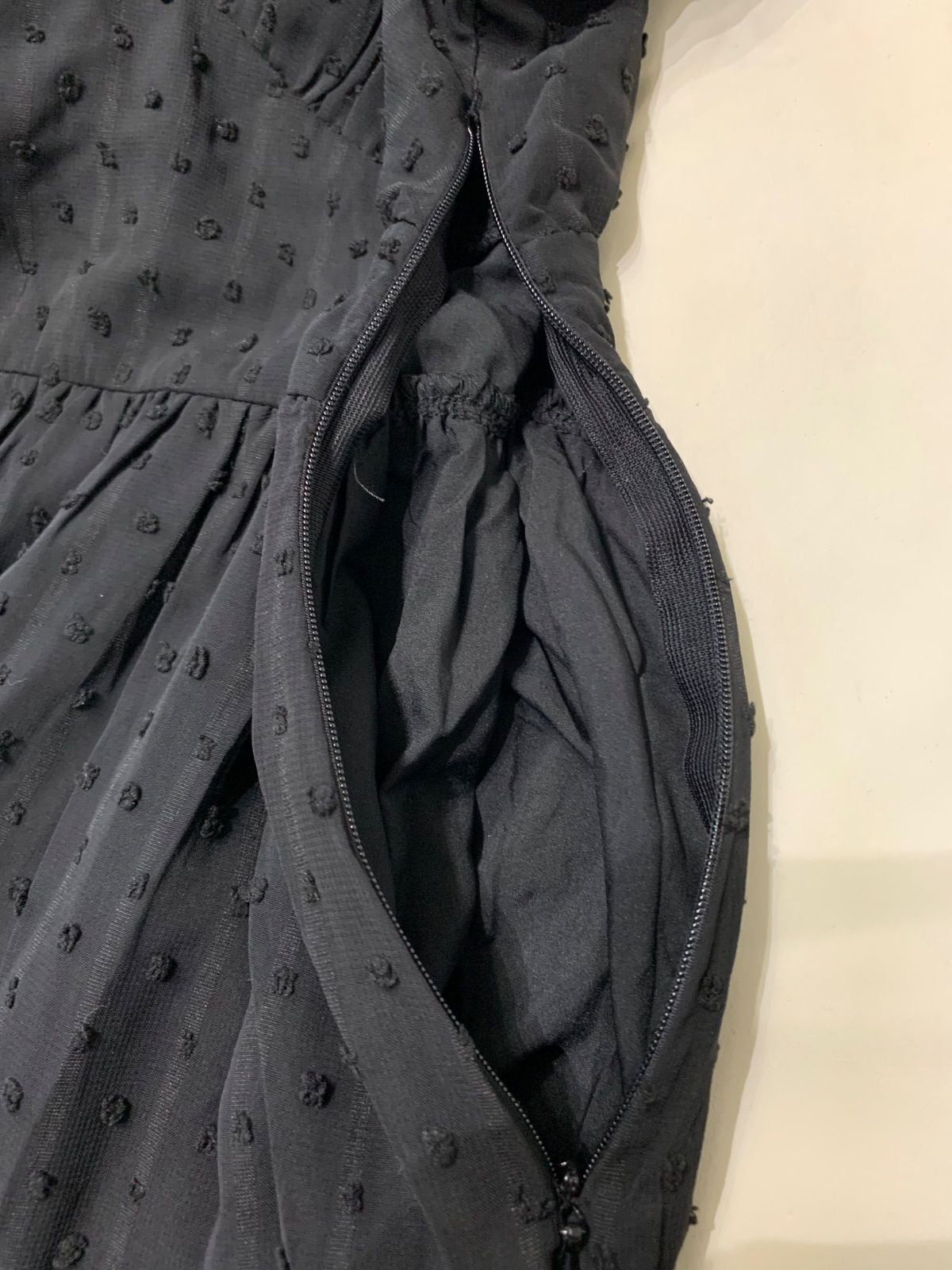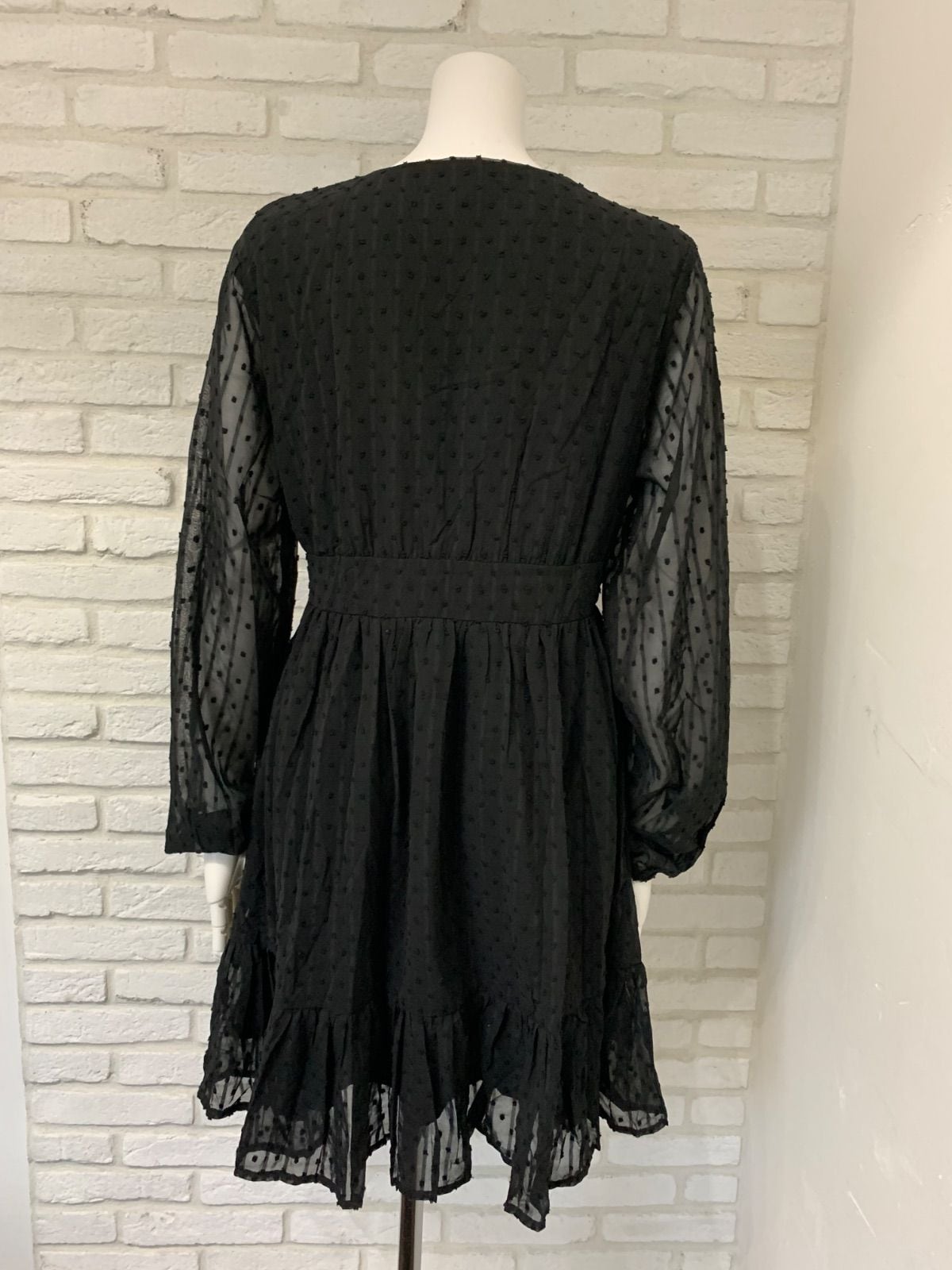 617 キャバクラ ドレス ミディ ドット柄シフォンワンピース フレア シンプル キャバドレス M