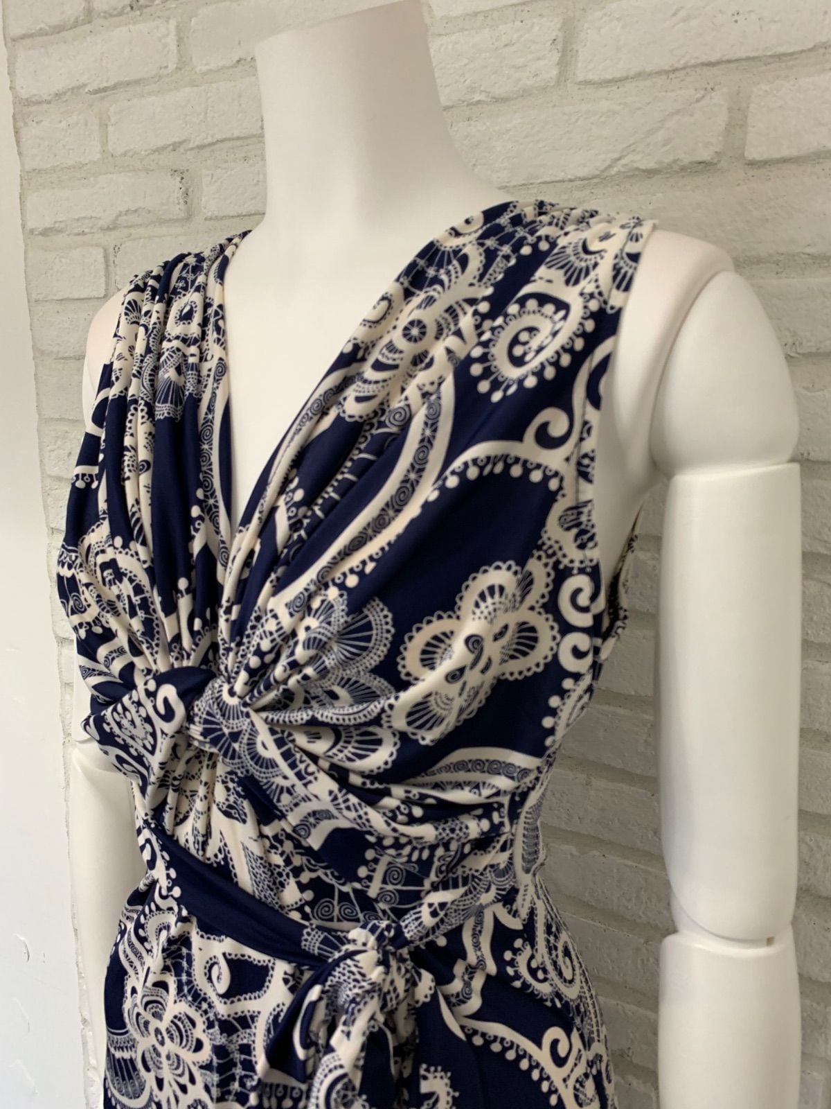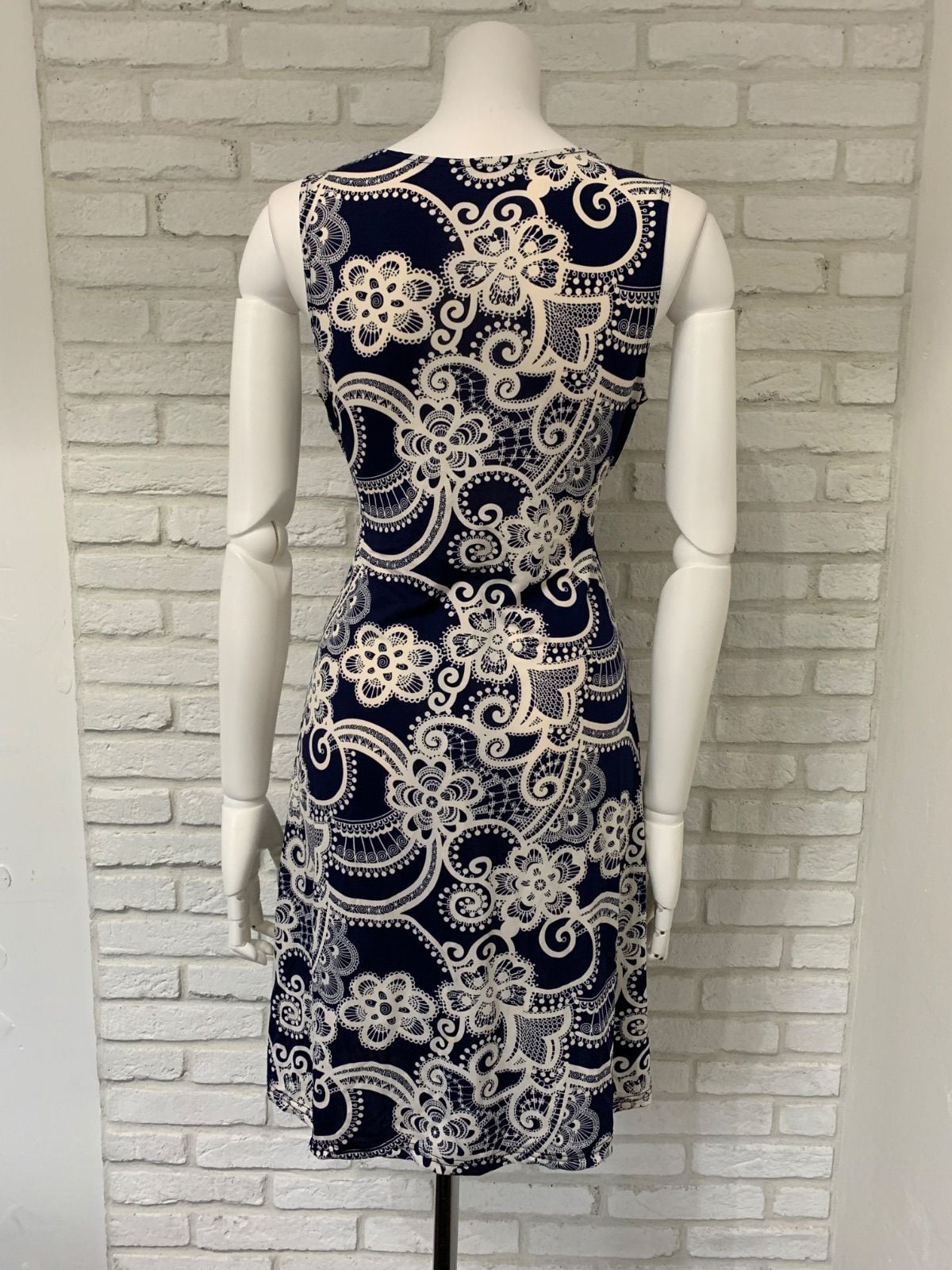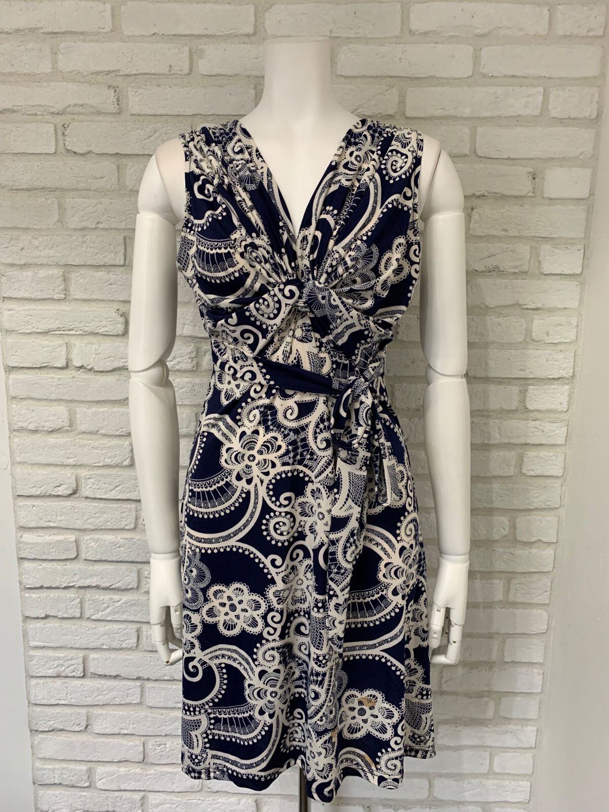 619 キャバクラ ドレス ミニ ペイズリー柄ノースリーブワンピース ナイトドレス ウエストリボン ギャザー キャバドレス F