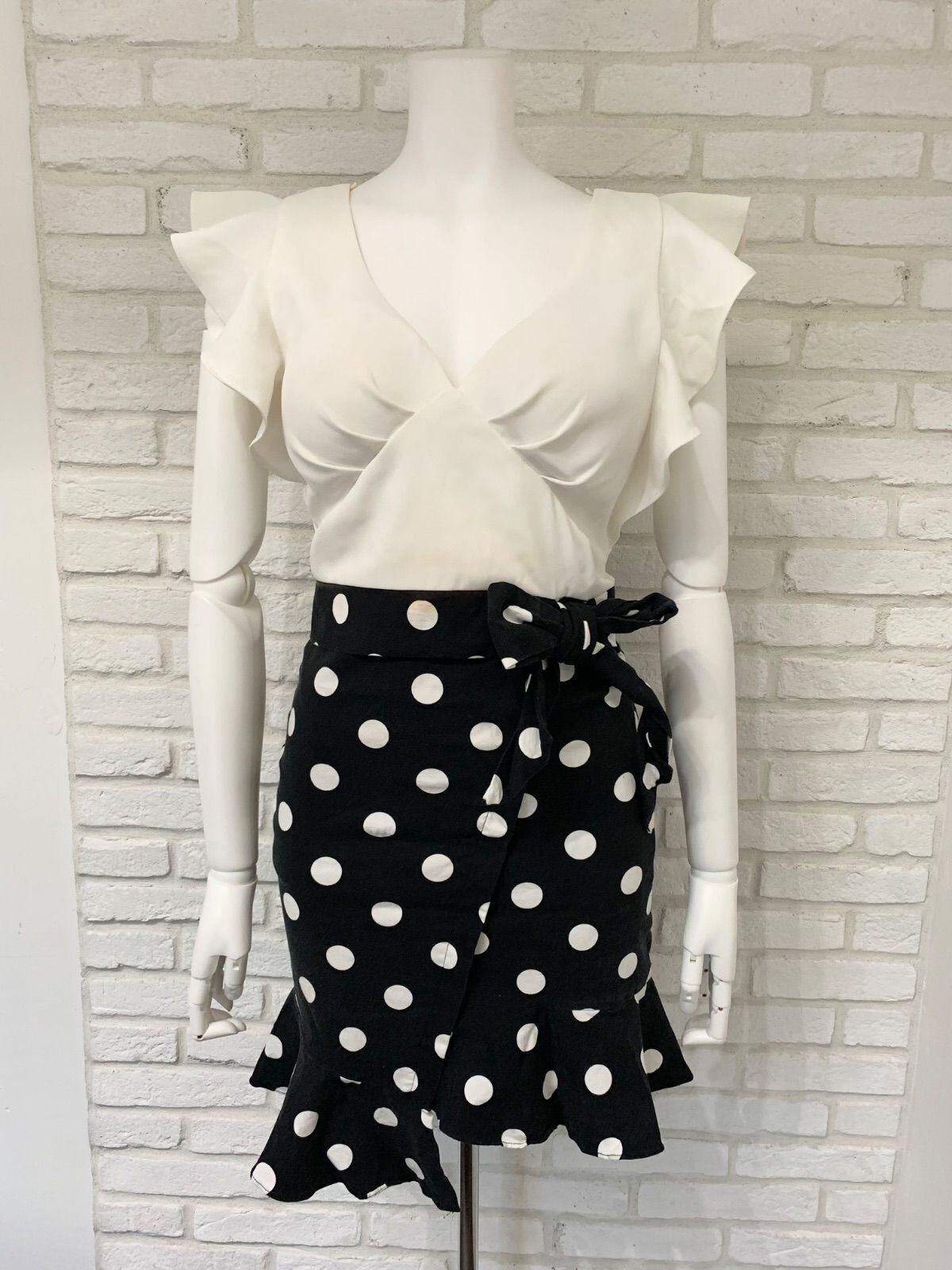 621 Andy アンディ キャバクラ ドレス ミニ ドット フリル リボン キャバドレス M