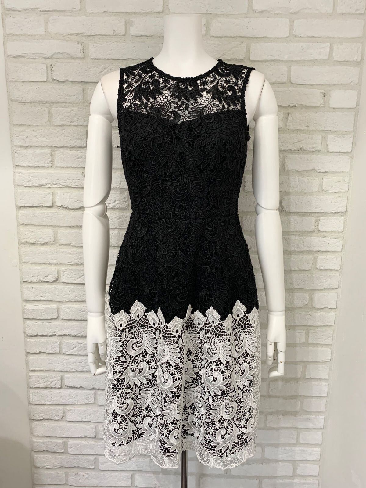 632 ABS アレンシュワルツ USA製 キャバドレス 総レース バイカラー ノースリーブ ひざ丈 2サイズ