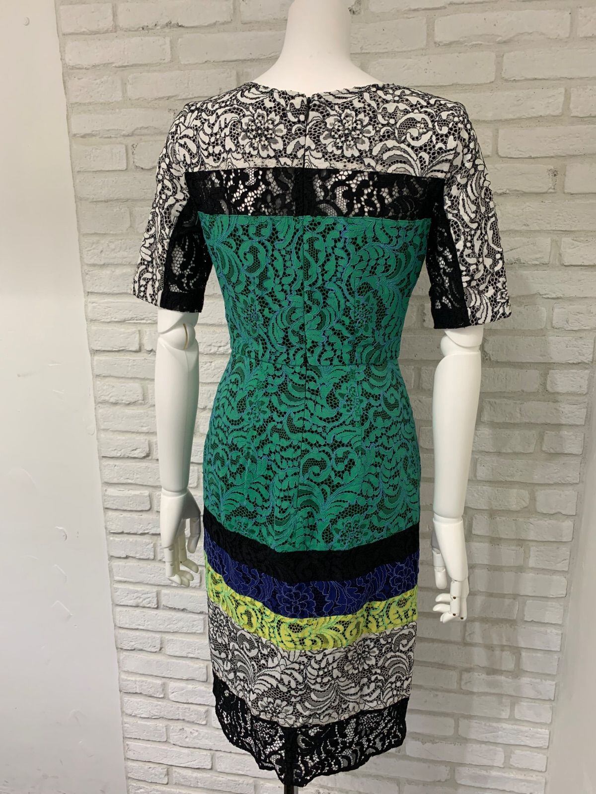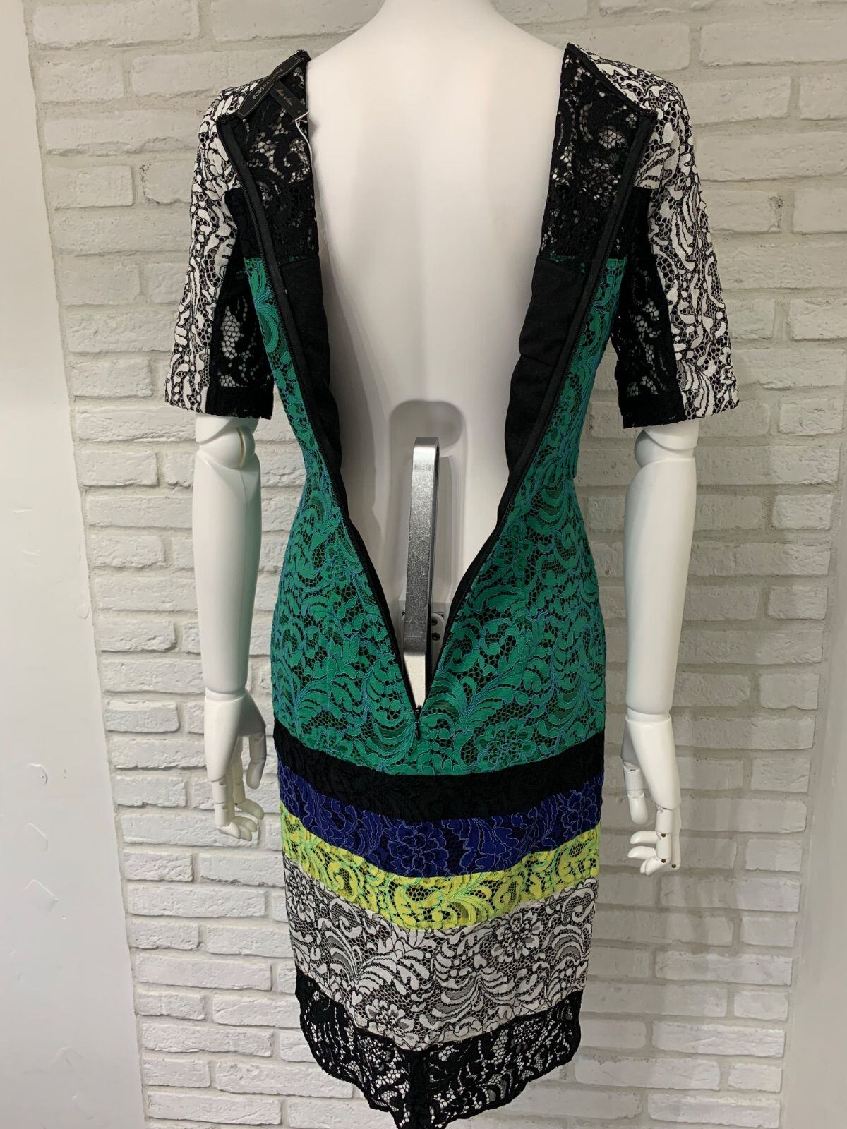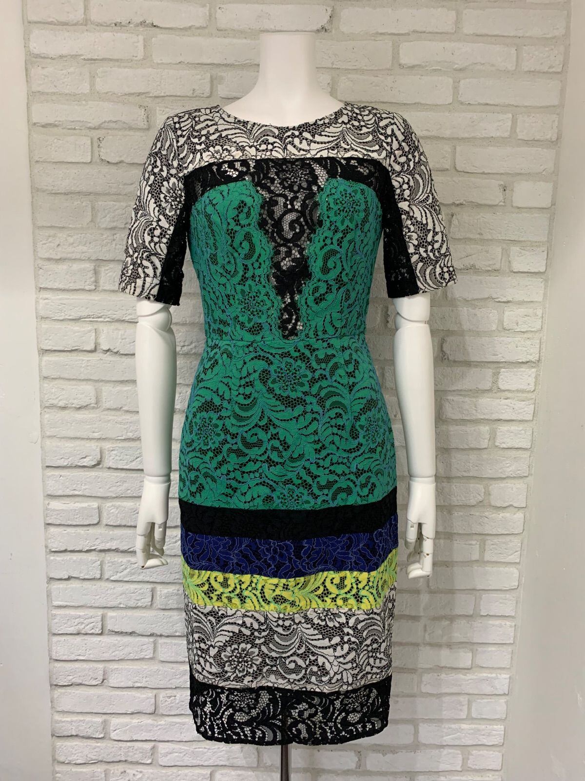 635 BCBG MAXAZRIA ビーシービージーマックスアズリア キャバドレス 総レース バイカラー ひざ丈 タイト 0サイズ