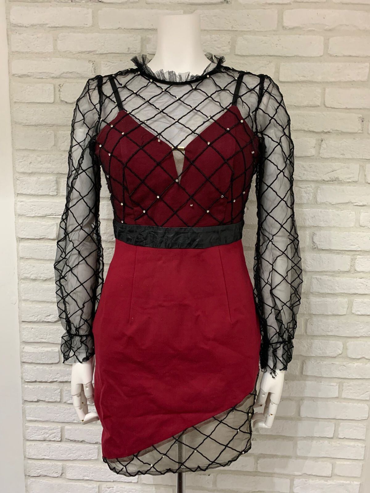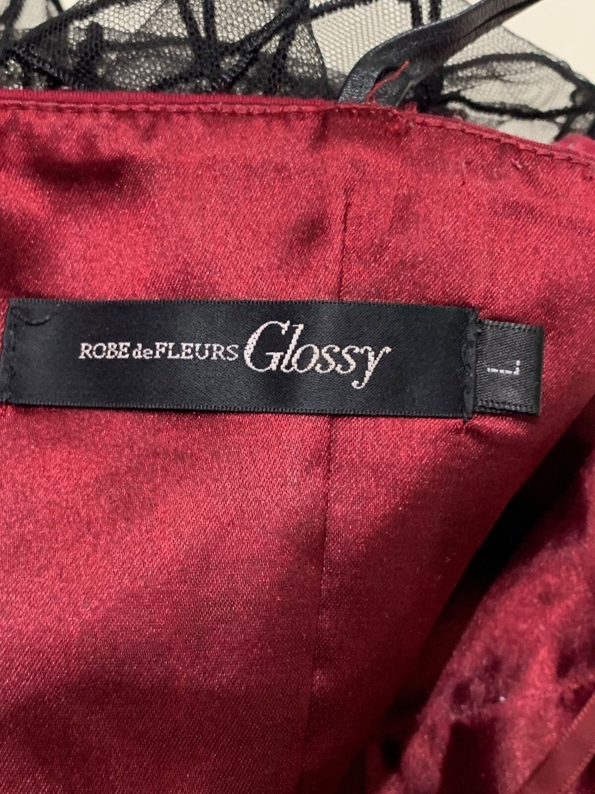 651 ROBE de FLEURS Glossy ローブドフルールグロッシー キャバクラ ドレス ミニ ラインストーン シースルー リボン タイト キャバドレス L