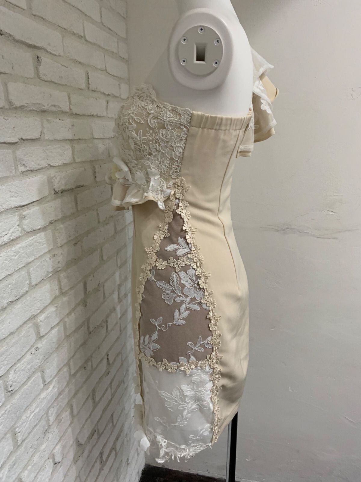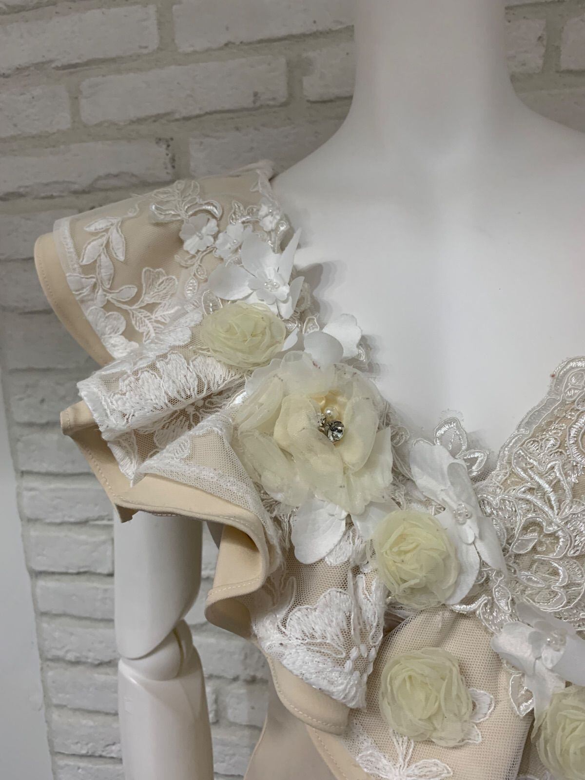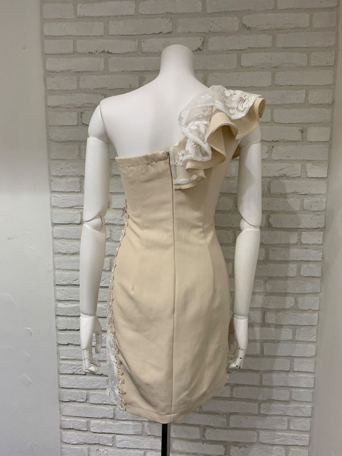 657 ROBE de FLEURS ローブドフルール キャバクラ ドレス ミニ ワンショルダー コサージュ レース フリル タイト キャバドレス M