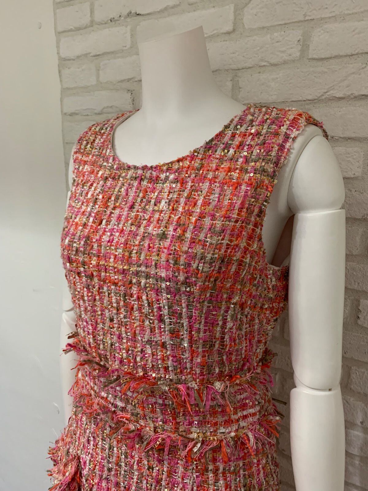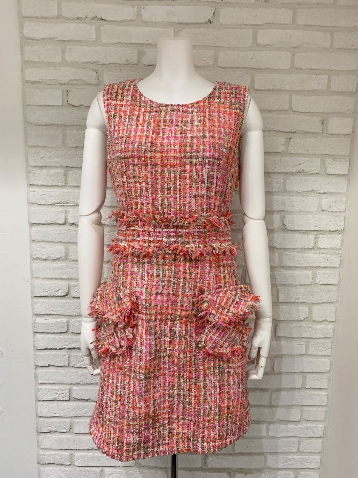 658 YIEELACOO キャバドレス ラメツイードドレス スパンコール フリンジ ポケット ノースリーブ S