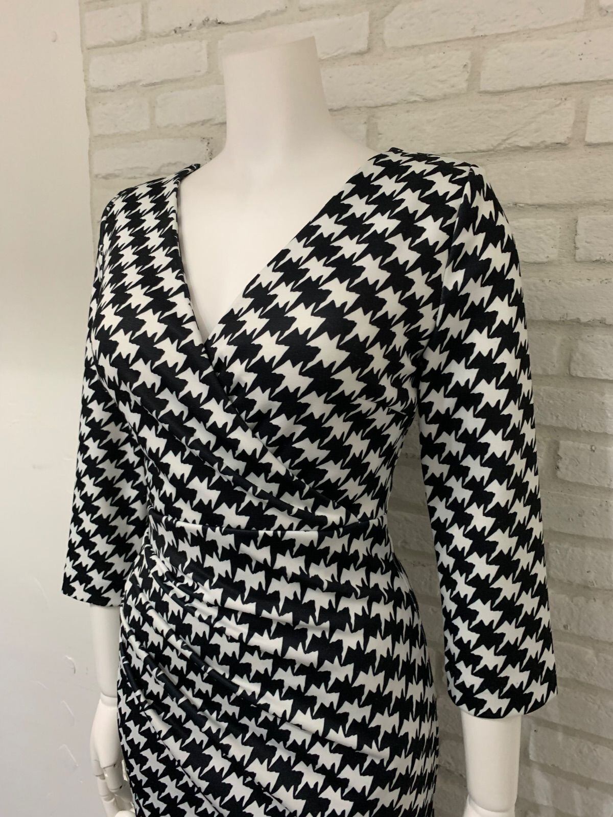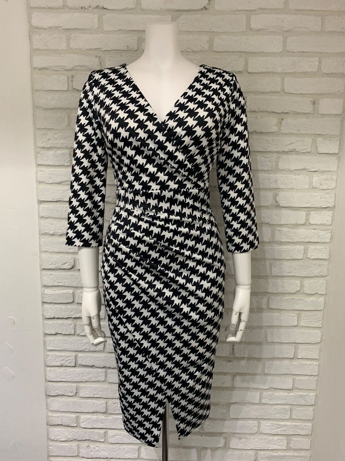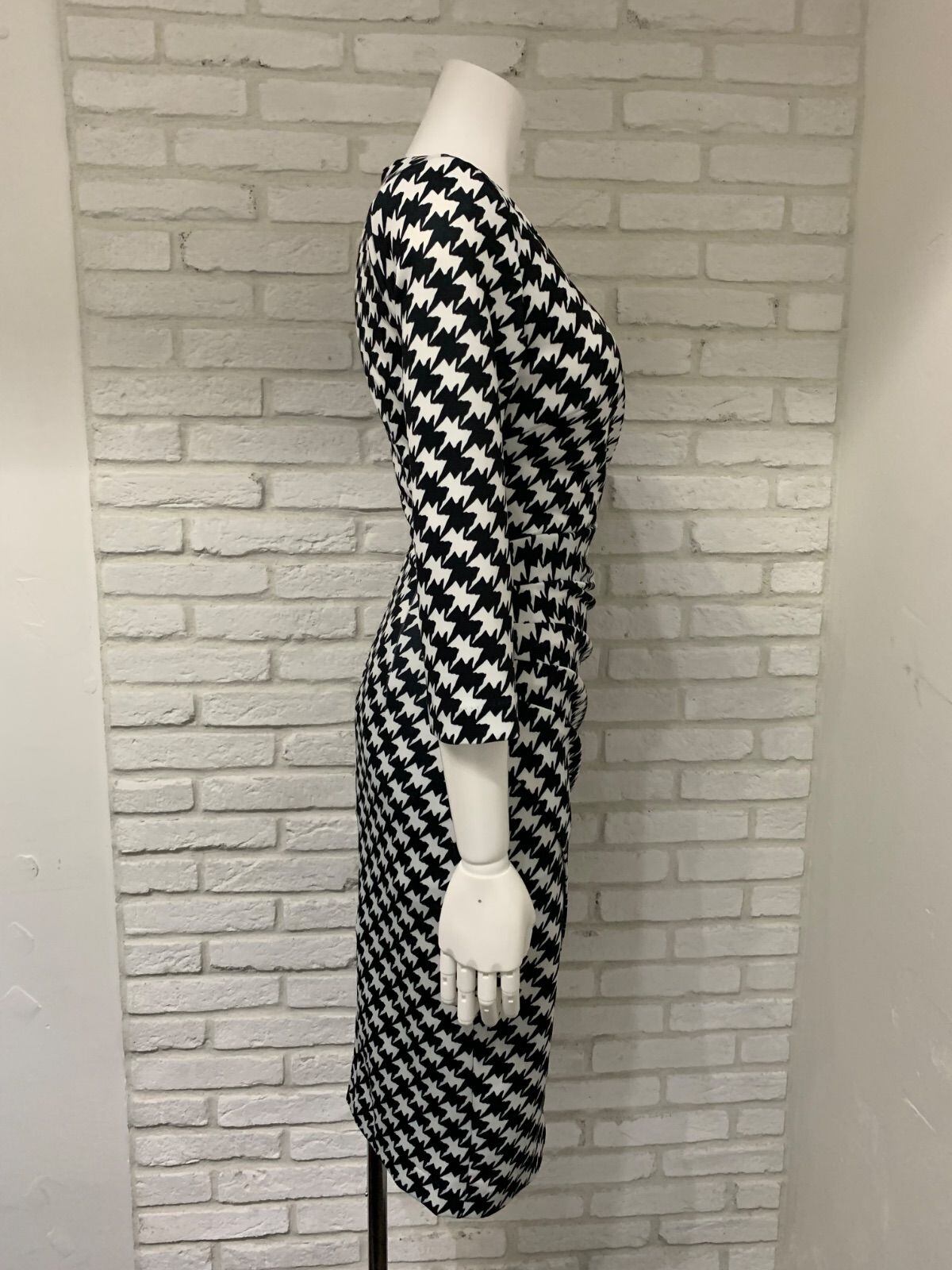 667 Trinity トリニティ キャバクラ ドレス ミディ Vネック 総柄 千鳥柄 タイト キャバドレス XS