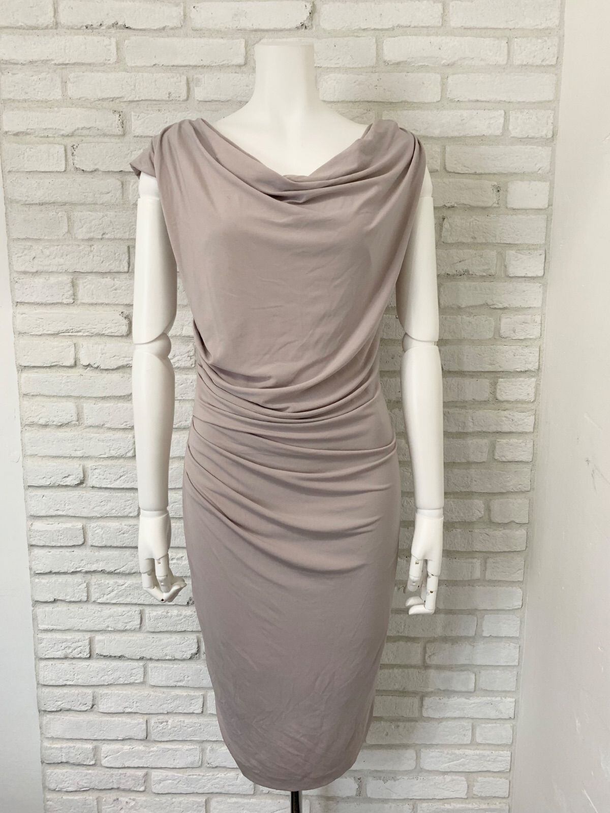 704 LEXXY キャバドレス 日本製 シンプル ミディ M スリット ギャザー