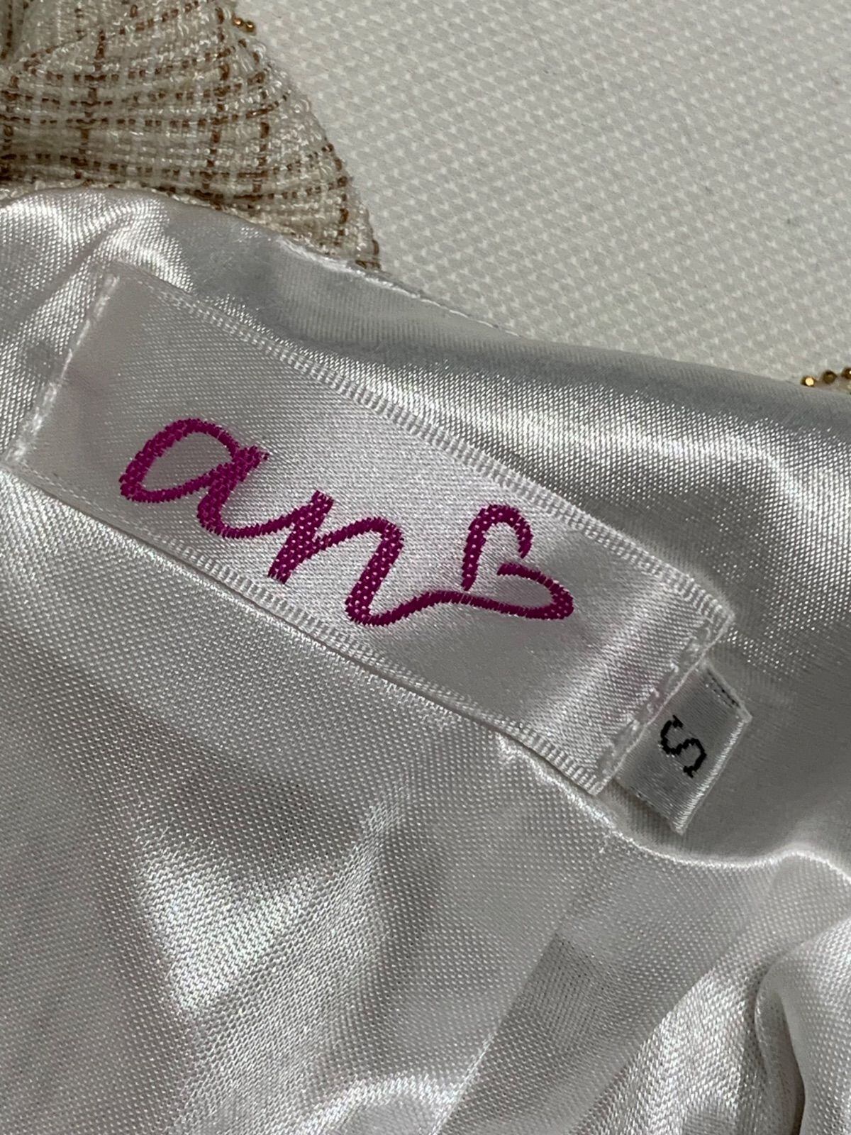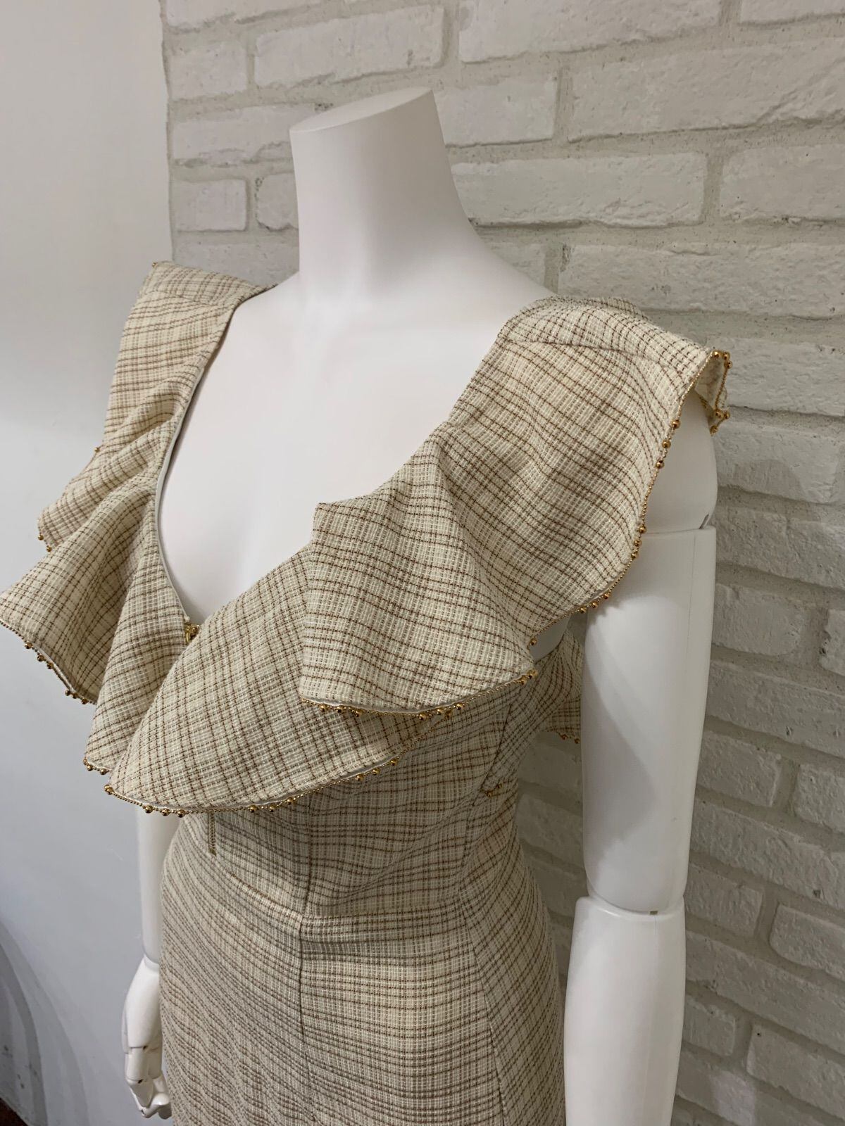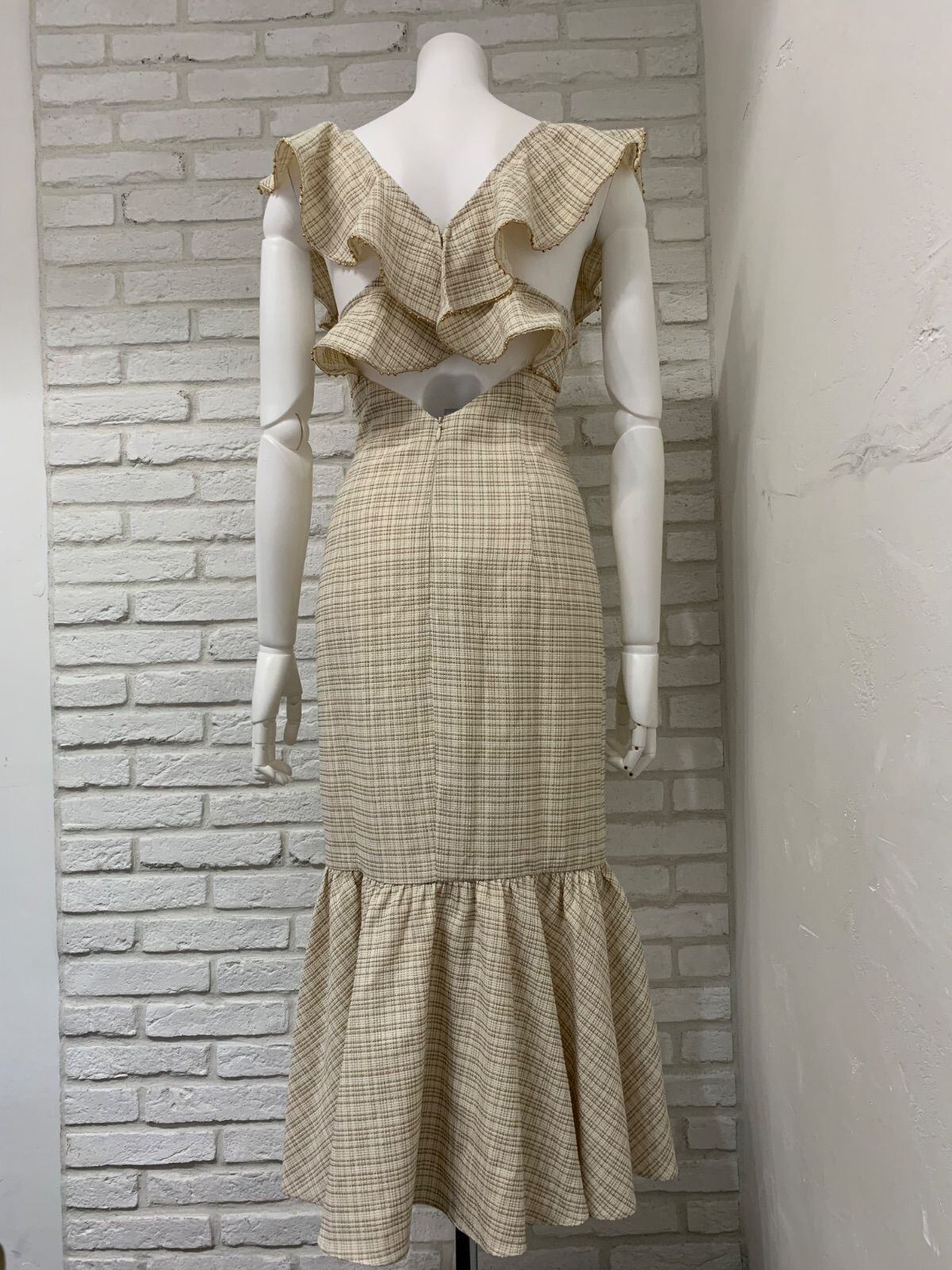713 an アン キャバドレス マーメイド フリル チェック ビジュー ジップ ゴールド金具 S