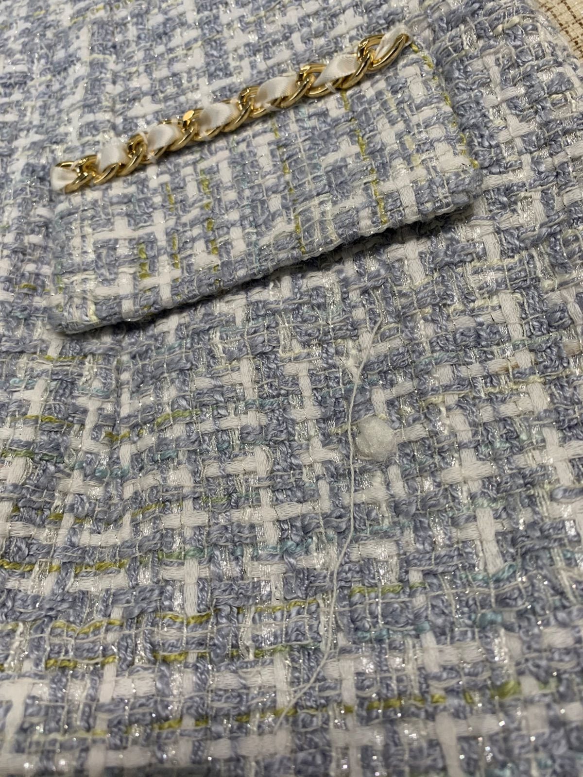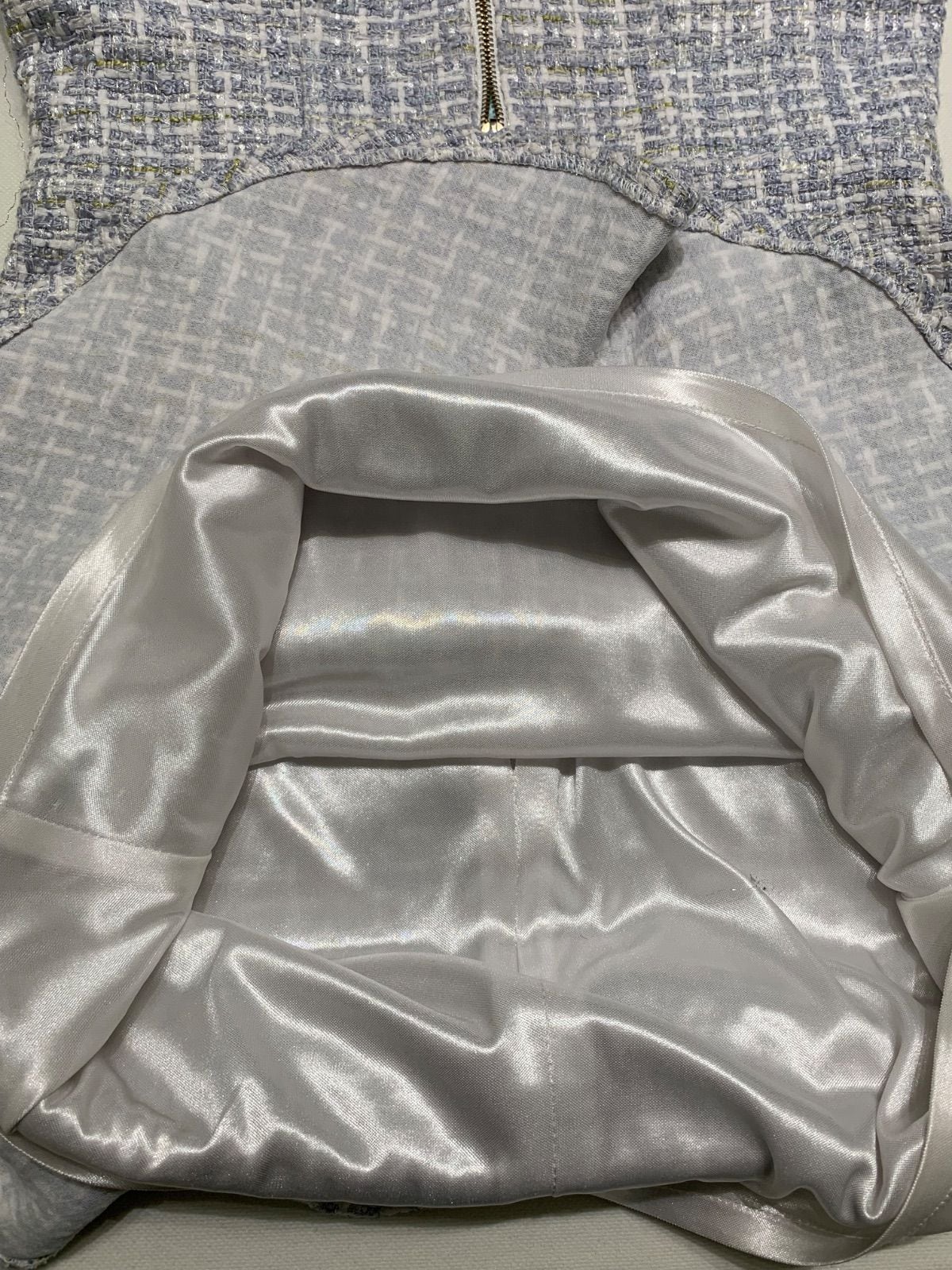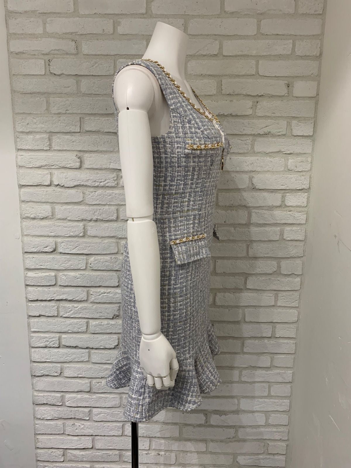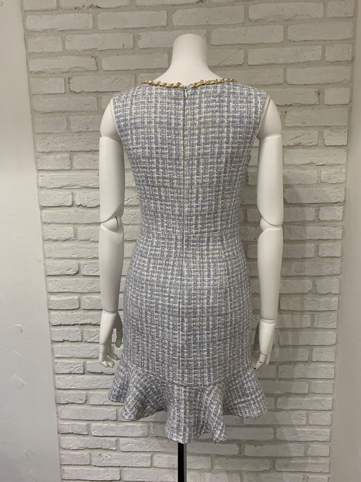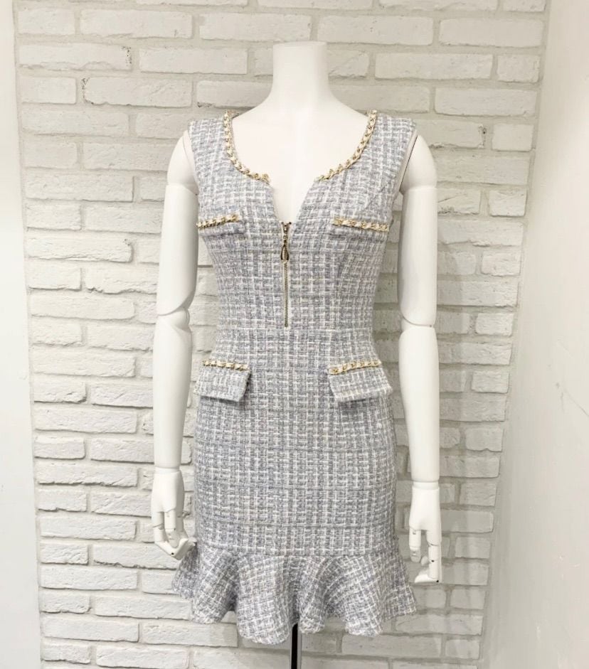 714 an アン キャバドレス ツイードラメ ゴールドチェックノースリーブ ジップ マーメイド S