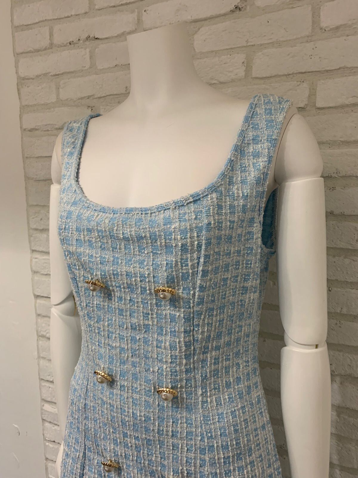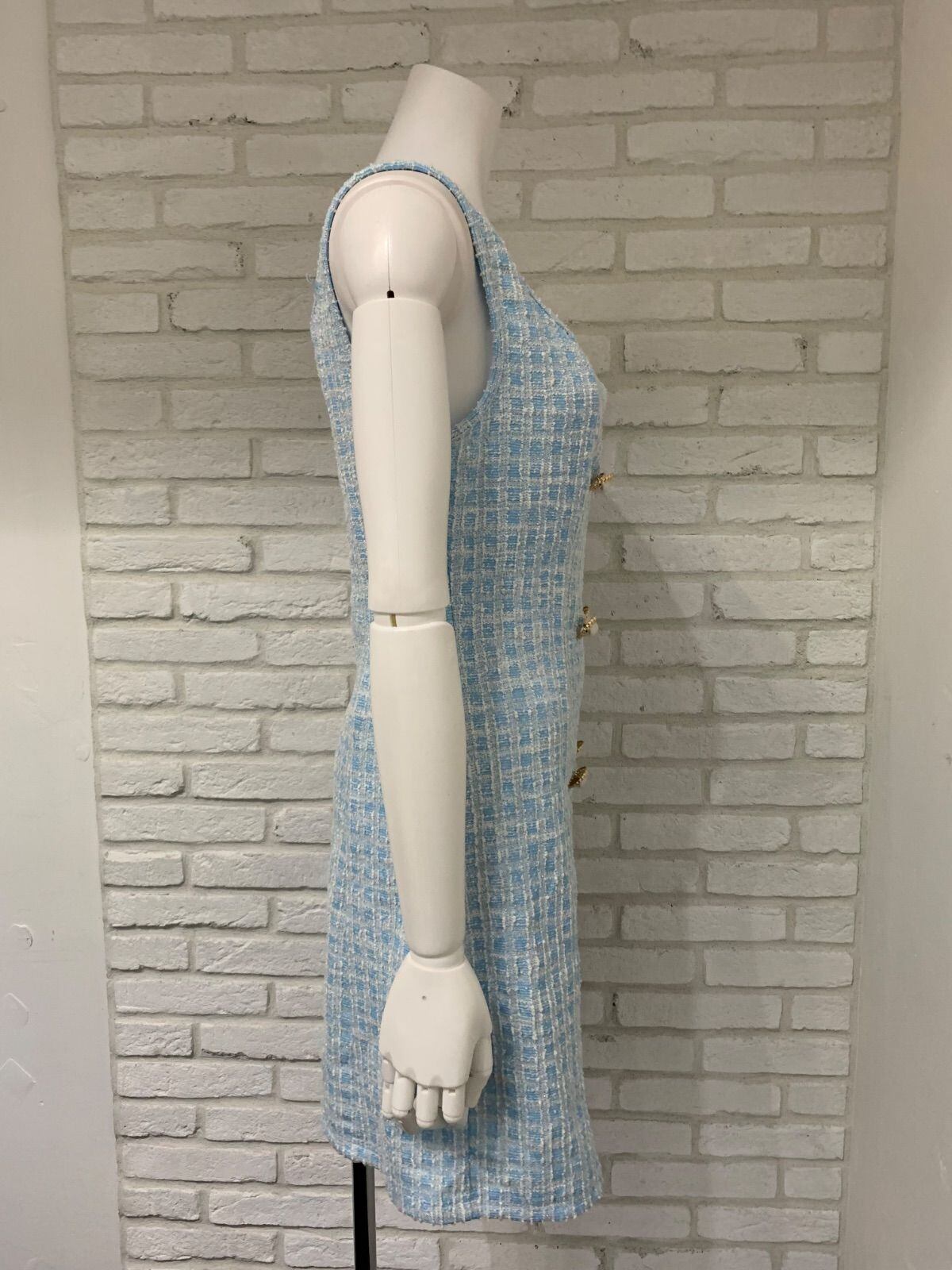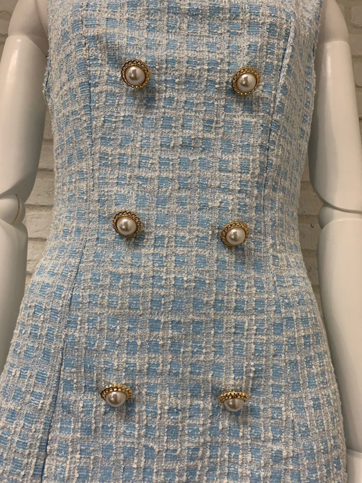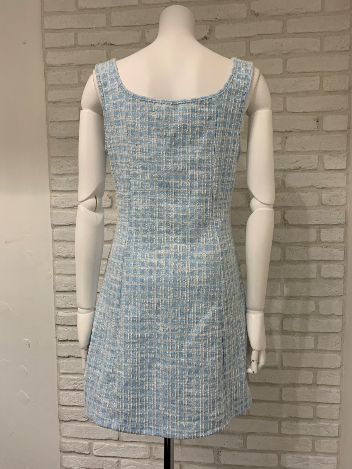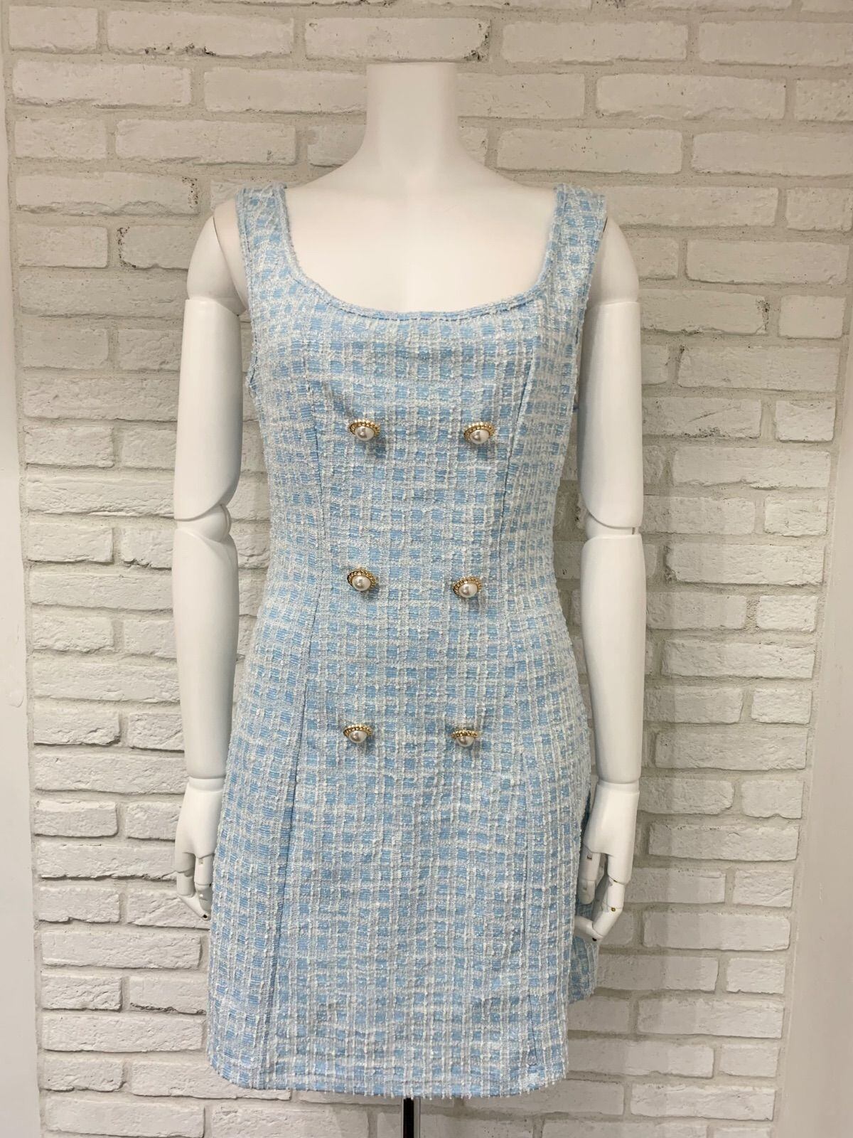 730 ツイードラメノースリーブドレス キャバドレス パールボタン ゴールド S