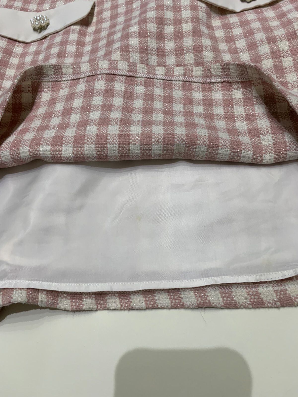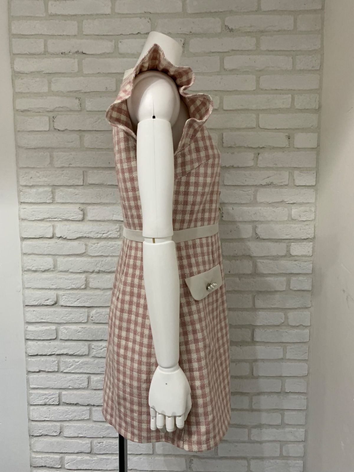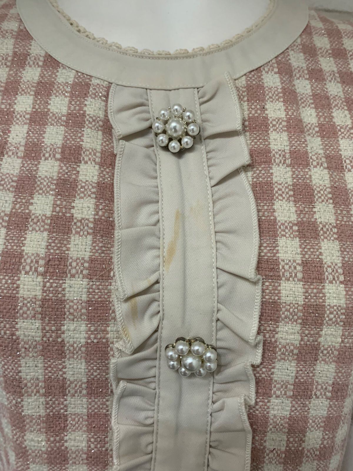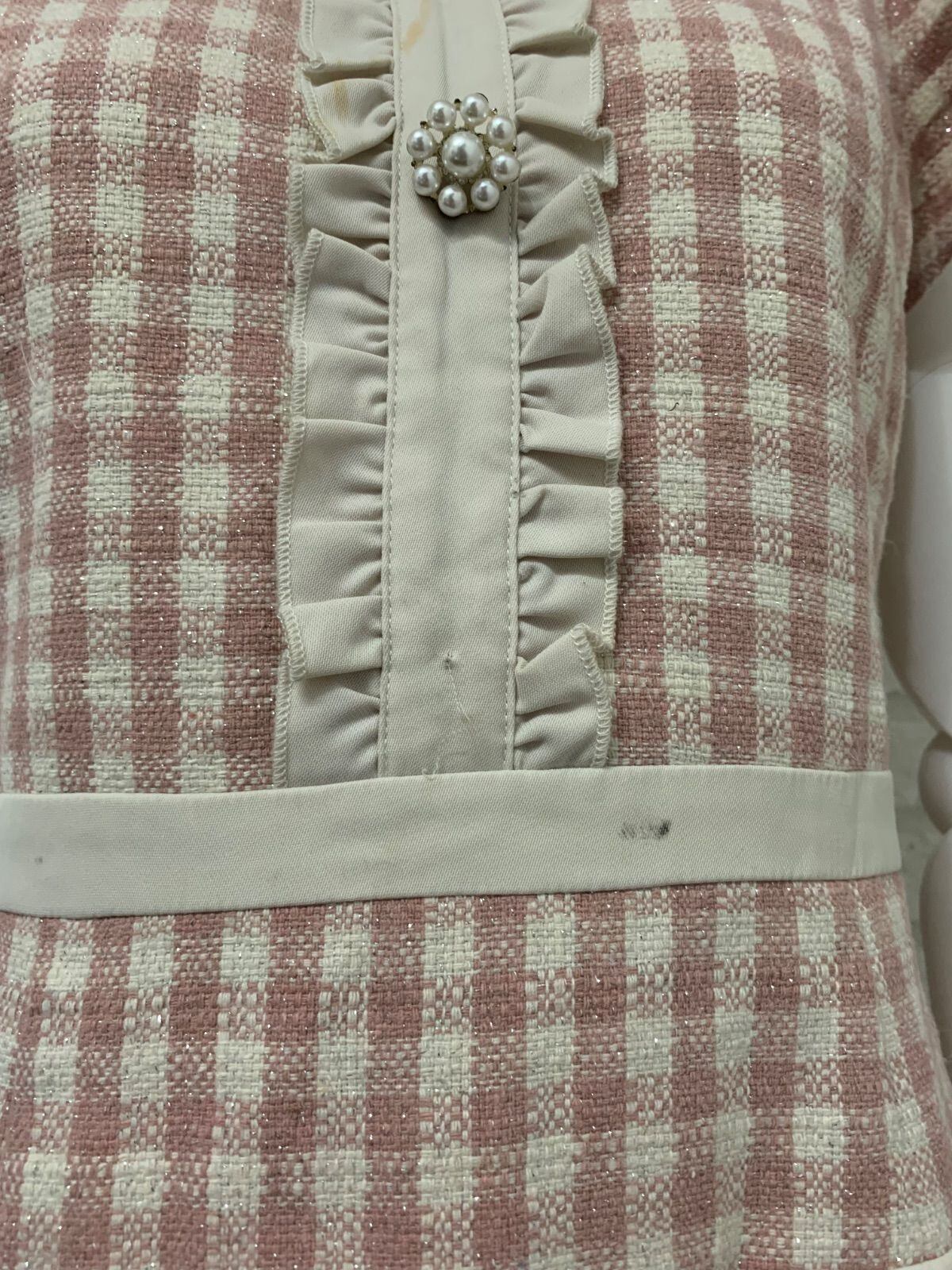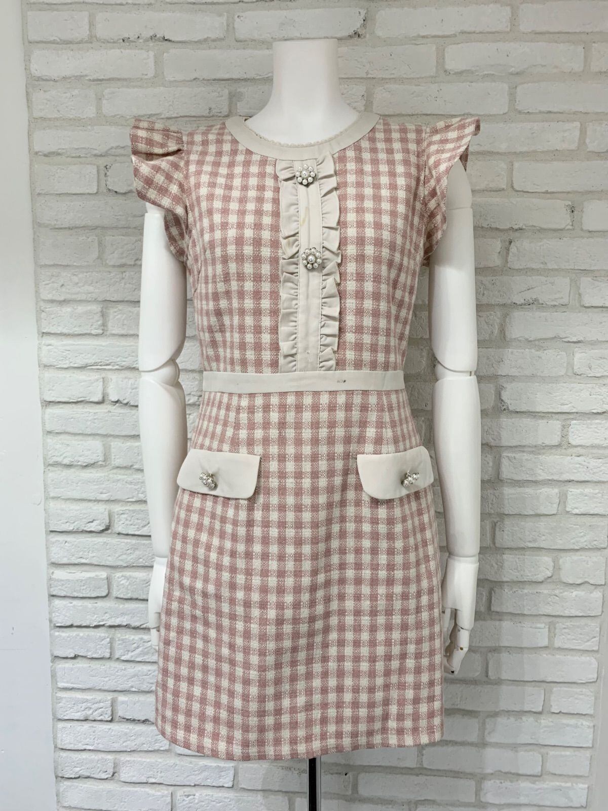 733 evelyn キャバドレス チェック ツイードラメ フリル パールボタン ミニ