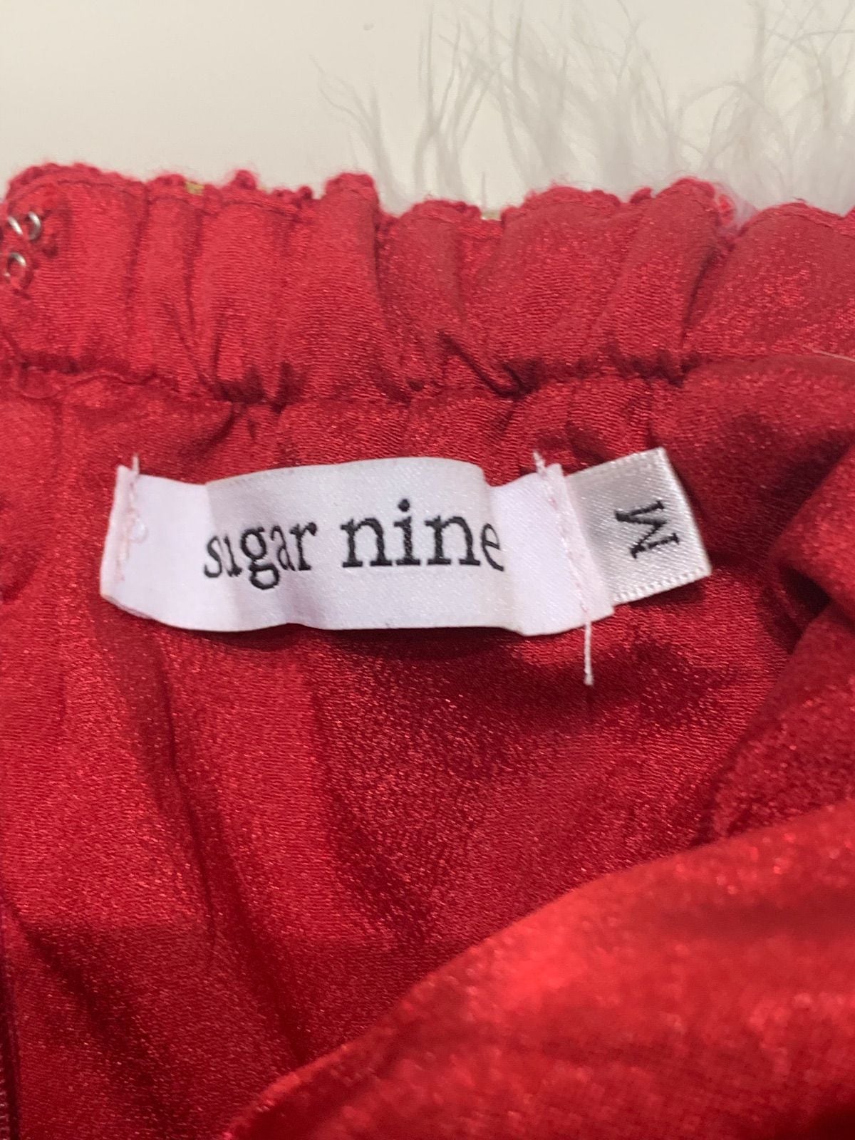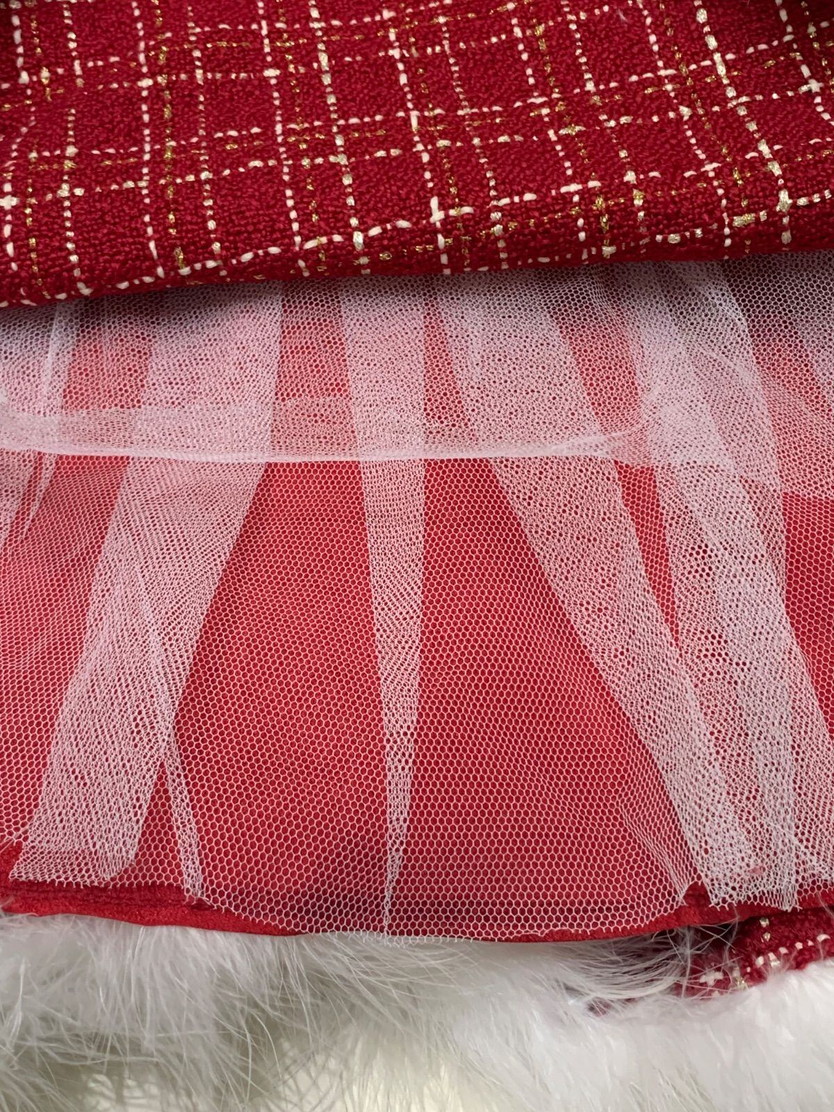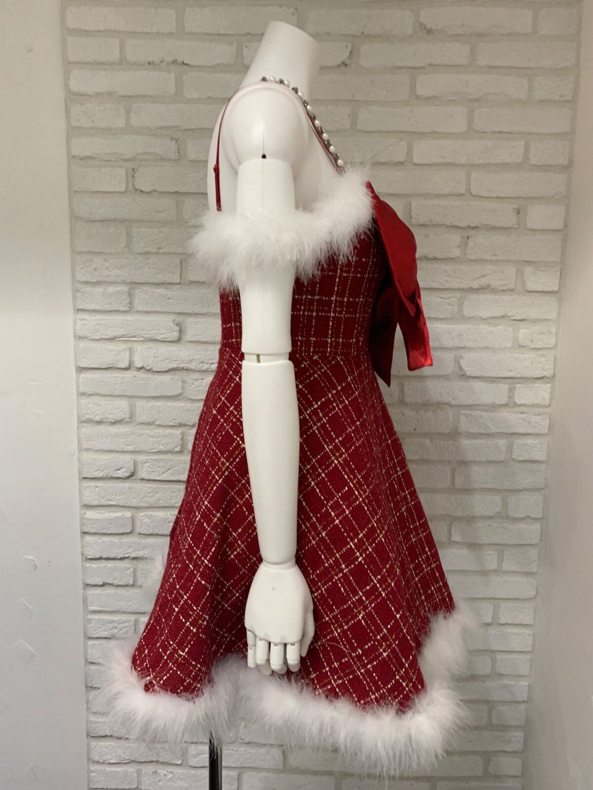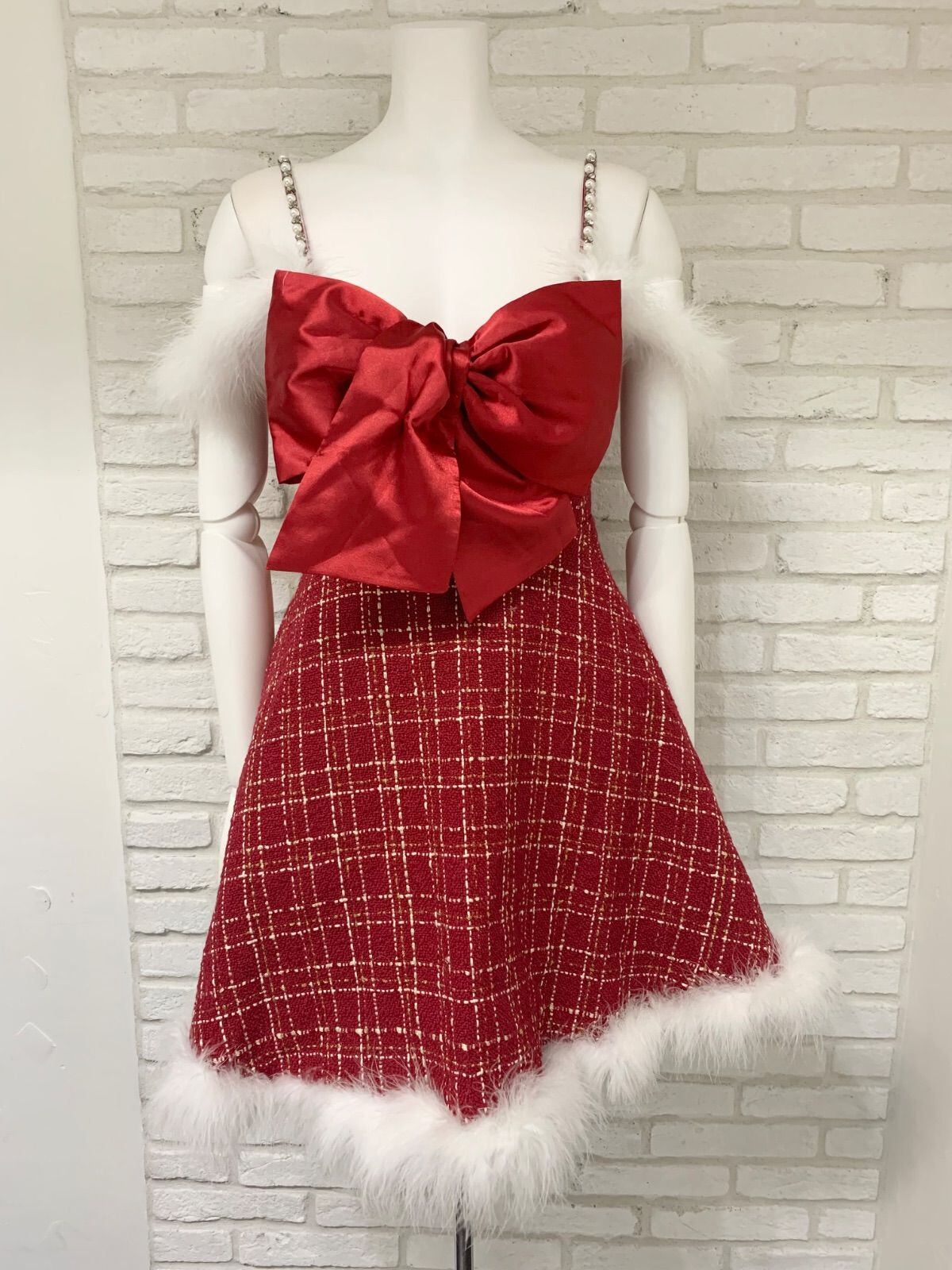 734 suger nine キャバドレス ファー リボン フレア ビジューストラップ チェックツイードラメ M