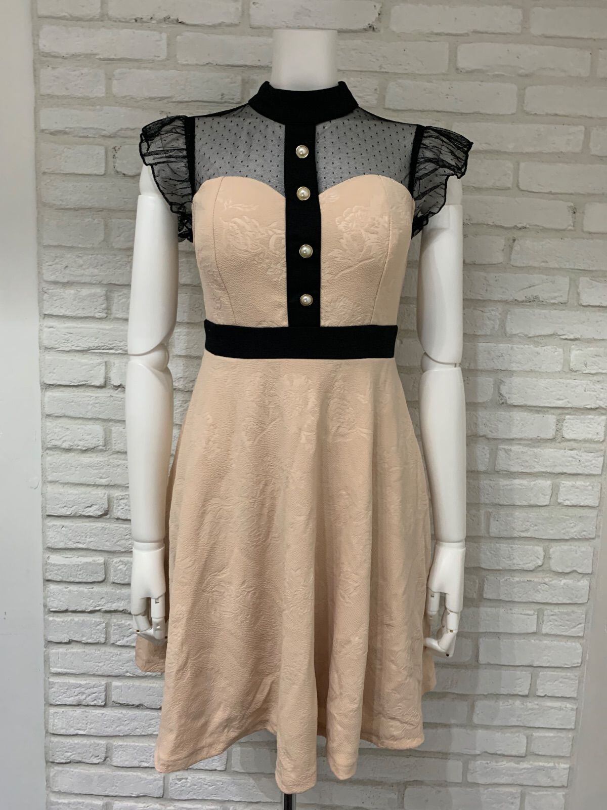 738 BayBClub ベイビークラブ キャバドレス フレア レース シースルー ドットパールボタン