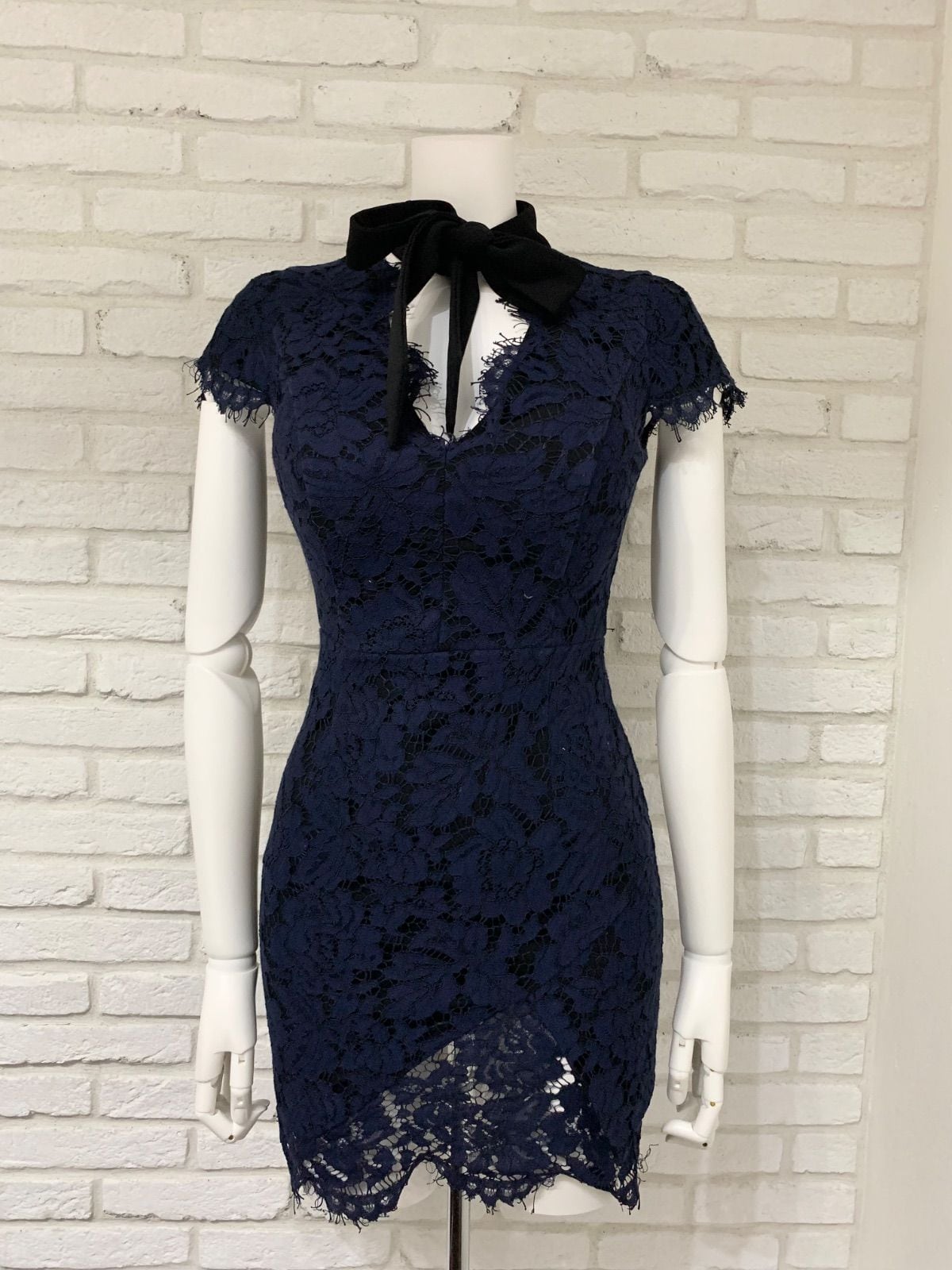 747 Tika ティカ キャバドレス 総レース リボン タイト ミニ S