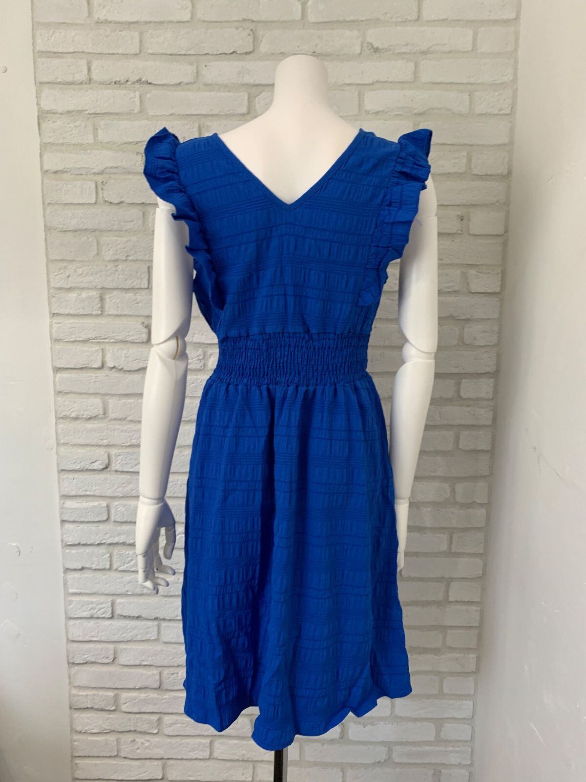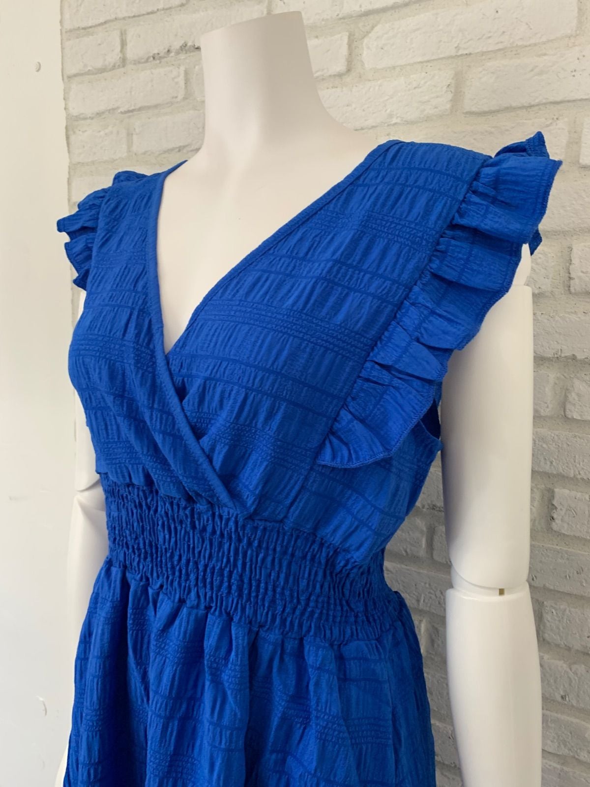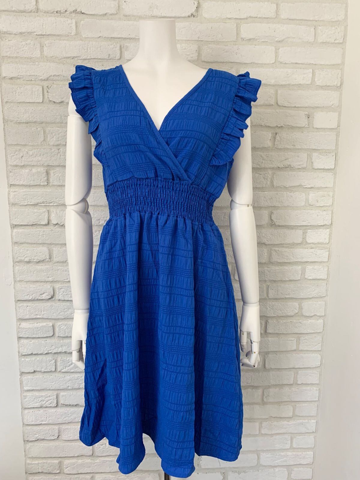 755 フリルワンピース ウエストゴム フレアドレス Vネック 膝丈