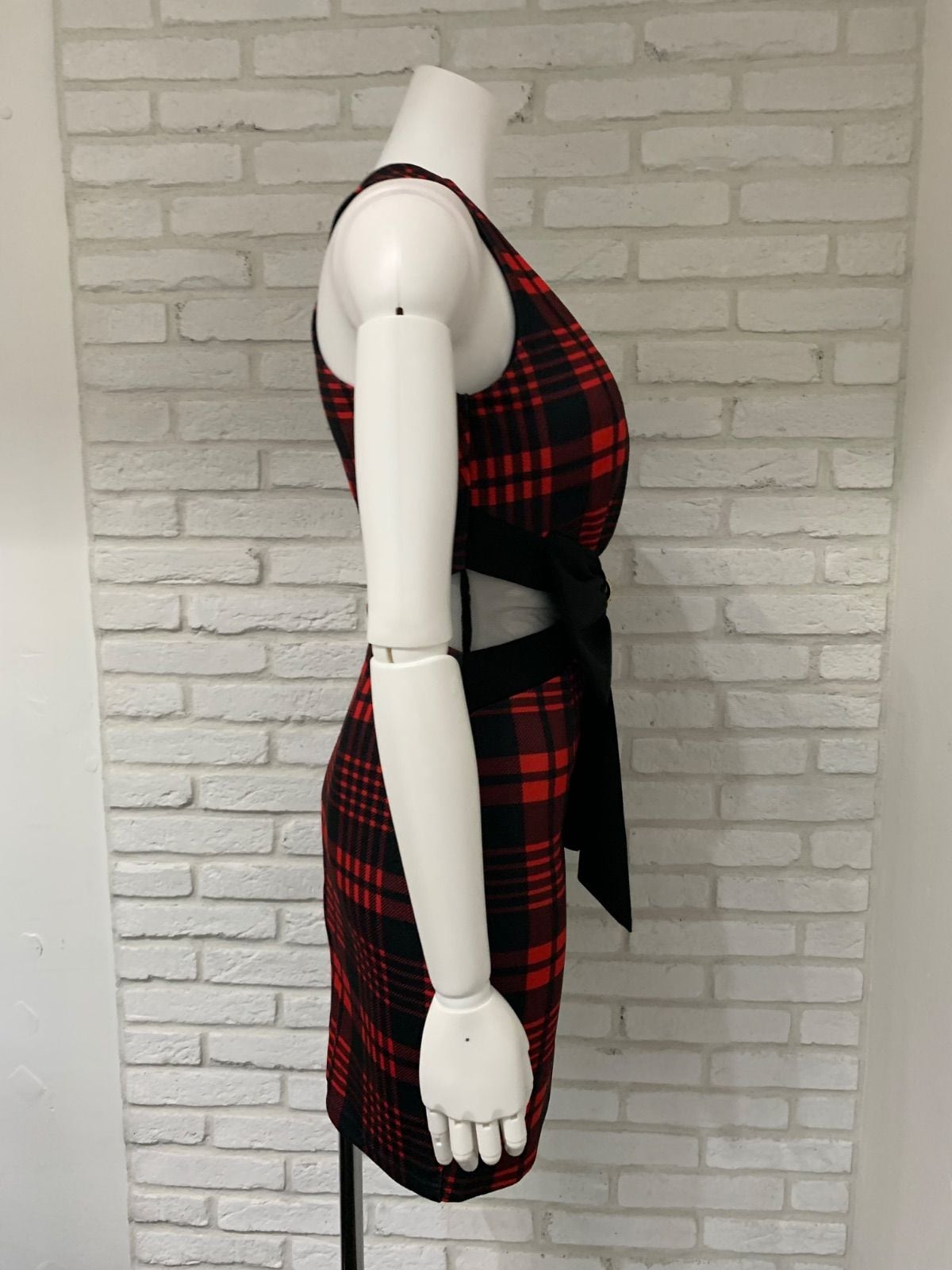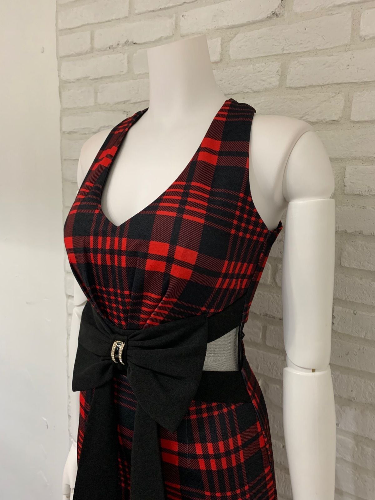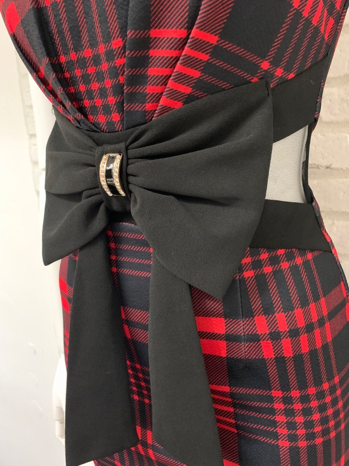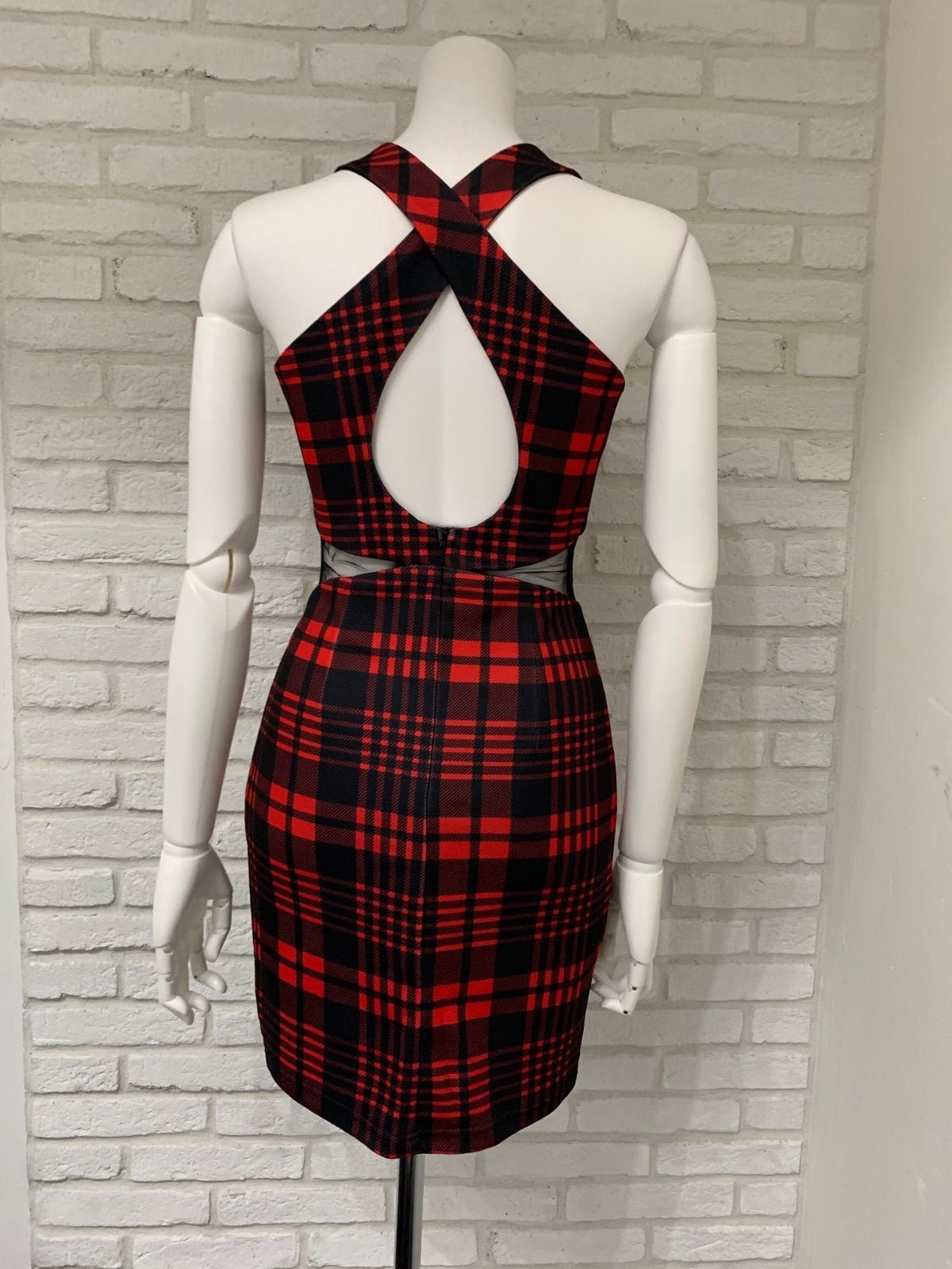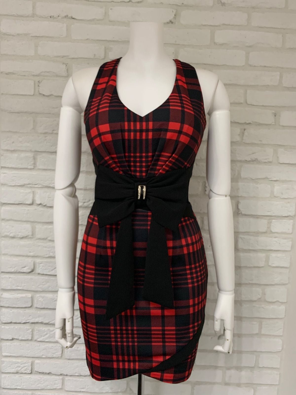 774 DAZZY デイジー キャバドレス チェック柄 リボン シースルー タイト ミニ