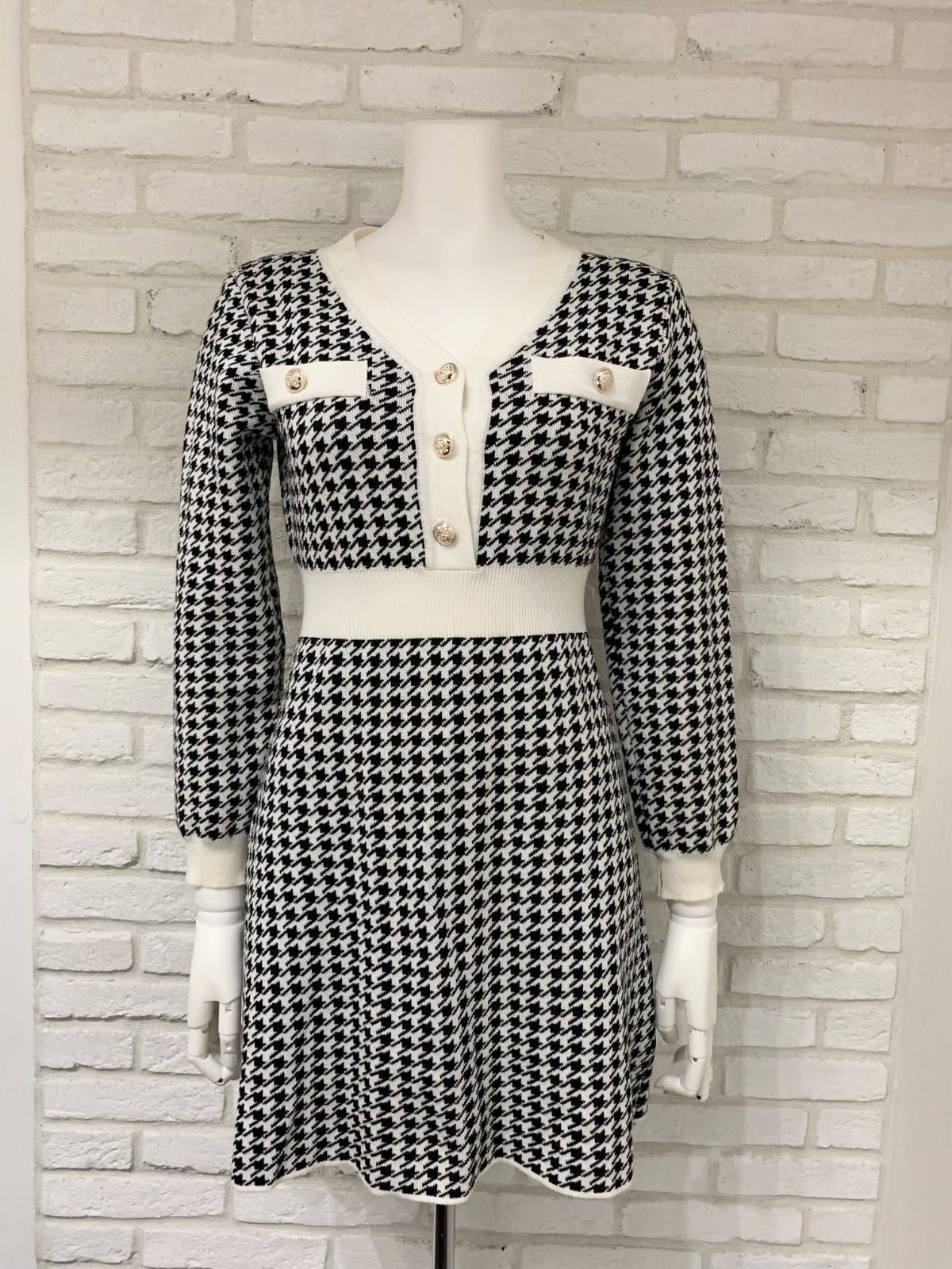 786 Randy ランディ キャバドレス ニット 千鳥柄 タイト フレア