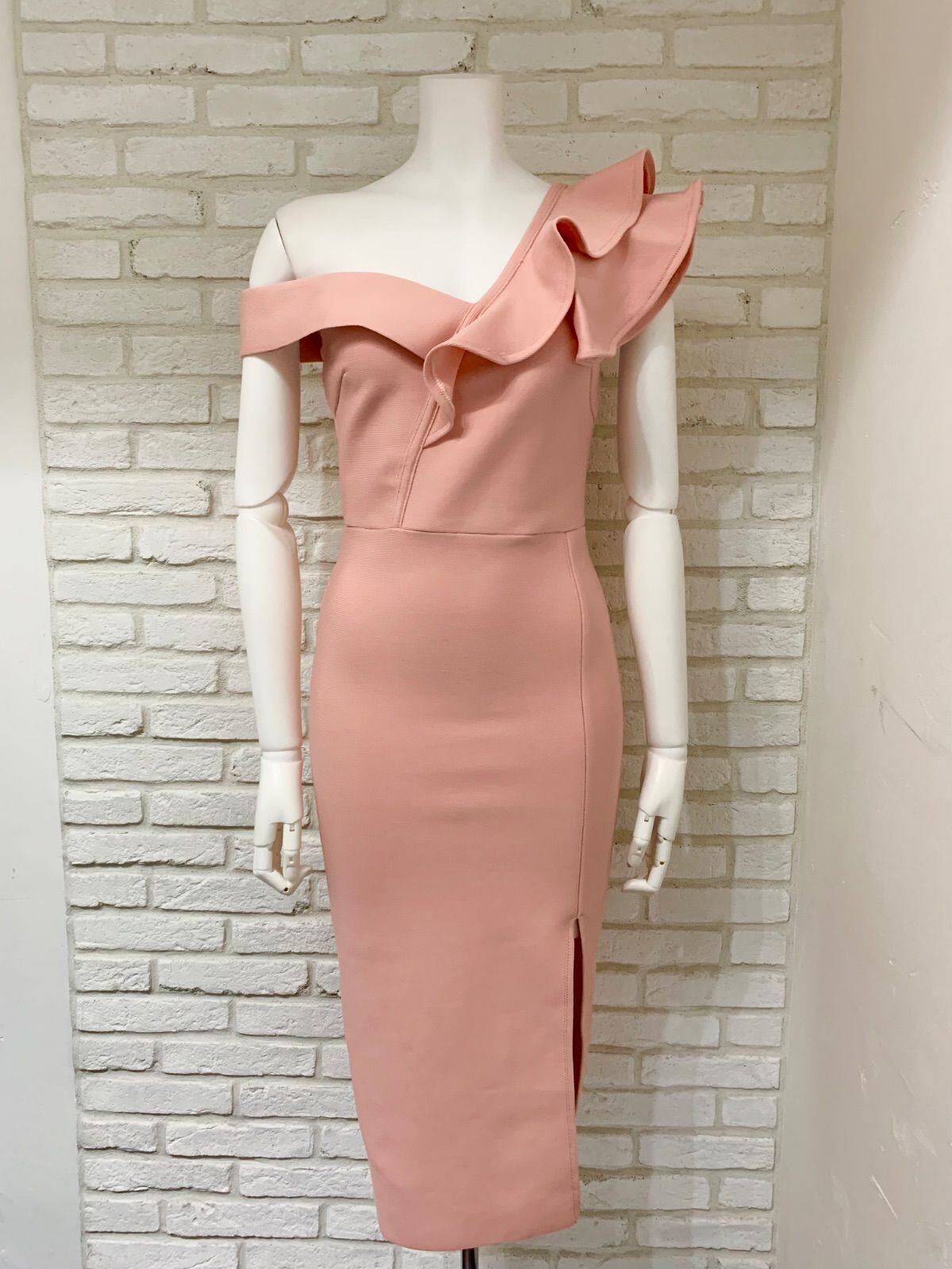 816 キャバドレス ワンショルダー タイト スリット ストレッチ S