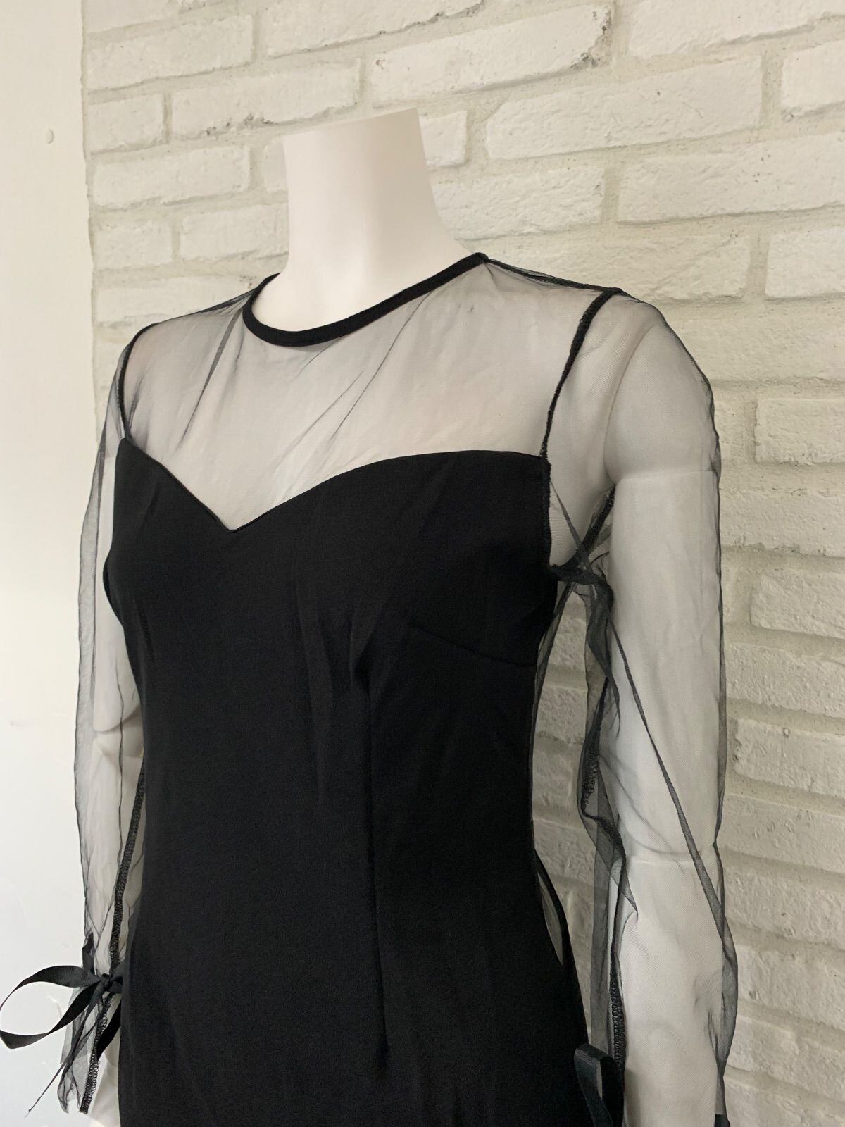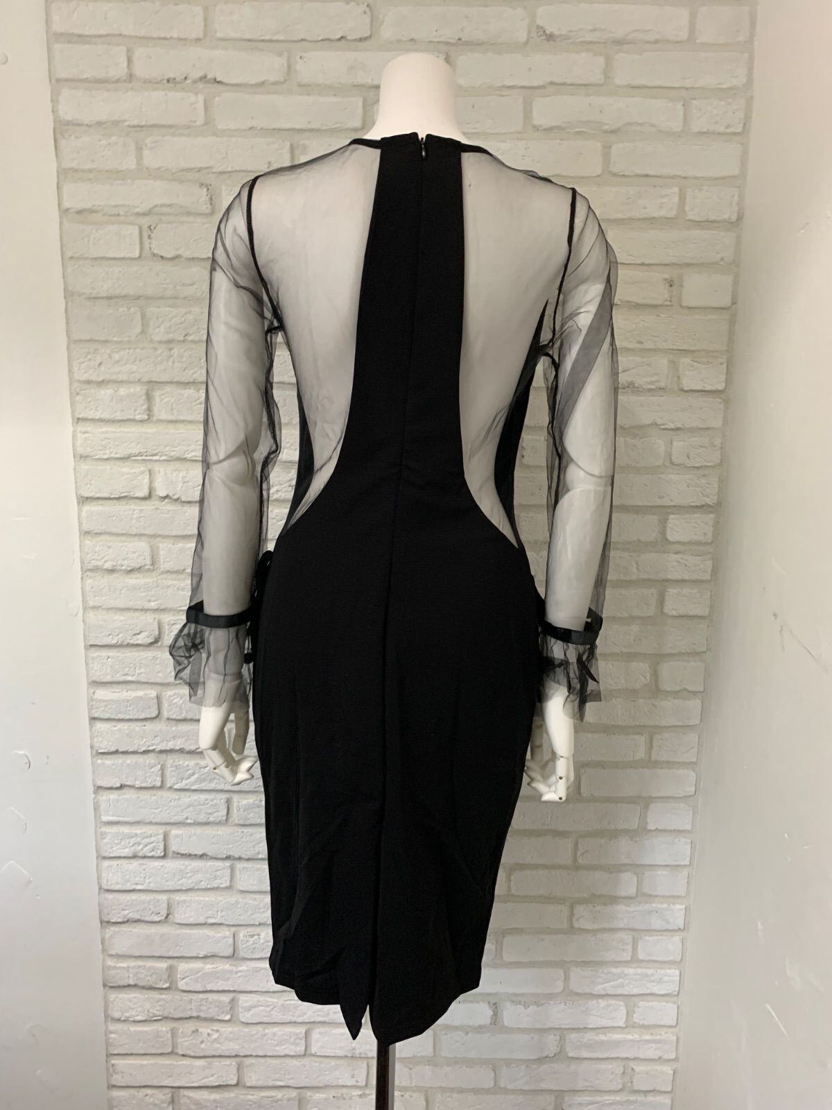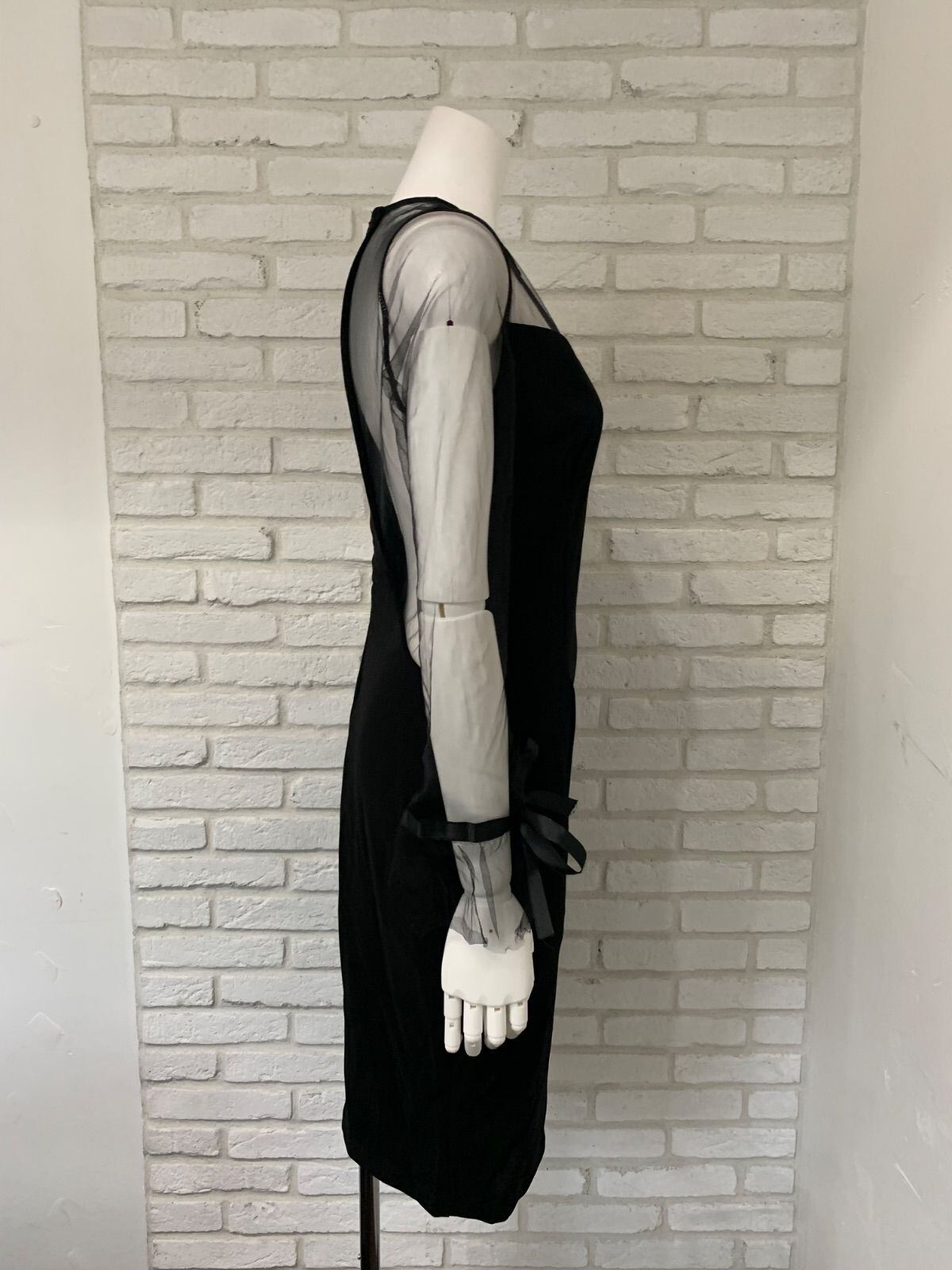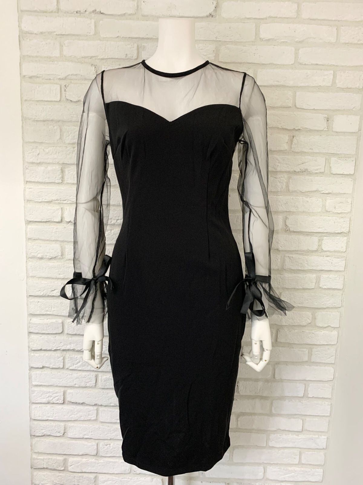 829 キャバドレス シースルー 袖リボン タイト ミディ M