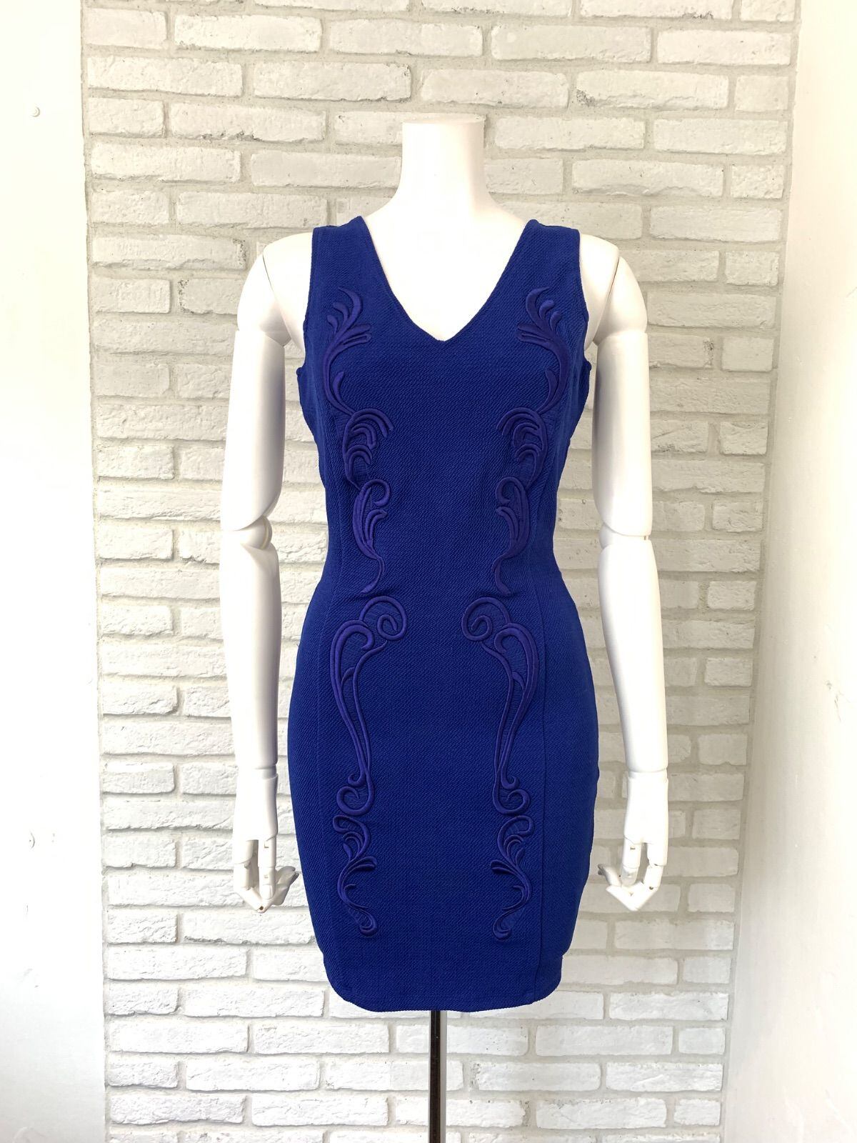 845 SYMPHONY キャバドレス 刺繍 ストレッチ ワッフル ノースリーブ バックオープン タイト ミニ S