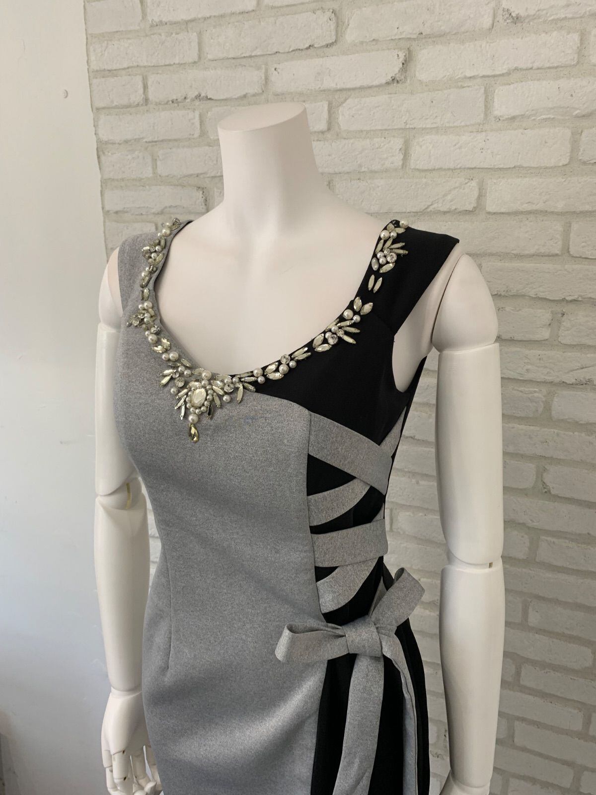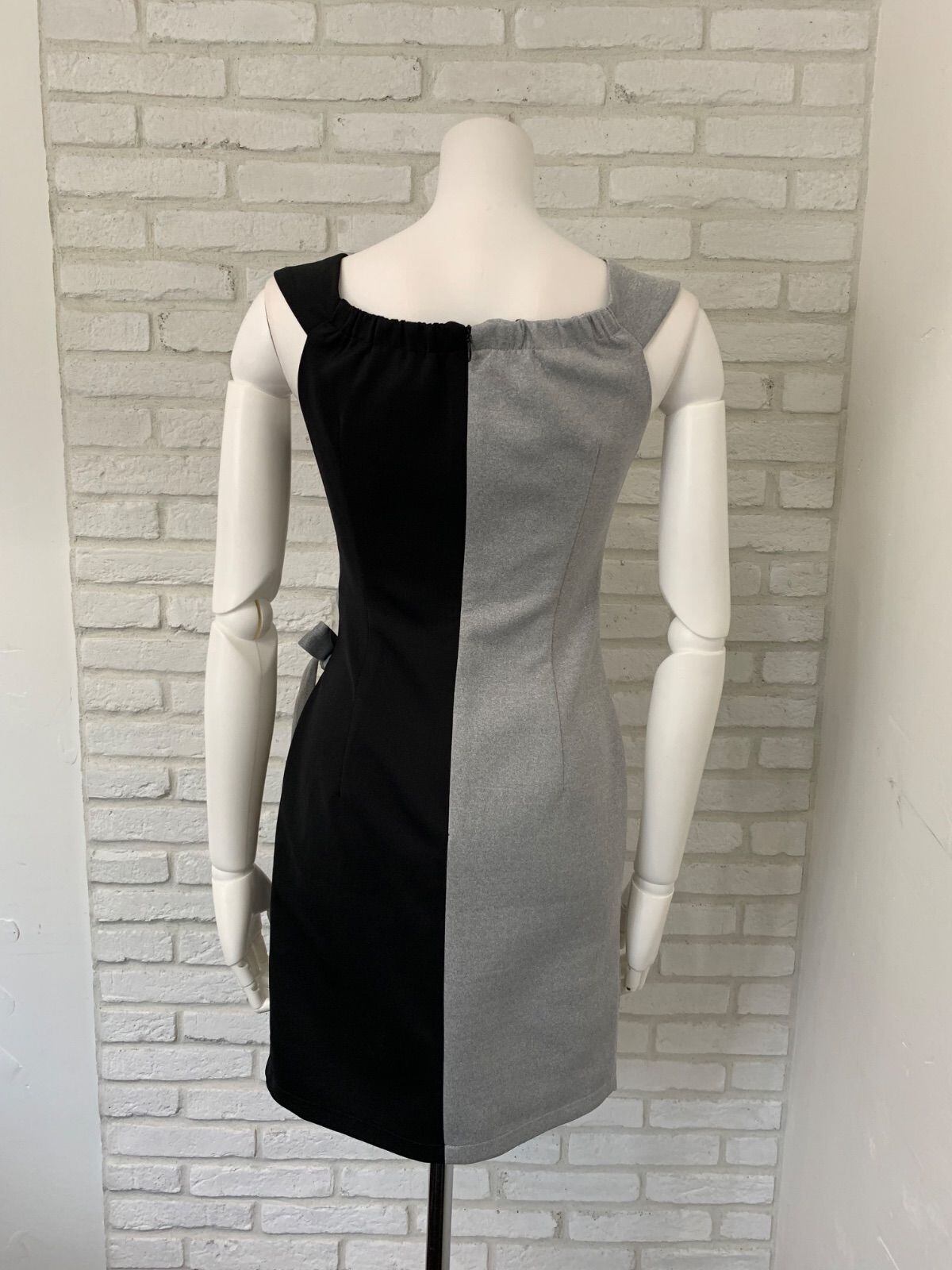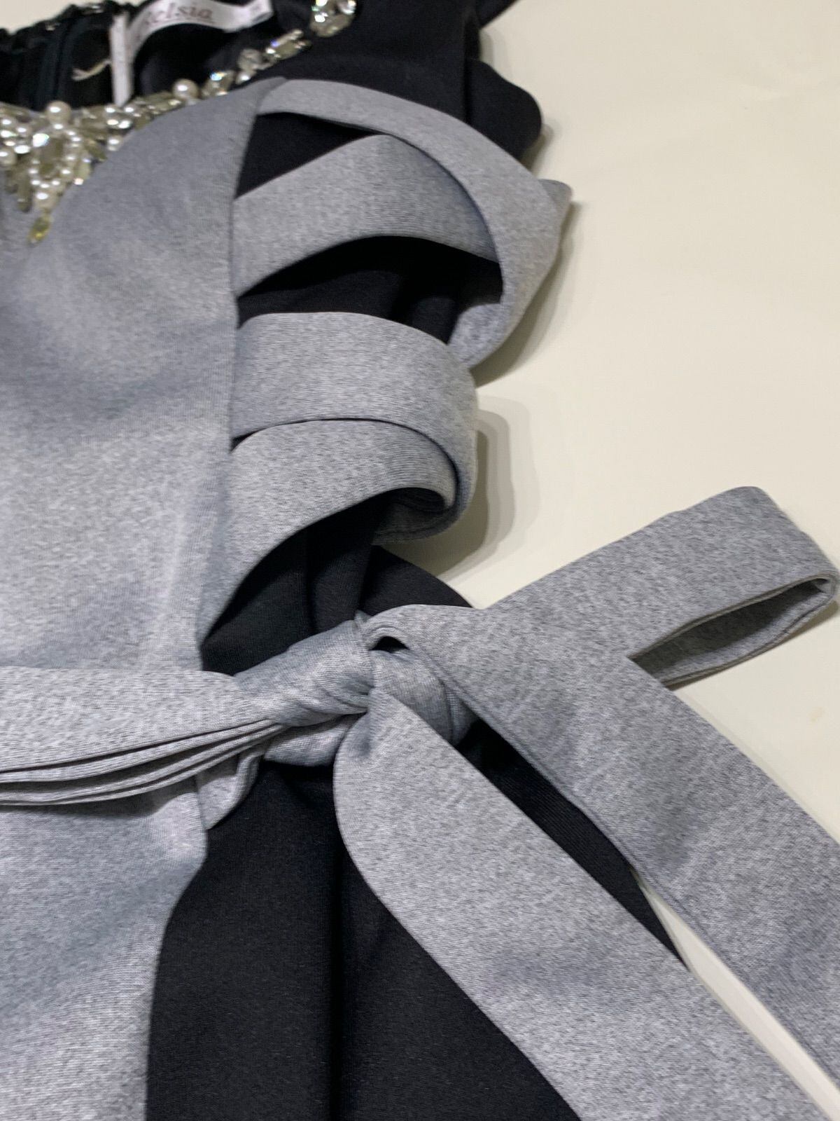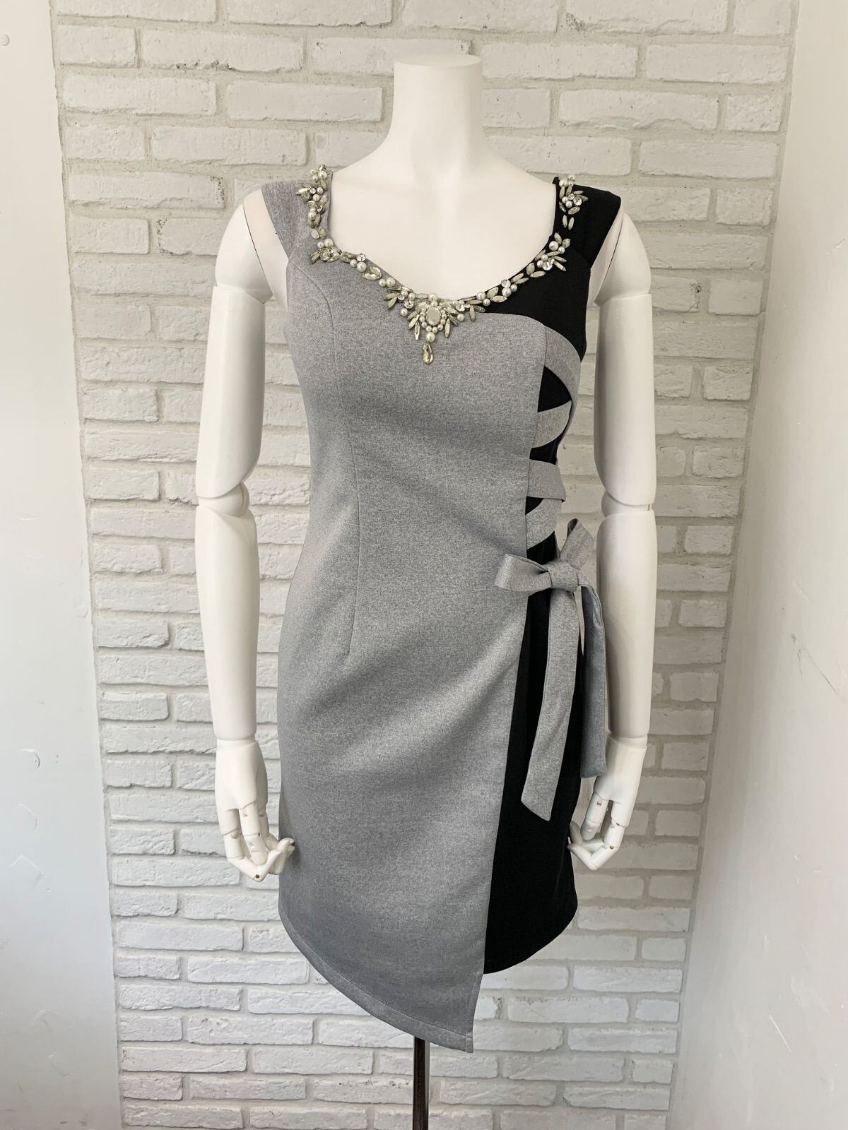 849 Belsia ベルシア キャバドレス ストーン パール リボン ノースリーブ バイカラー タイト ミニ M