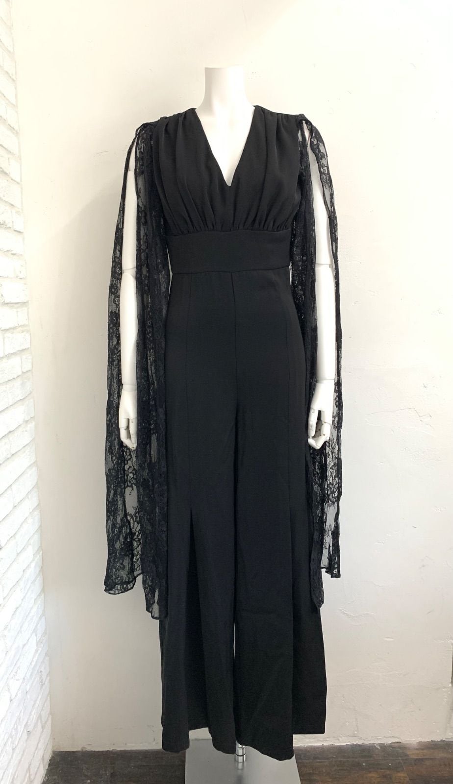852 dazzy store デイジーストア パンツドレス オールインワン 袖レース Vネック 結婚式 二次会 S