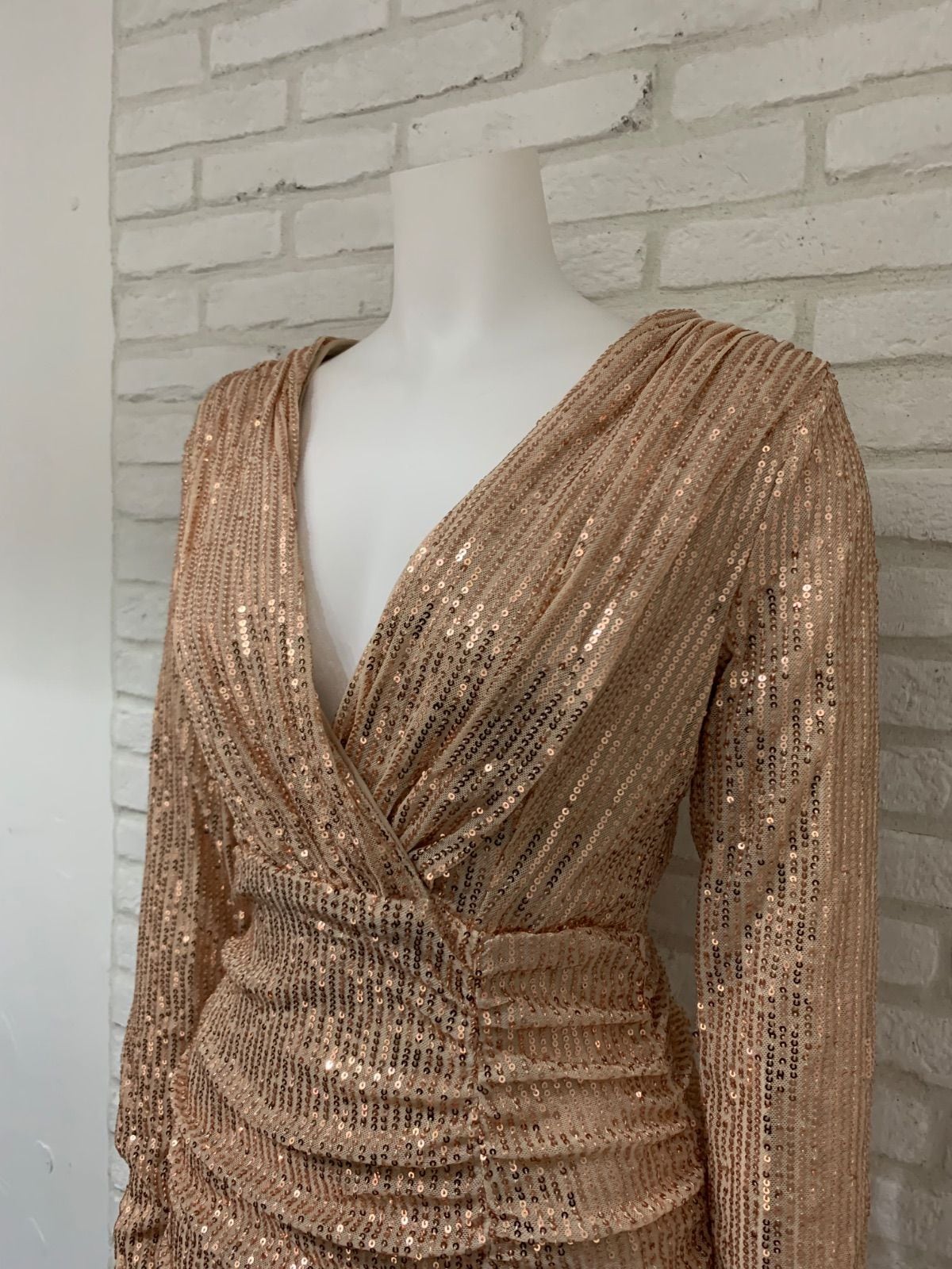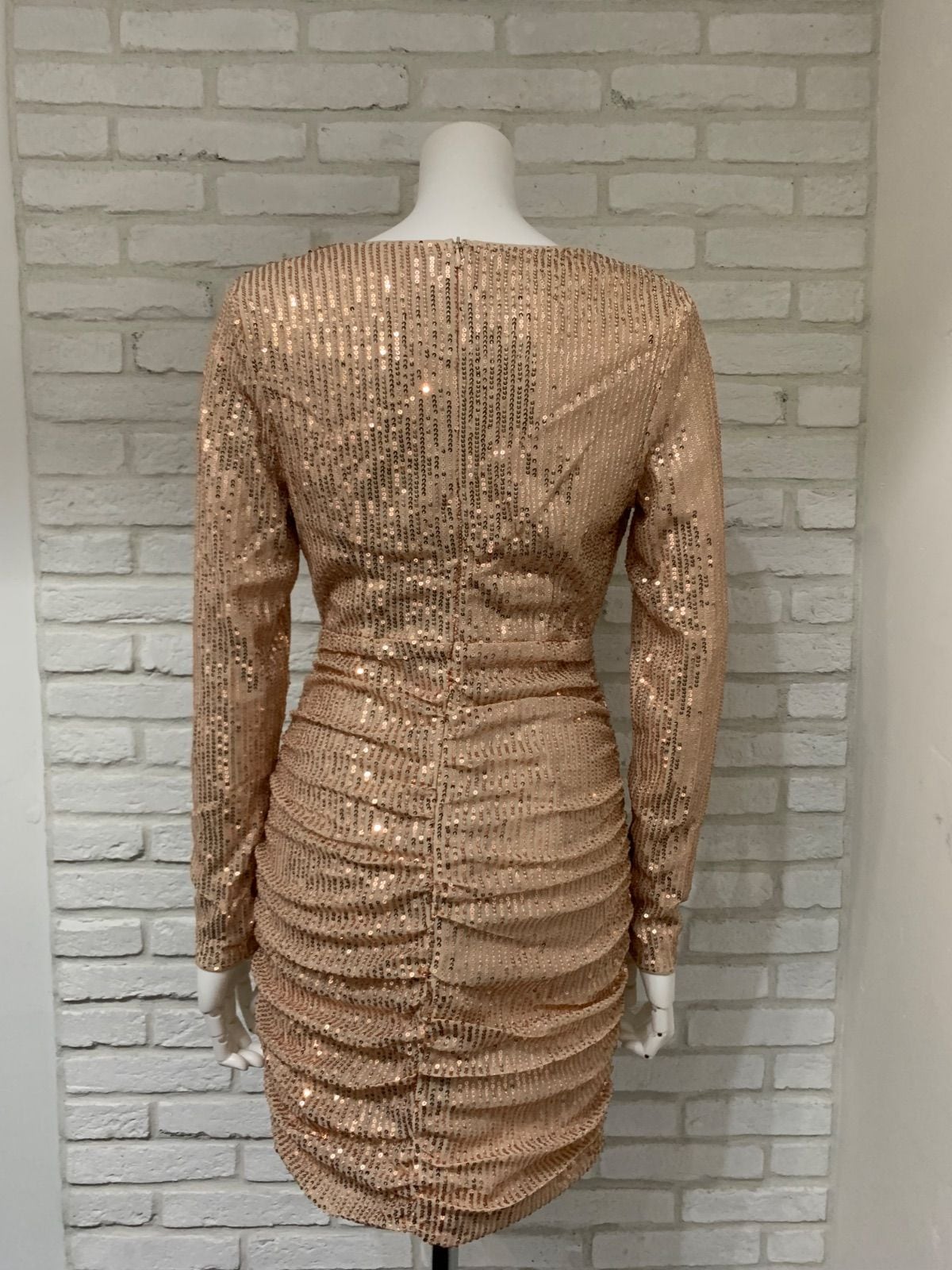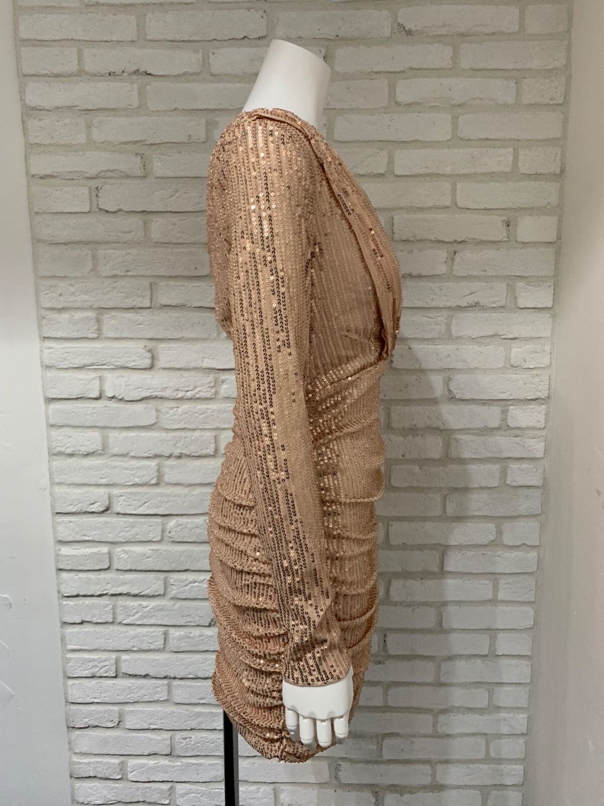 886 キャバドレス 総スパンコール Vネック タイト ミニ ギャザー ナイトドレス S