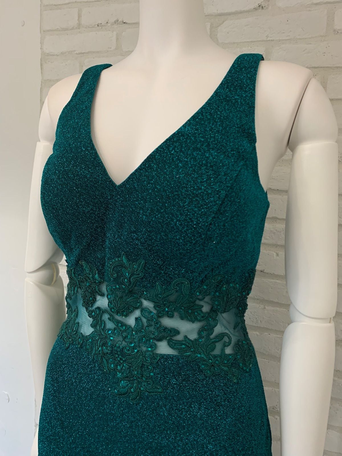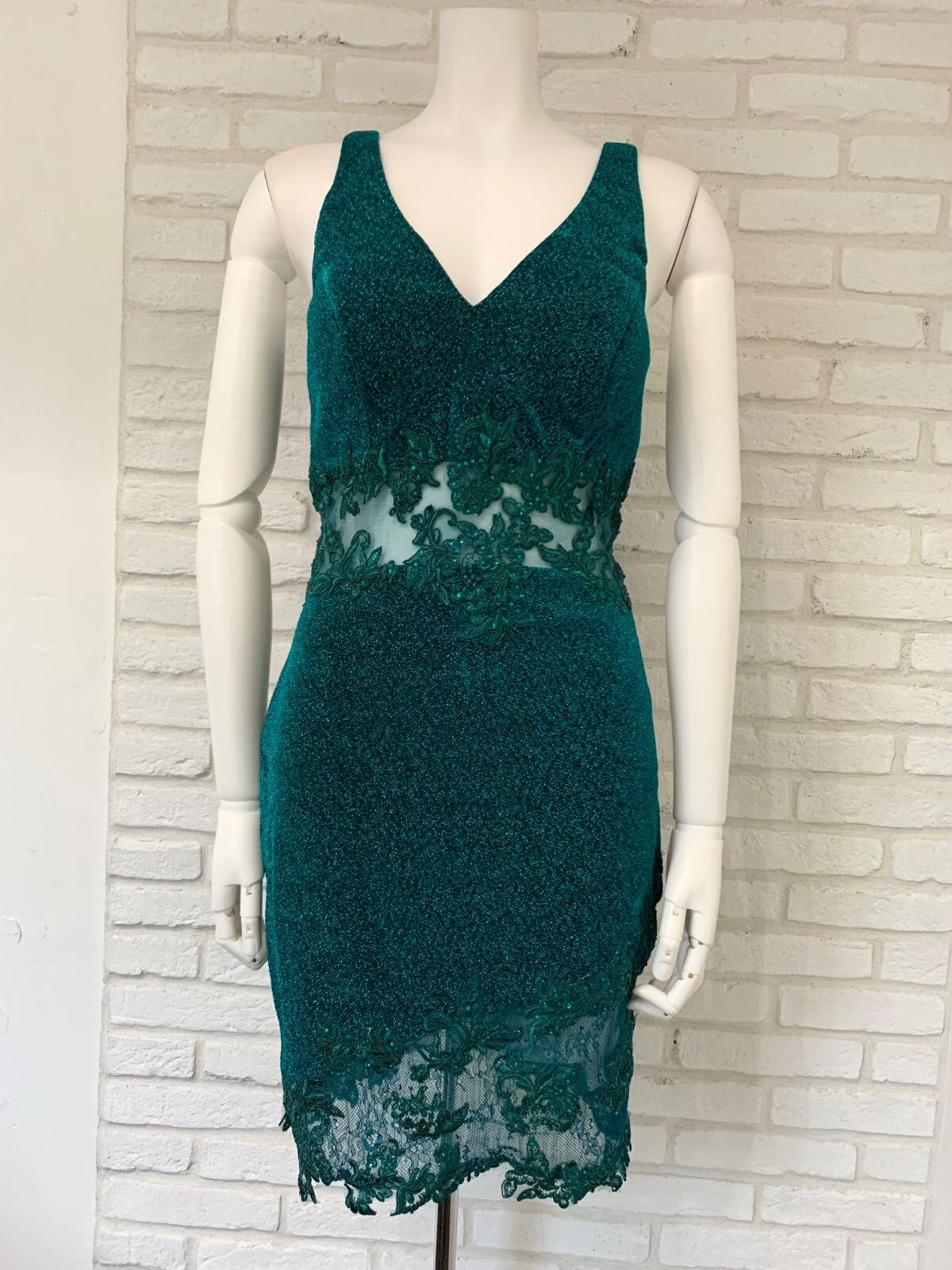 900 EauSouage キャバクラ ドレス キャバドレス 刺繍 ラメ キラキラ ウエストシースルー ストーン S