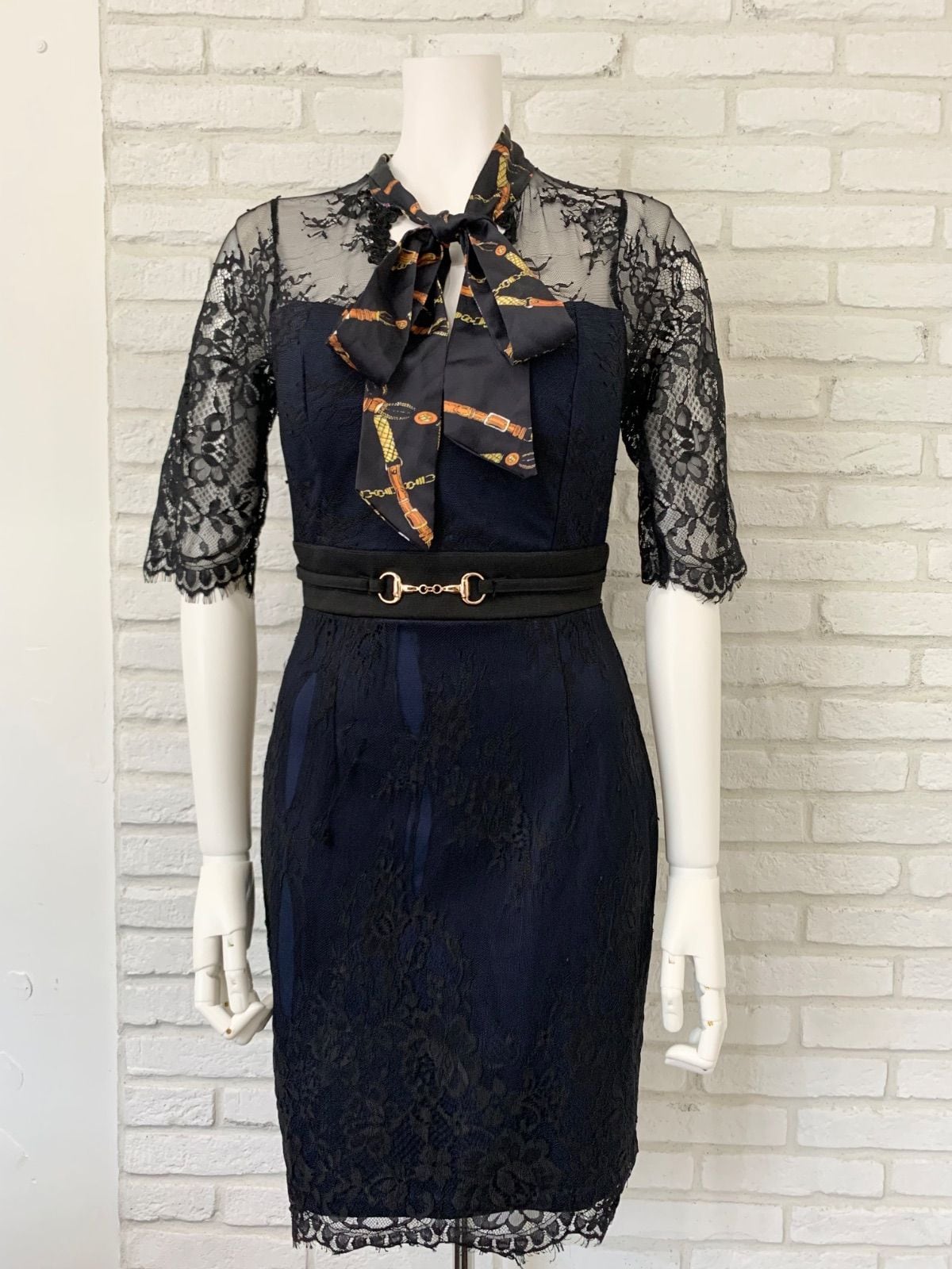 925 dazzy store デイジーストア キャバクラ ドレス スカーフ付き レース タイト シースルー キャバドレス M
