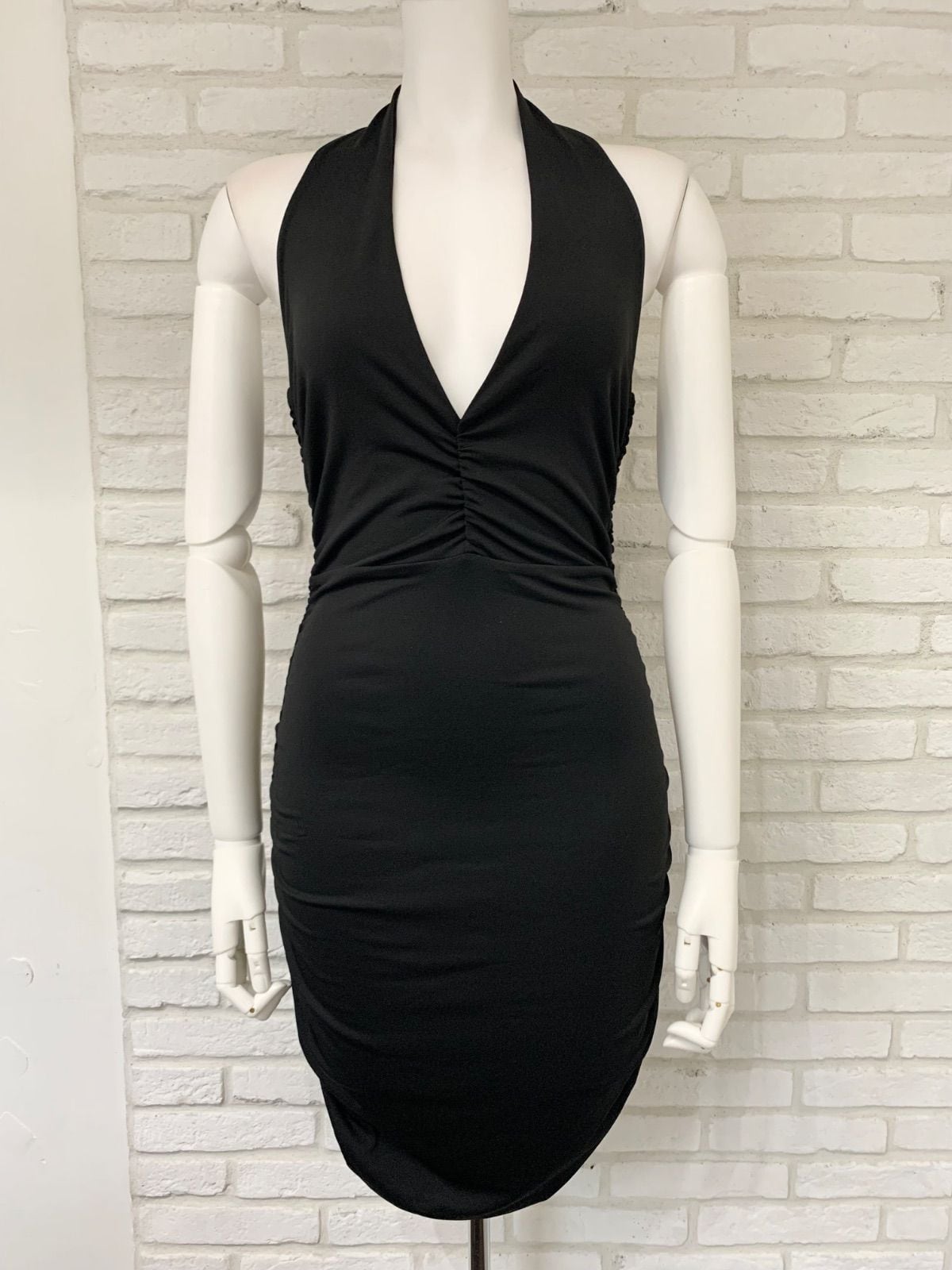 932 キャバクラ ドレス ホルターネック ストレッチ ギャザー バックオープン M