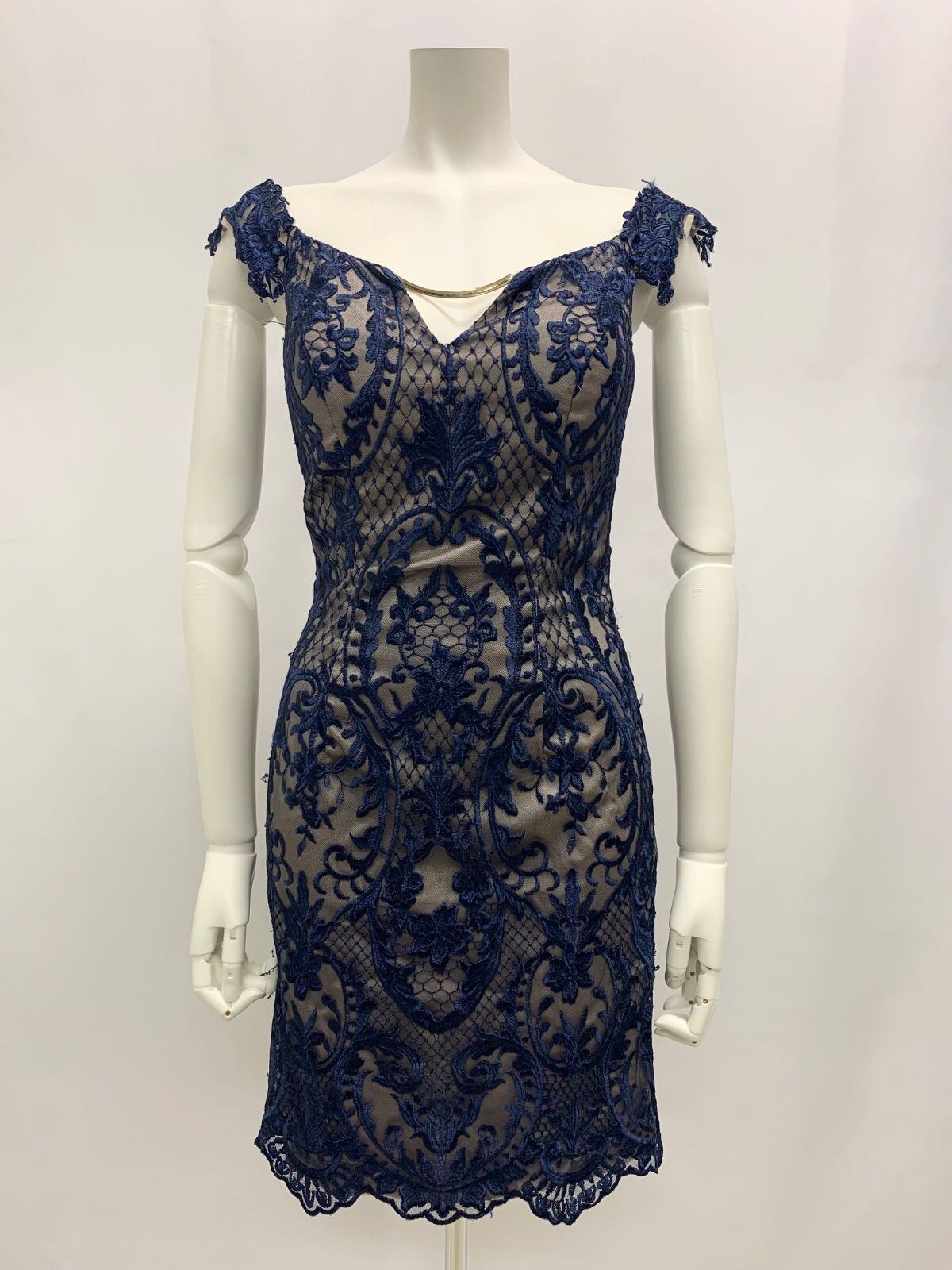 956 ROBE de FLEURS Glossy ローブドフルールグロッシー キャバクラ ドレス 総レース タイト ゴールド金具 キャバドレス M