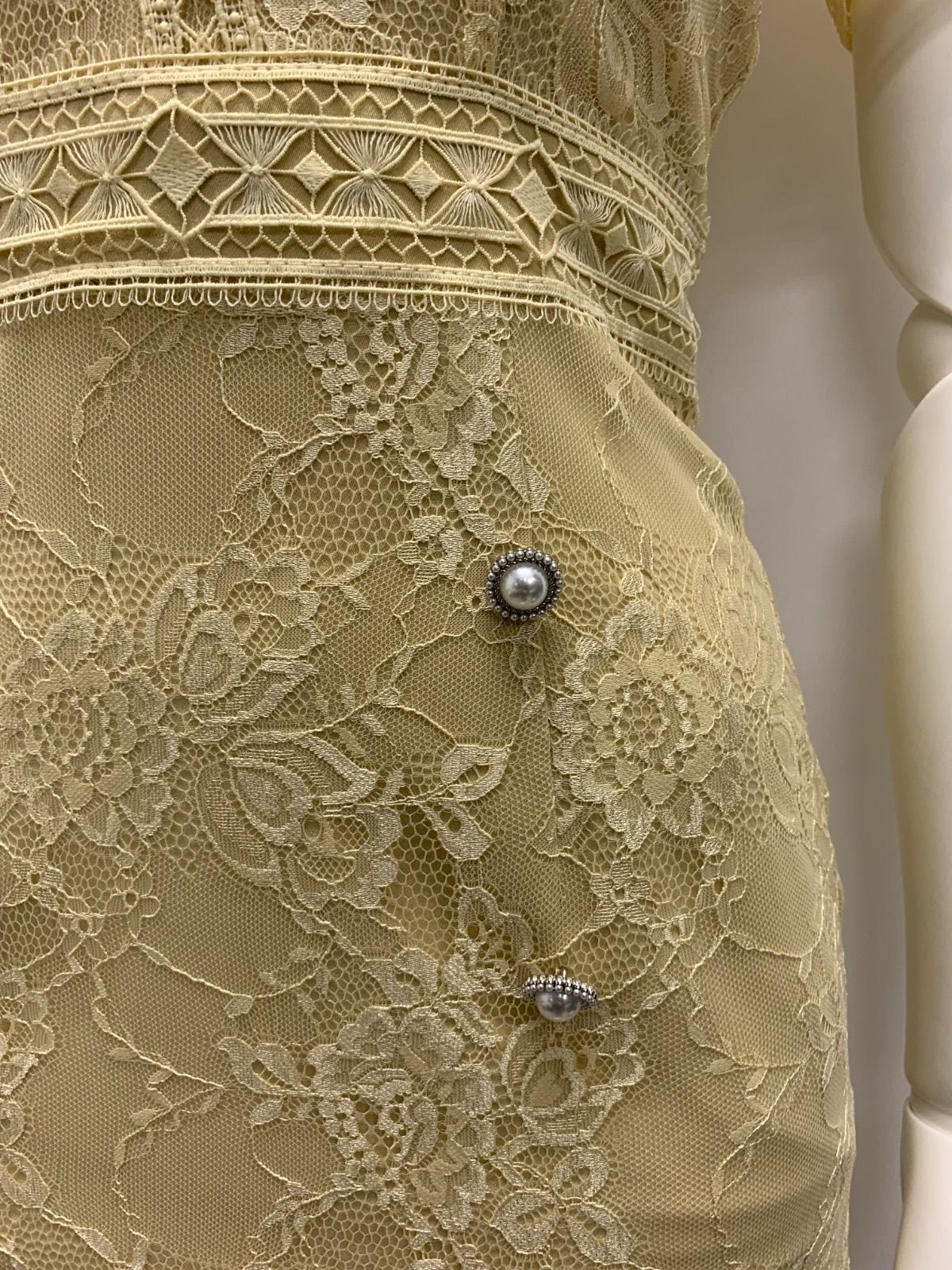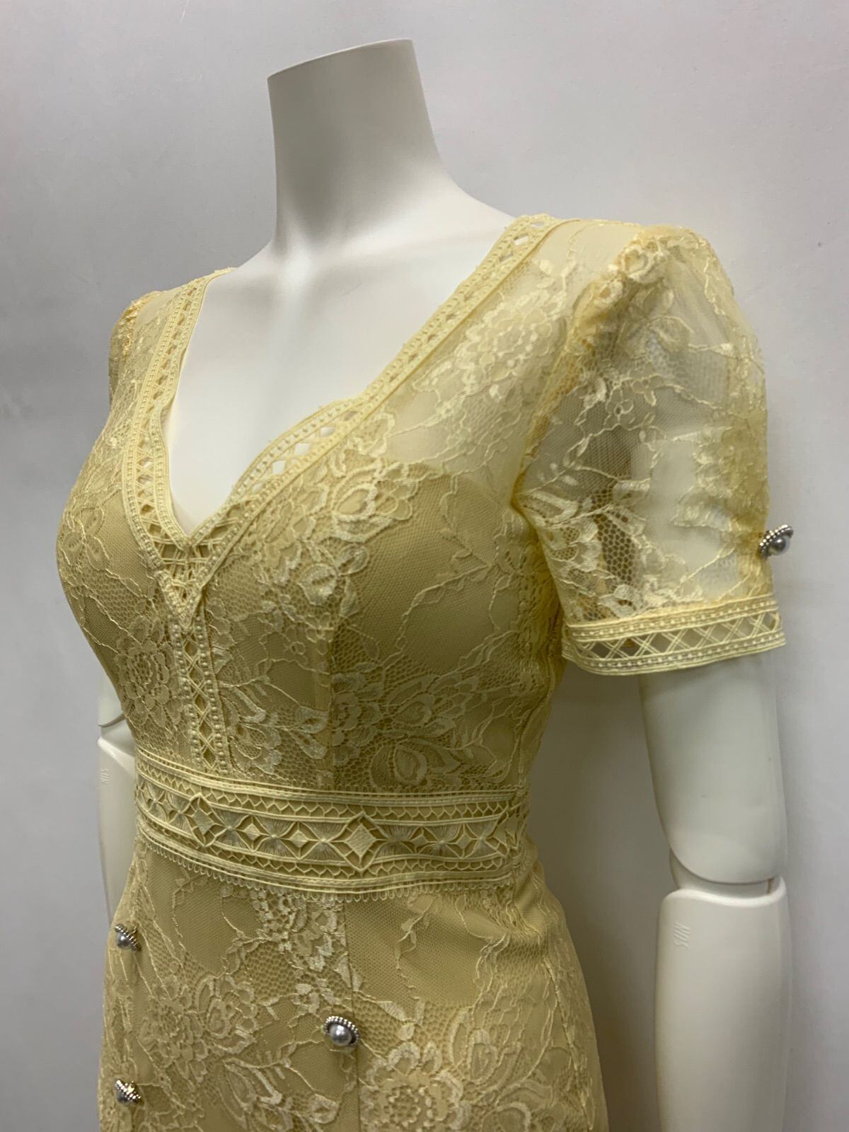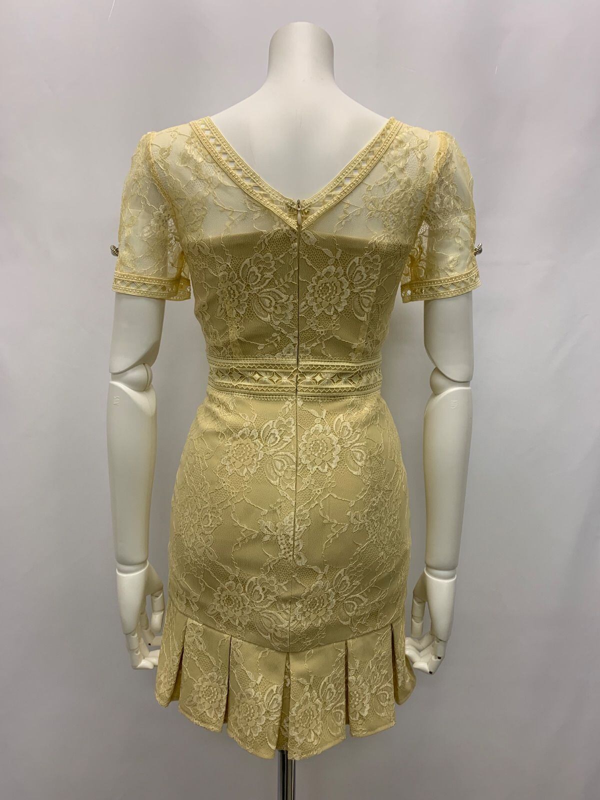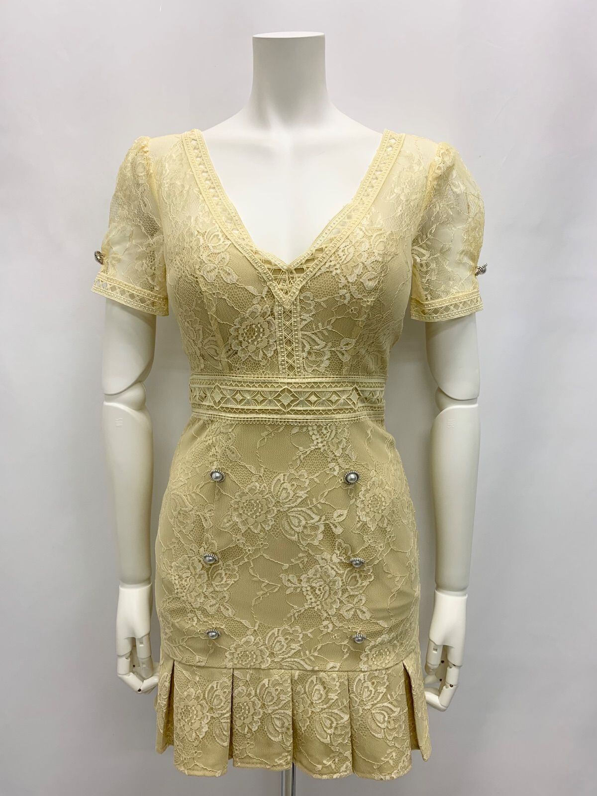 1005 an アン Andy アンディ キャバクラ ドレス 総レース プリーツスカート ミニ タイト パールボタン キャバドレス S