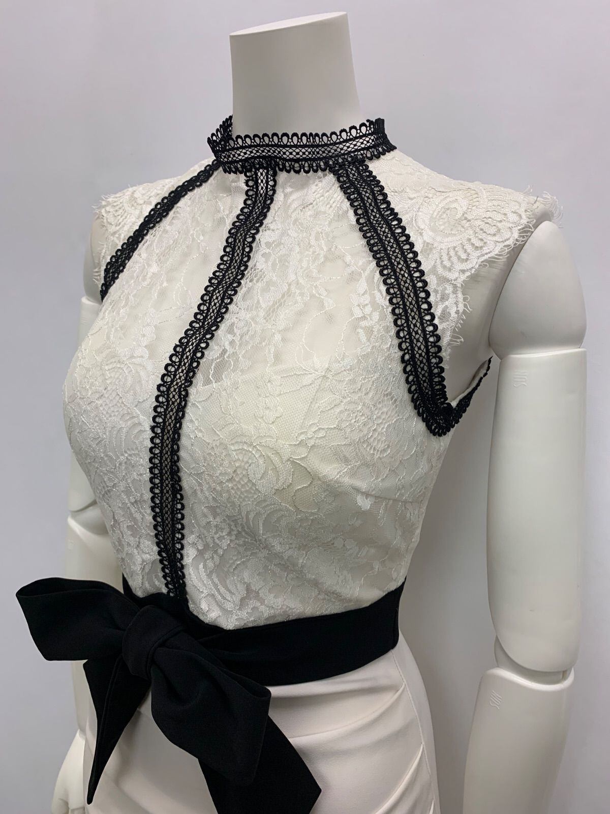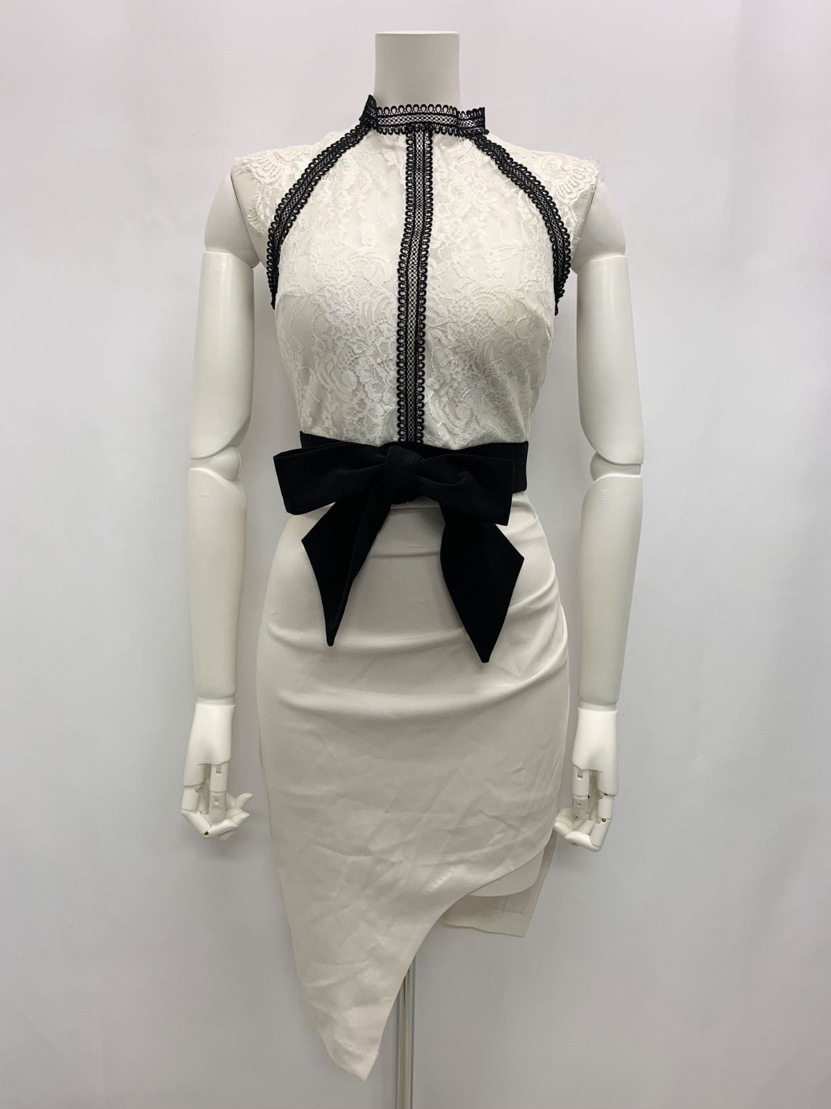 1009 Andy アンディ キャバクラ ドレス 刺繍 テープ リボン タイト ミニ ノースリーブ キャバドレス S