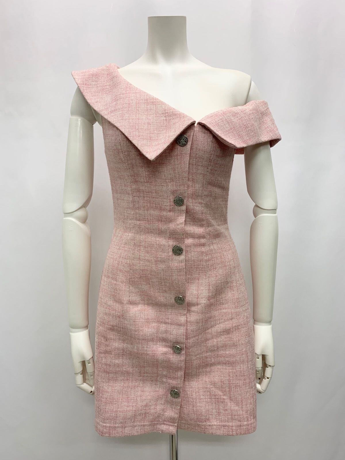 1012 AR Angel R エンジェルアール AR キャバクラ ドレス ツイード ワンショルダー ミニ タイト キャバドレス S