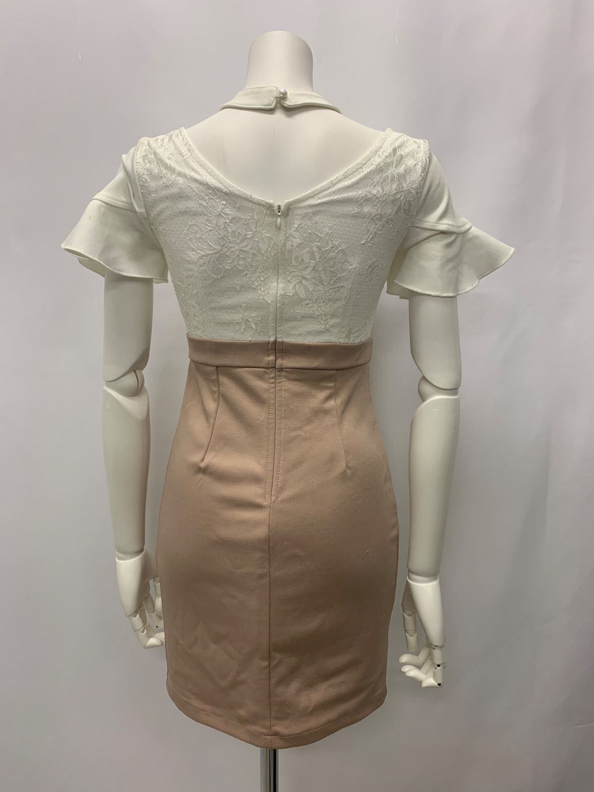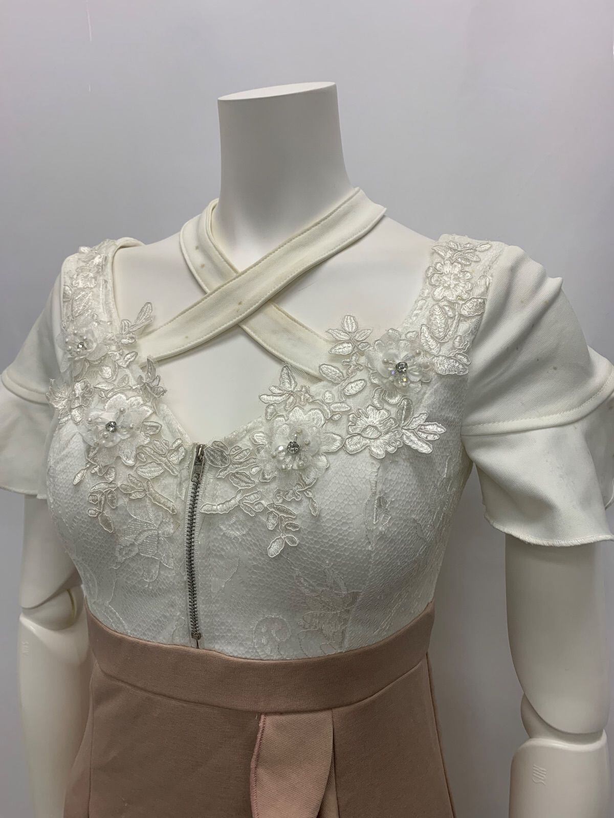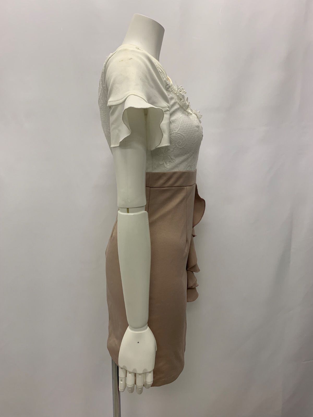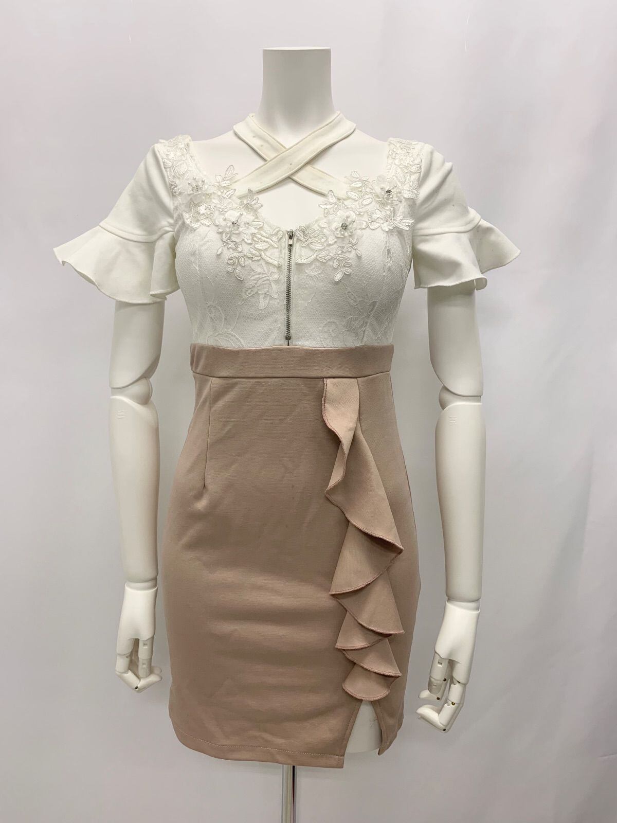 1022 Tika ティカ キャバクラ ドレス 刺繍 パール ストーン フリル バイカラー レース タイト ミニ キャバドレス S